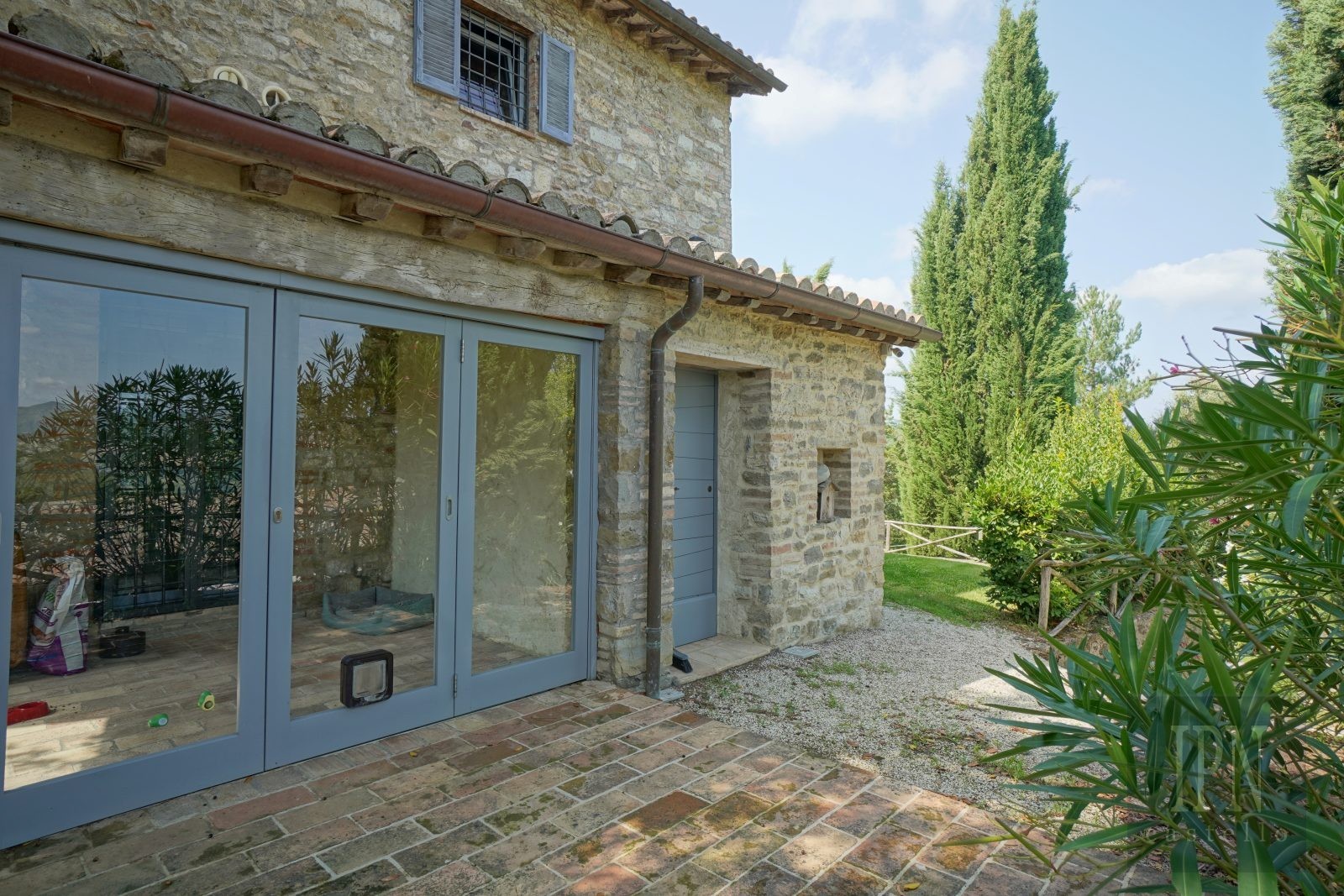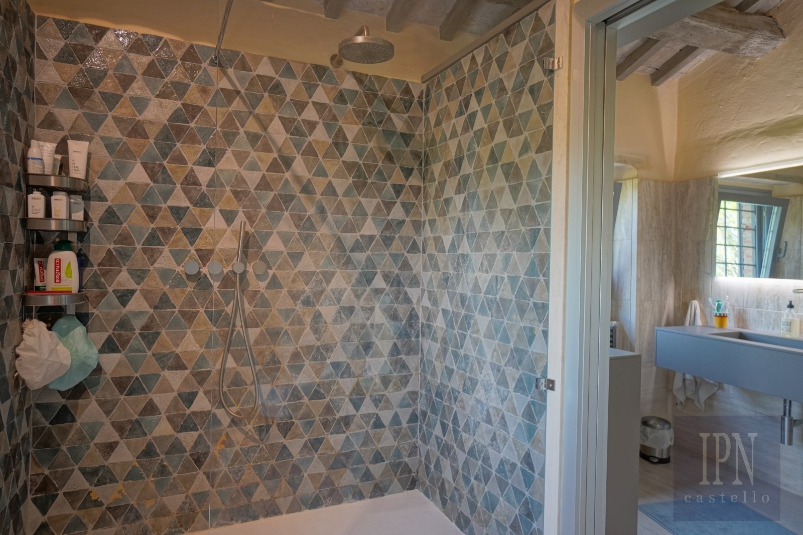 La dépendance principale, anch’essa su due livelli, è stata completamente rinnovata lo scorso anno. Comprende due camere matrimoniali, un bagno con doccia, ingresso, cucina con accesso a una pergola coperta per pranzi all’aperto e un ampio soggiorno di 38 mq con camino. I pavimenti sono in cotto di recupero, tutte le finestre sono dotate di zanzariere e una pompa di calore alimenta i radiatori di entrambi i piani. È presente anche un forno a legna originale perfettamente funzionante. Il piano inferiore, con accesso indipendente tramite una strada bianca e un secondo cancello elettrico, è attualmente adibito a studio, locale di deposito e bagno con doccia. La superficie utile complessiva è di circa 131 mq.