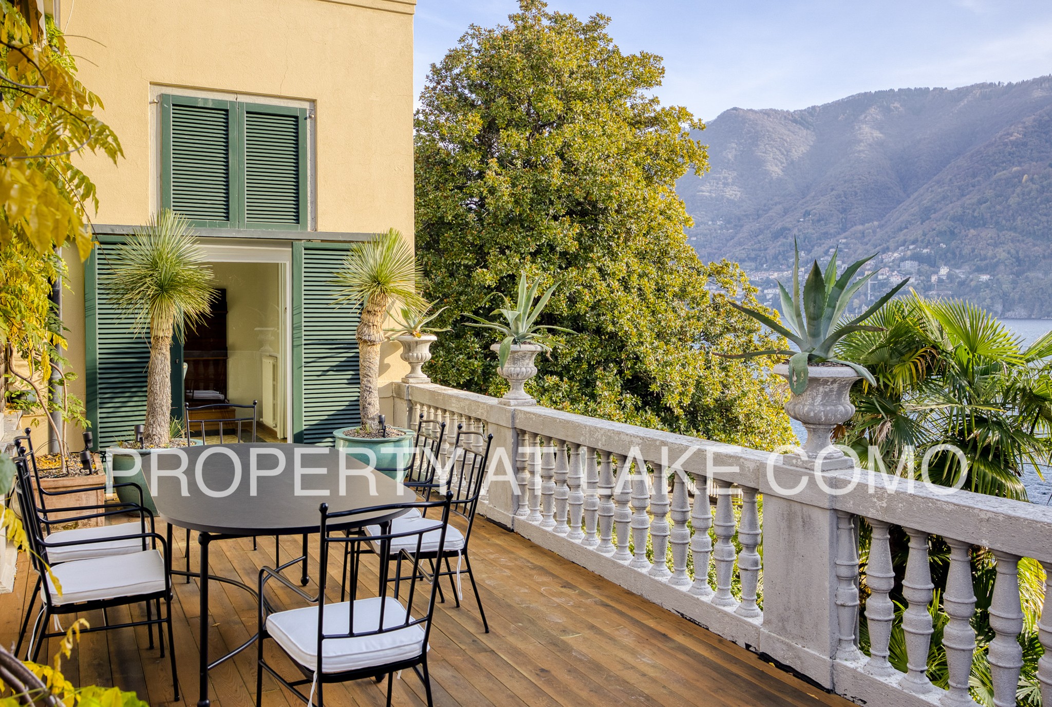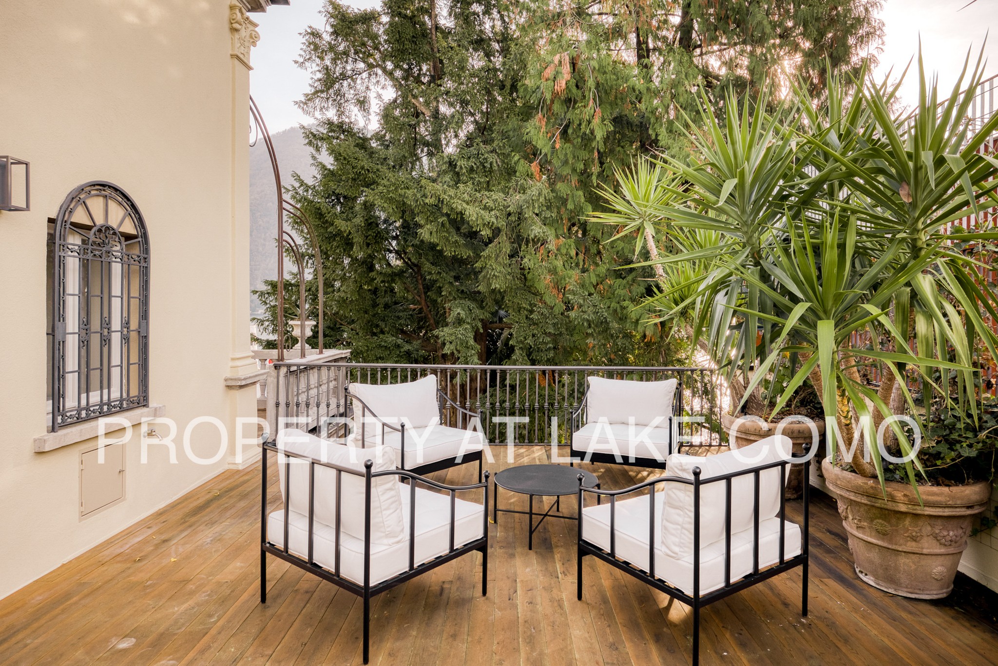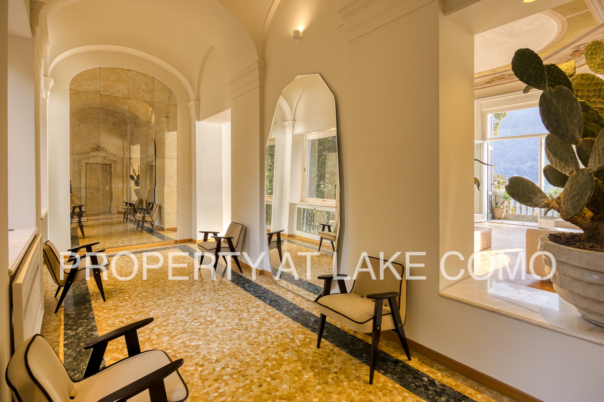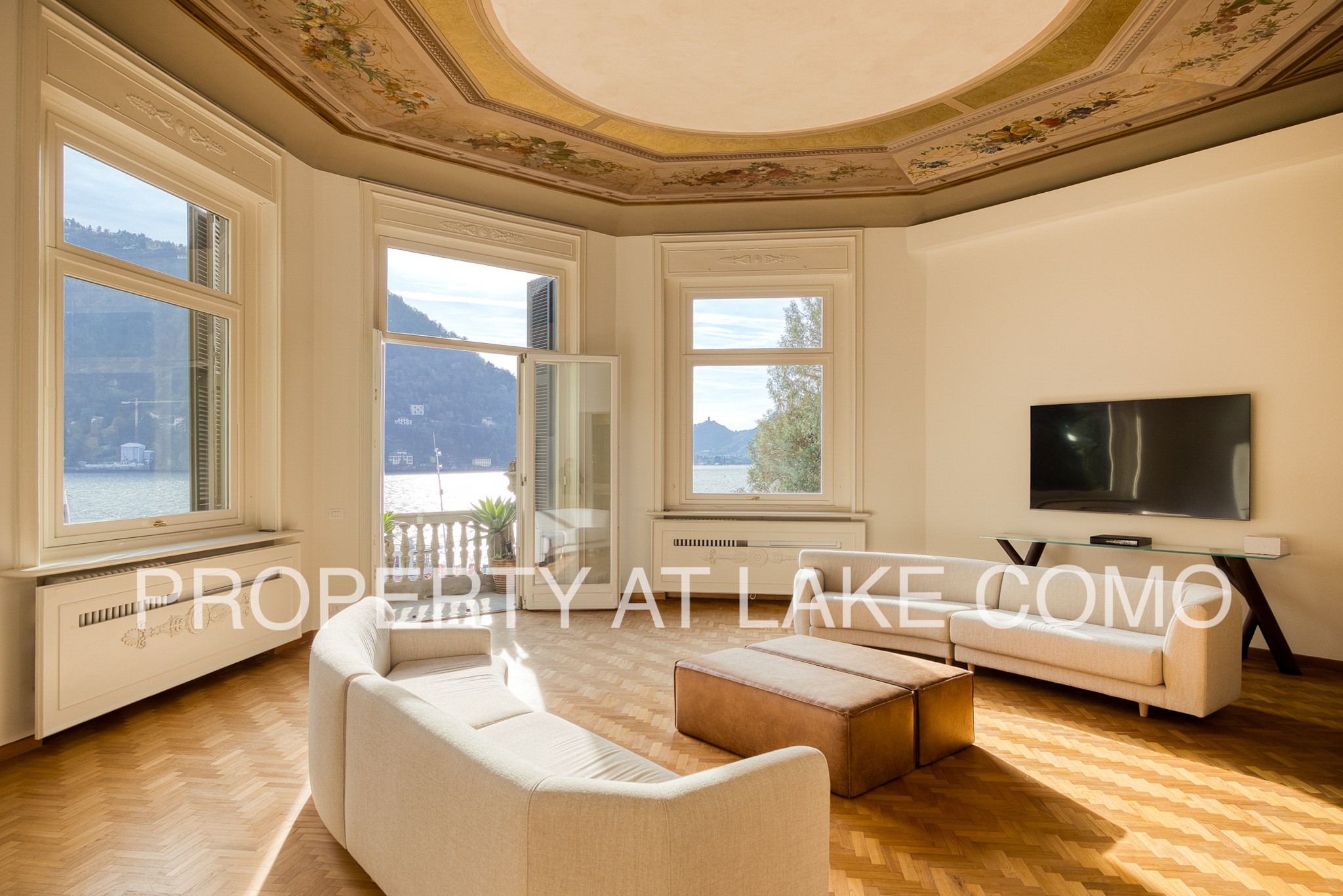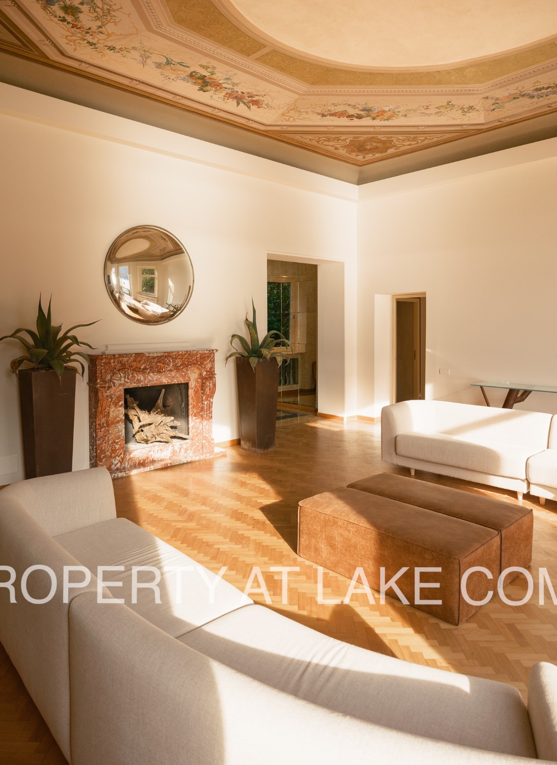 Appartement gelegen op de eerste verdieping van Villa Cantaluppi, tussen Como en Cernobbio, gebouwd in 1851 door de uit Como afkomstige architect Luigi Tatti. Na een periode in handen van internationale aristocraten kwam het later in het bezit van Ferdinando Bocconi, oprichter van de Bocconi Universiteit in Milaan. Tegenwoordig is het pand verdeeld in vier wooneenheden.