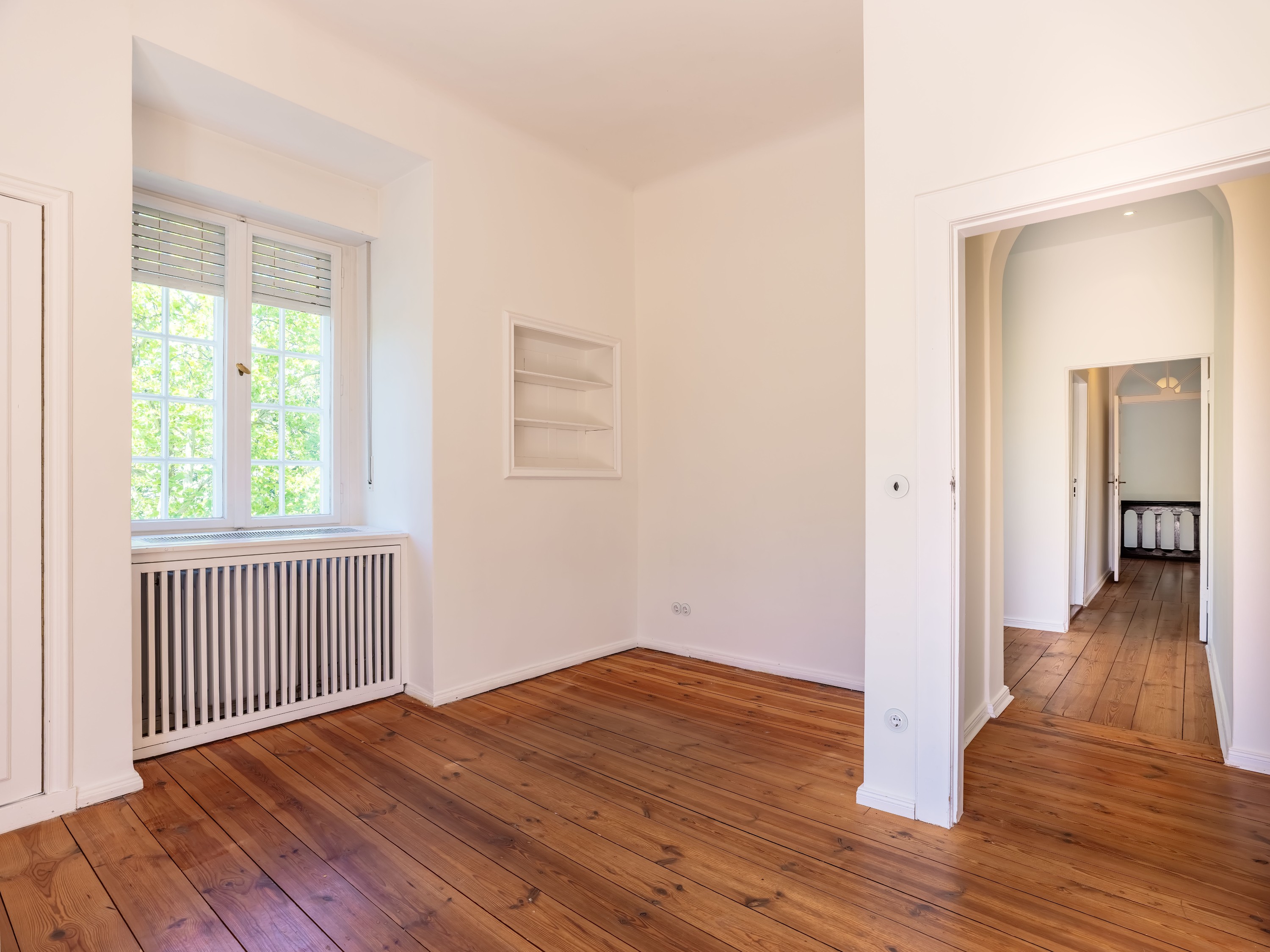 De hoge plafonds, het zorgvuldig gerestaureerde stucwerk en de originele deurbeslag geven de kamers een unieke uitstraling. Daarnaast zorgen de hoogwaardige inbouwoplossingen en de eersteklas renovaties voor modern comfort.