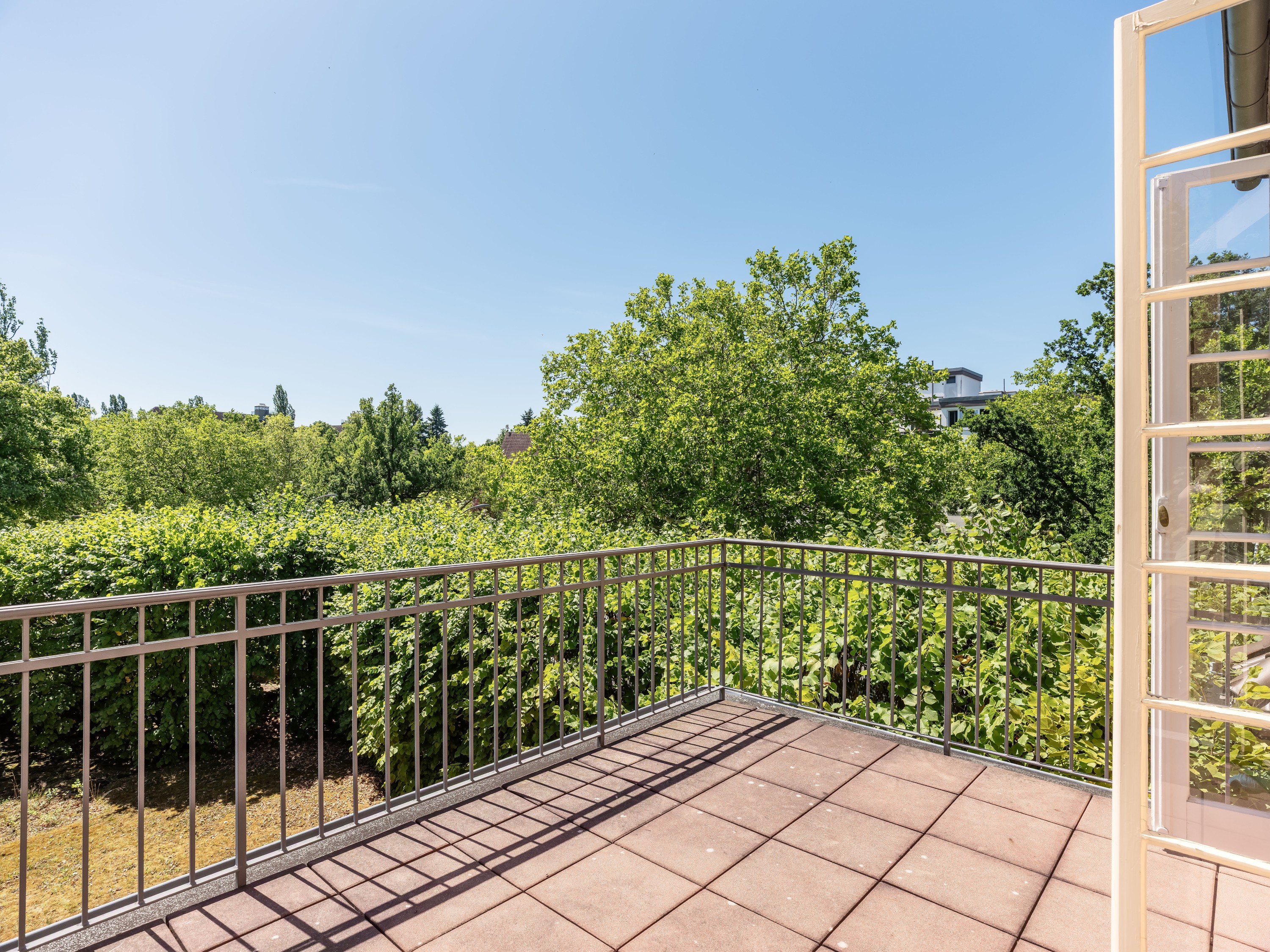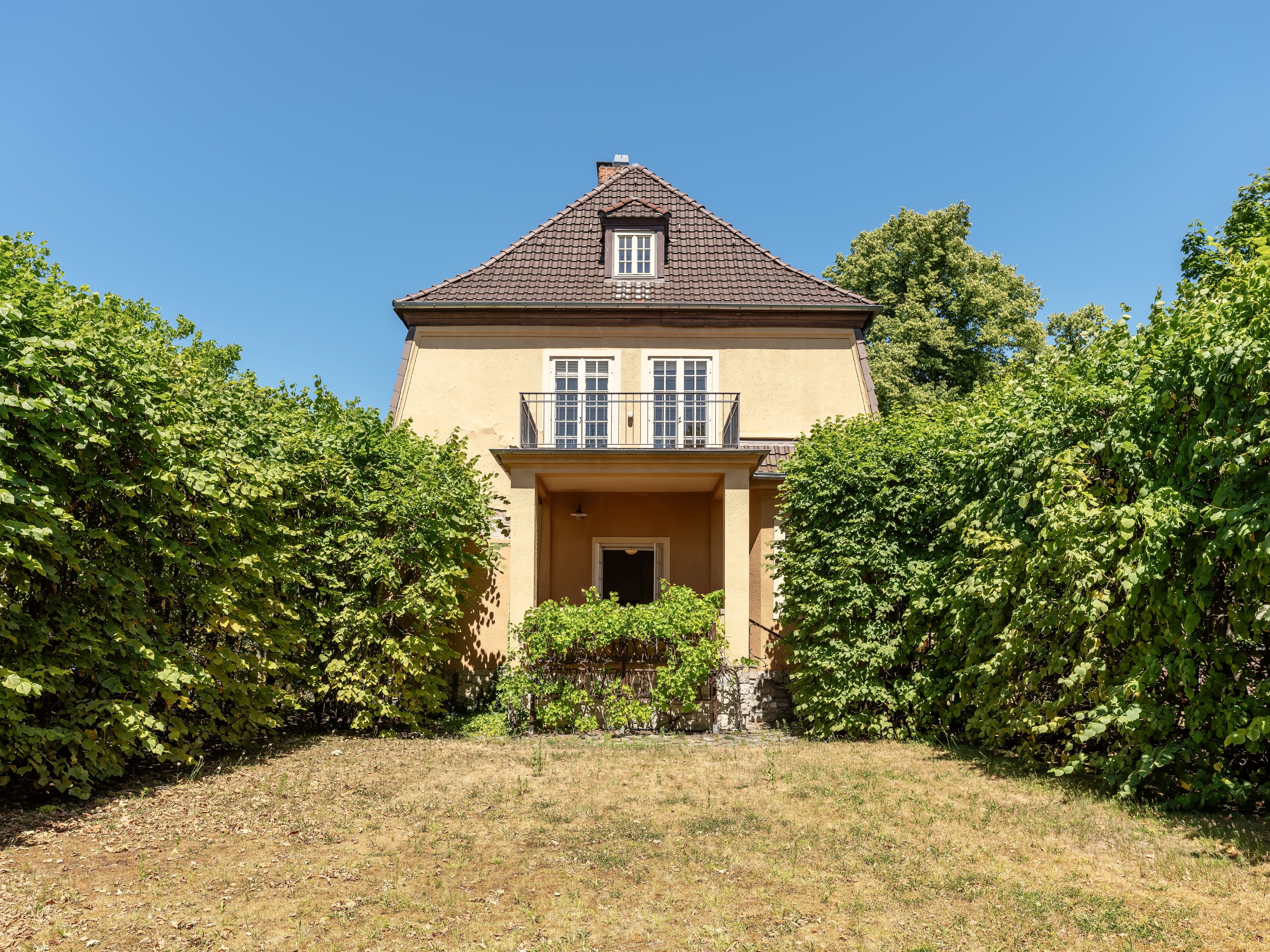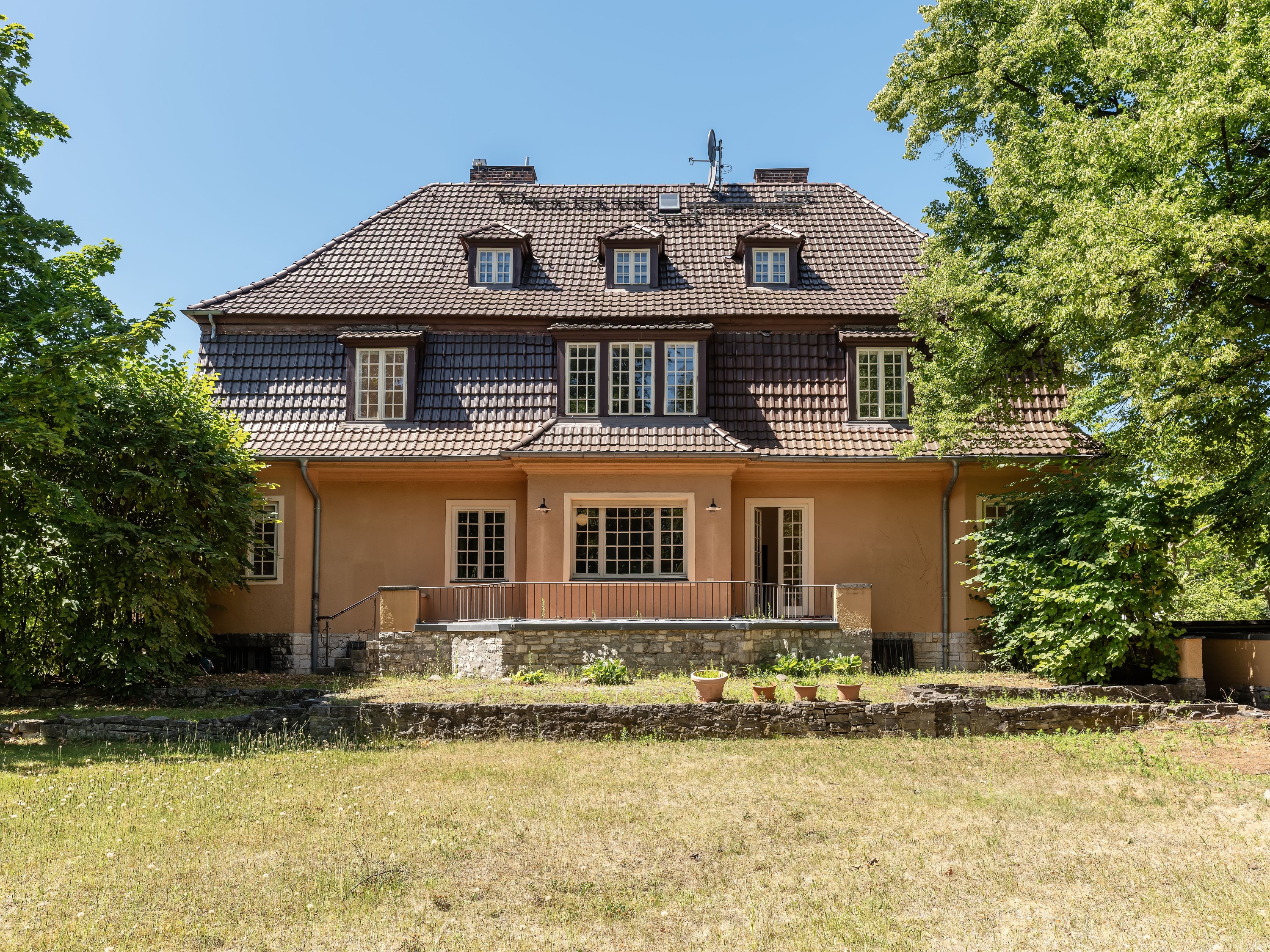 Een bijzonder kenmerk van de woning is het gastenappartement, dat bereikbaar is via een aparte ingang. De binnenplaats biedt plaats voor vier parkeerplaatsen en een dubbele garage. De beschermde tuin, met zijn prachtige dubbele lindeboom-pergola gericht op het zuiden, werd genoemd in een boek over de historische tuinen van Berlijn.