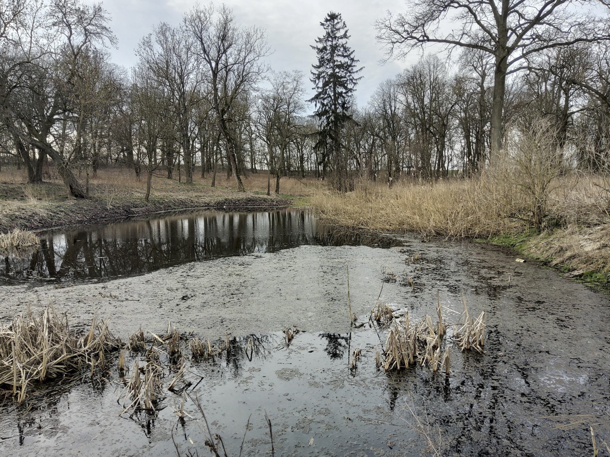 Het omheinde perceel beslaat ongeveer 5 hectare en omvat een landgoedpark uit de eerste helft van de 19e eeuw, oude bomen, twee vijvers en een klein beekje. In het park bevindt zich een familiebegraafplaats.