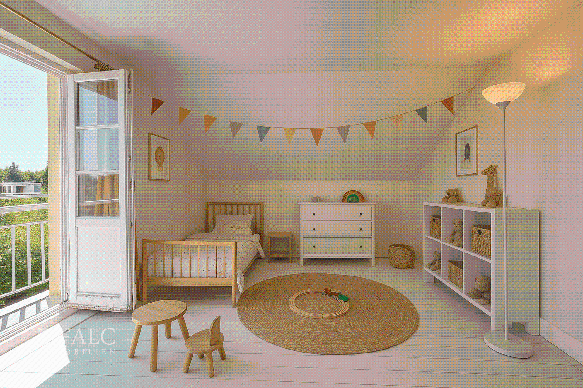 De tweede verdieping biedt vier extra kamers, waarvan twee met balkon, een kleedruimte en een tweede badkamer.