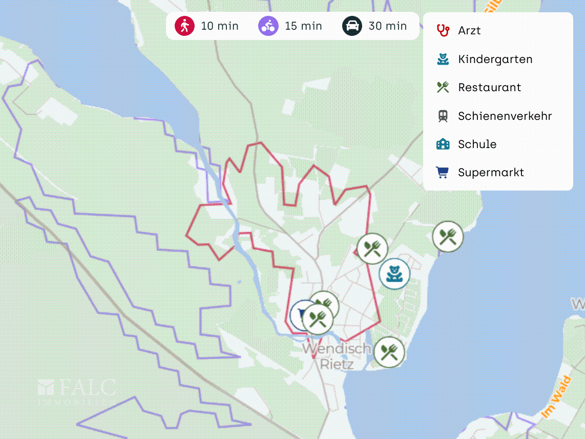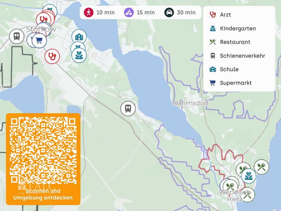 Dit prachtige klein landhuis ligt in de recreatieomgeving van Wendisch Rietz, vlak bij het Scharmützelsee, omgeven door bos en weiden. De locatie combineert rust en natuur met gemakkelijke toegang tot winkels, culturele activiteiten en sportfaciliteiten. Supermarkten, apotheken en restaurants bevinden zich op korte afstand, waardoor dagelijkse benodigdheden en uitjes eenvoudig te combineren zijn.