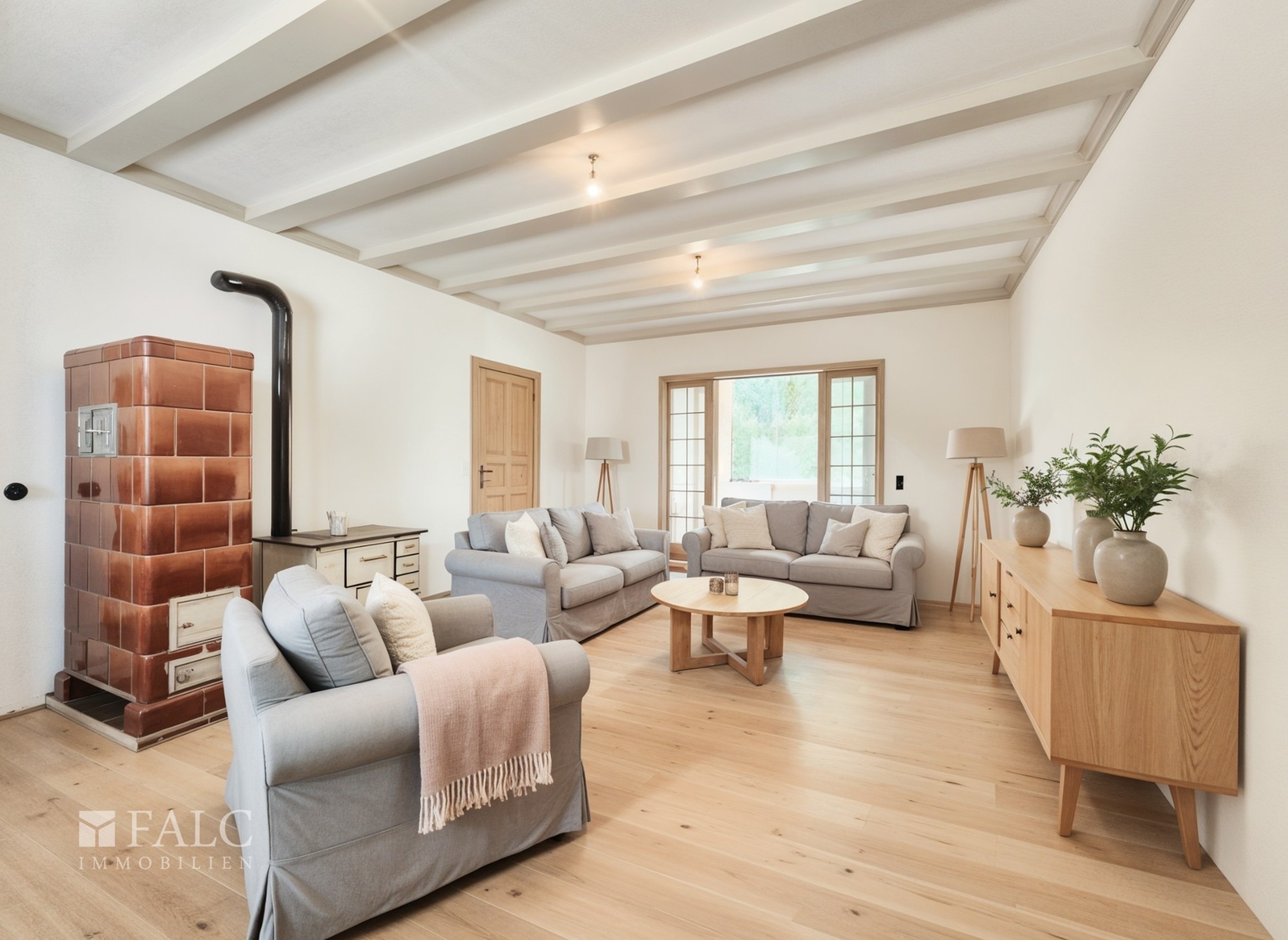 Het landhuis biedt een ruime indeling met veel mogelijkheden. Op de begane grond vindt u een lichte en uitnodigende woonkamer met een traditionele tegelkachel en directe toegang tot de veranda, een keuken met drie aangrenzende voorraadkamers, en meerdere kamers die kunnen worden gebruikt als slaap-, werk- of woonruimte. Op de bovenverdieping zijn vier kamers flexibel in te richten, een badkamer die kan worden uitgebreid en een veranda met uitzicht op het bos. Er is zelfs de mogelijkheid om een tweede keuken te installeren, ideaal voor een meer-generatiewoning of als verhuureenheid.