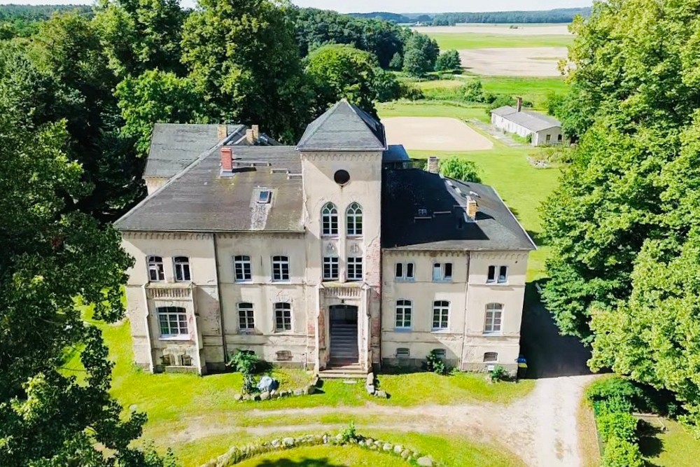 Onder de roestkleurige sluier van zijn lange geschiedenis is het landhuis van Kobrow nog steeds voelbaar – een tweelaags gepleisterd gebouw op een hoog souterrain, rond 1860 gebouwd in neogotische stijl. Een rechthoekige, drie verdiepingen tellende toren met tentdak en klok steekt iets uit de gevellijn. Boven de ingang bevinden zich twee adellijke wapenschilden – van de families von Bülow en von Zeppelin – stille getuigen van een opeenvolging van eigenaren die teruggaat tot de 17e eeuw en doorgaat tot de landhervorming na 1932.