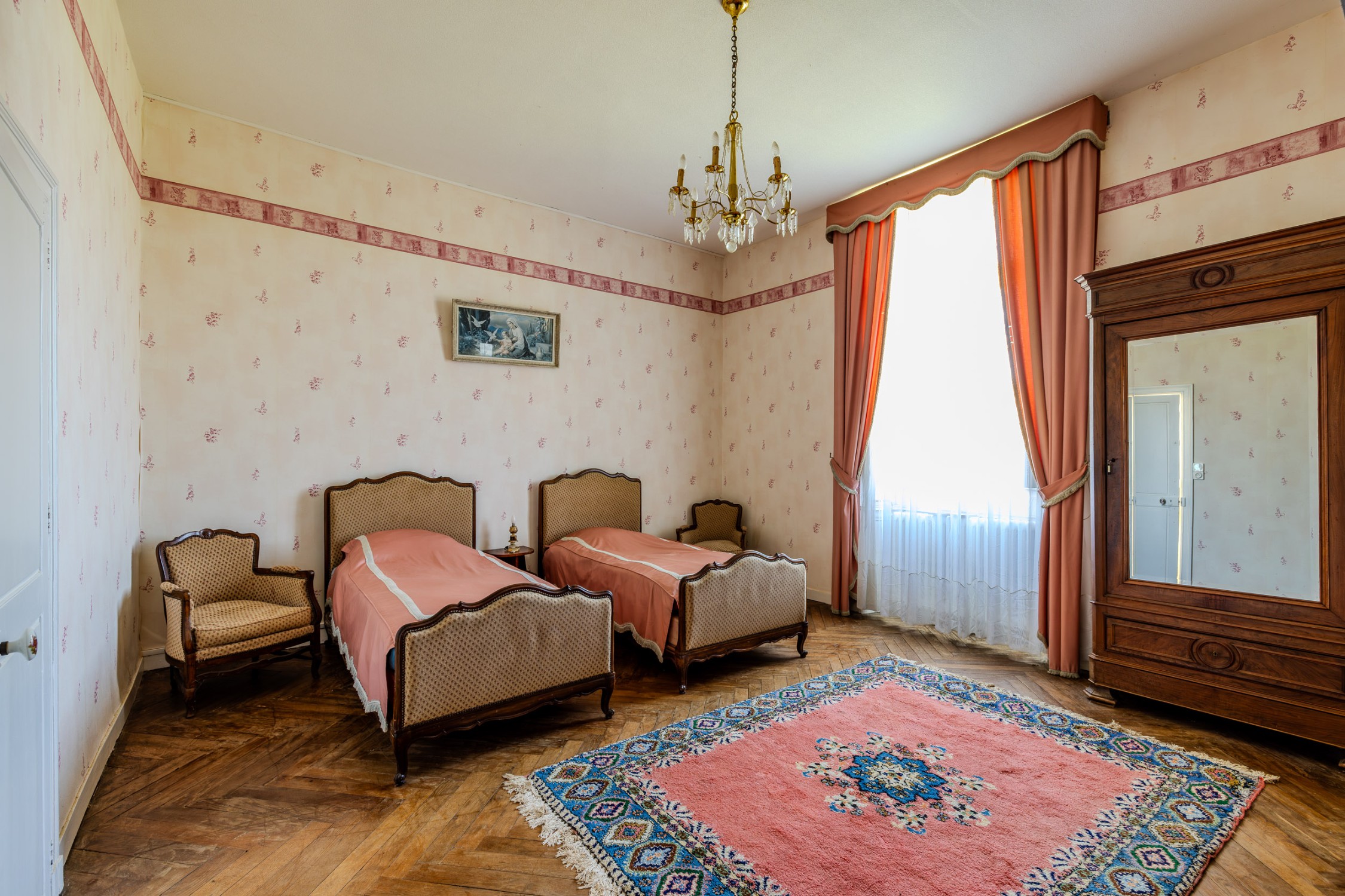 Eerste verdieping: Een brede gang loopt door het hele huis en verbindt vier slaapkamers, een studeerkamer, een complete badkamer en een douchekamer. De originele parketvloeren en schouwen zijn behouden. De zijvleugels bieden aanvullende kamers die naar wens kunnen worden aangepast.
