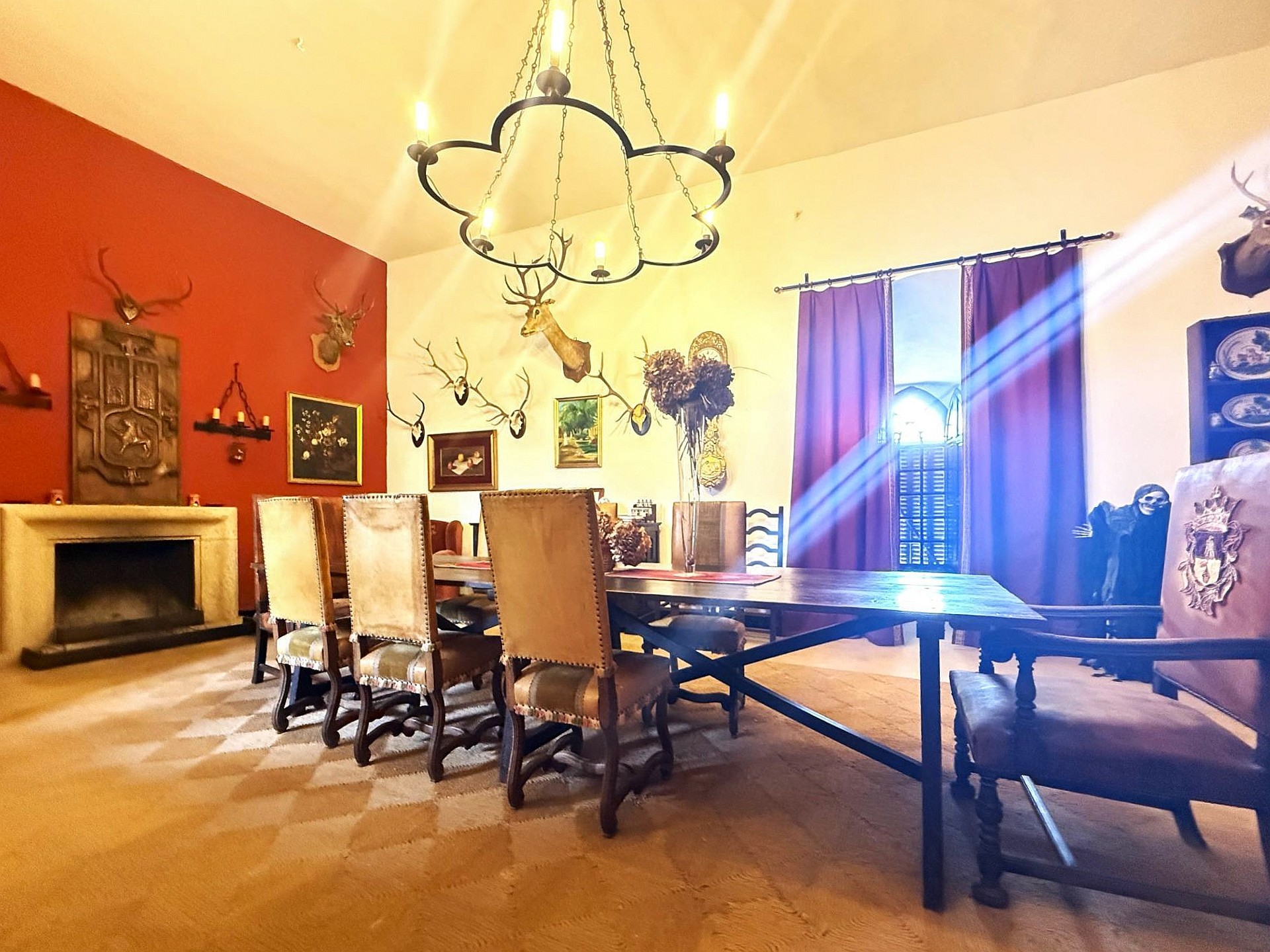 De architectuur omvat verdedigings torens, een grote binnenplaats met galerij, meerdere ruime zalen en een kapel. Het omliggende terrein is aangewezen als privé jachtgebied, met onaangetaste landschappen, een rijke biodiversiteit en een hoge mate van privacy.
