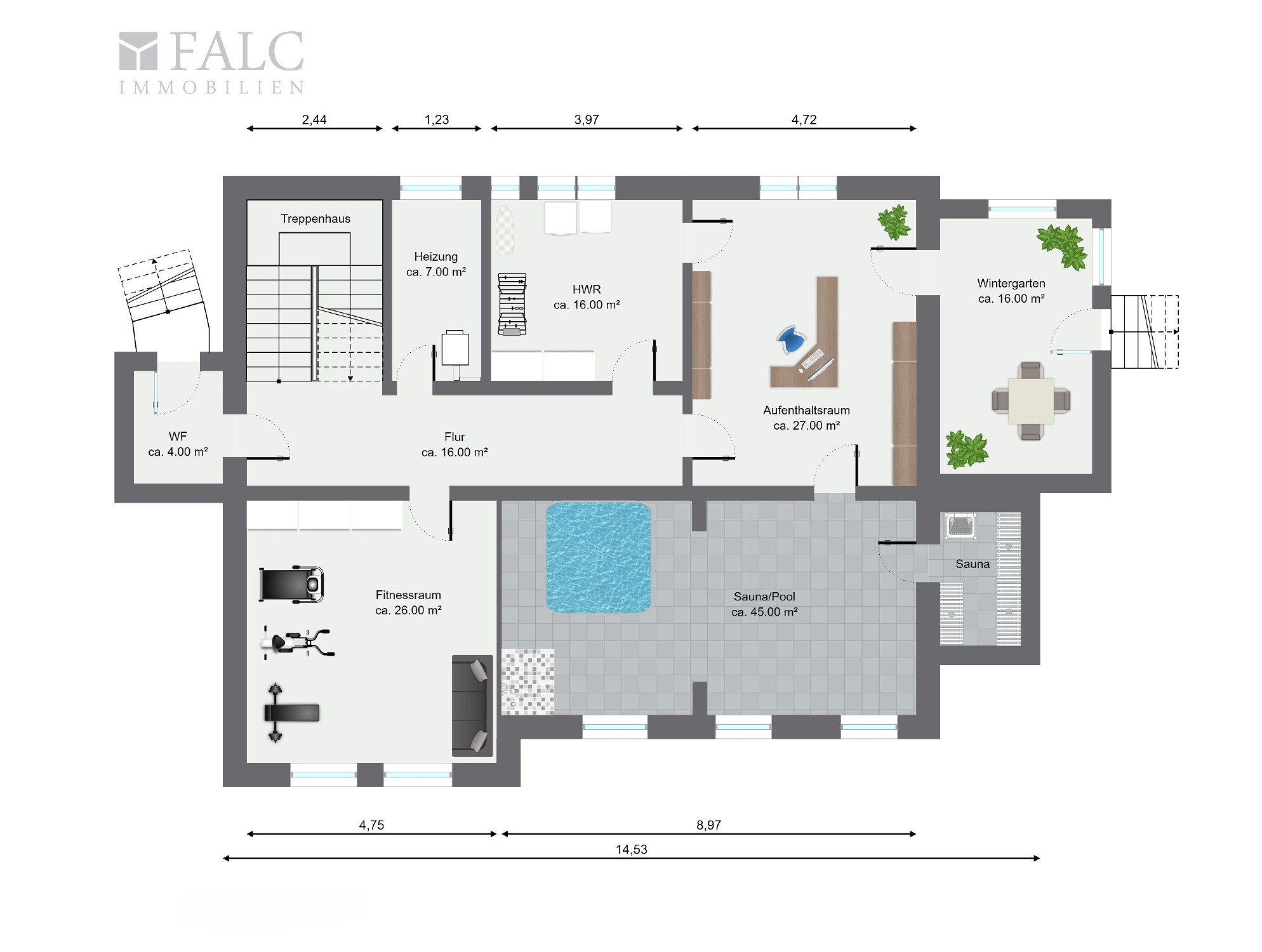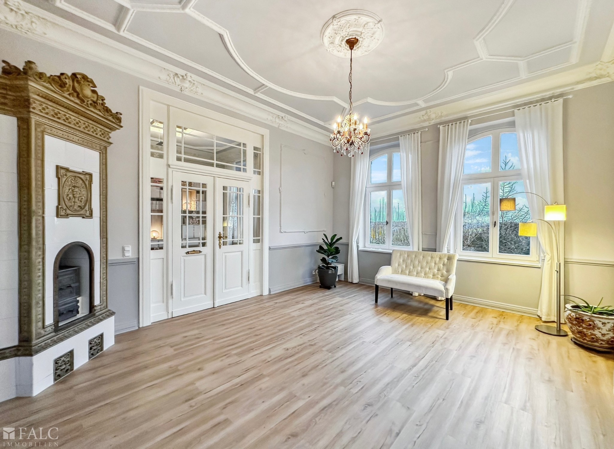 Luxe historische villa in het zuidoosten van Magdeburg zoekt een nieuwe eigenaar: Ontdek deze aantrekkelijke villa van ongeveer 370 m² uit 1892 met Christopher Bünnig van FALC Immobilien. De grootte van het perceel is 1.066 m² en omvat onder andere een onlangs gemoderniseerd overdekt zoutwaterbuitenzwembad van 14 meter lang, ideaal voor verfrissing en sportieve activiteiten op warme zomerdagen. Op een overdekt, betegeld terras kunt u ontspannen zitten, ontbijten of dineren en genieten van het uitzicht over uw prachtige perceel. In de ongeveer 50 m² grote dubbele garage staan uw auto's altijd droog. De garage heeft ook een extra toilet. In de tuin is voldoende ruimte om hout voor de open haard op te slaan of uw eigen groentebedden aan te leggen. Bovendien is deze volledig omringd door een bakstenen muur en dus volledig afgeschermd. De struiken en bomen in de tuin brengen het perceel tot leven en zorgen voor een aangename sfeer. Op het terrein bevindt zich ook een eigen diepe put (ongeveer 60 meter diep), en een irrigatiesysteem voor het hele perceel is al voorbereid. In de jaren 2005 tot 2008 is de villa volledig gerenoveerd en compleet vernieuwd. In 2015 is het dak opnieuw bedekt. Na de meest recente modernisering van het interieur in 2022 verkeert het object in uitstekende staat. Vloerverwarming en de open haard op de begane grond zorgen voor een gezellige sfeer. De kamers hebben plafonds tot wel 4 meter hoog, wat ze een bijzondere uitstraling geeft. Ook de gedetailleerde stucplafonds dragen bij aan een koninklijk gevoel in de kamers. Uw nieuwe woning heeft maar liefst 9 (!) ruime kamers. In het souterrain vindt u ook een hoogtepunt voor alle spa-liefhebbers. Overtuig uzelf van deze geweldige historische villa!