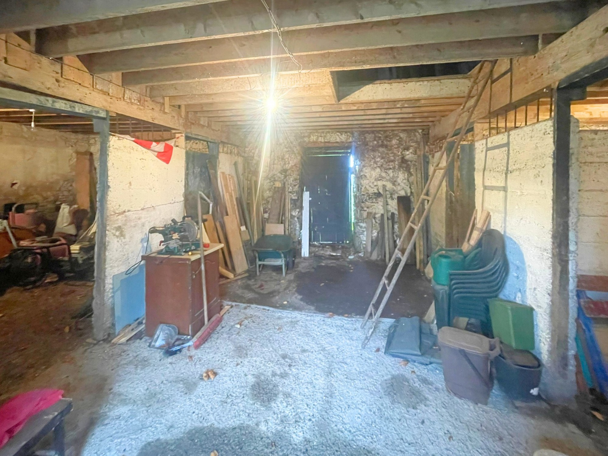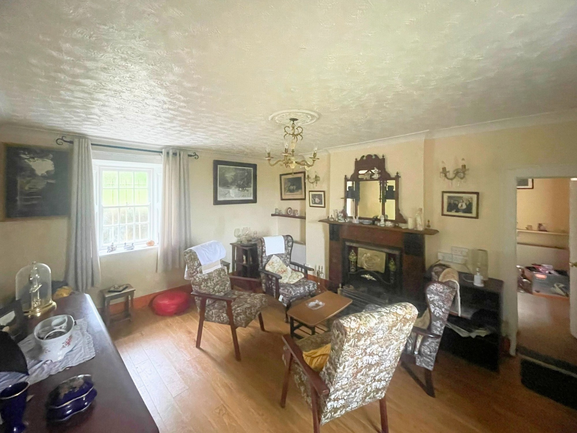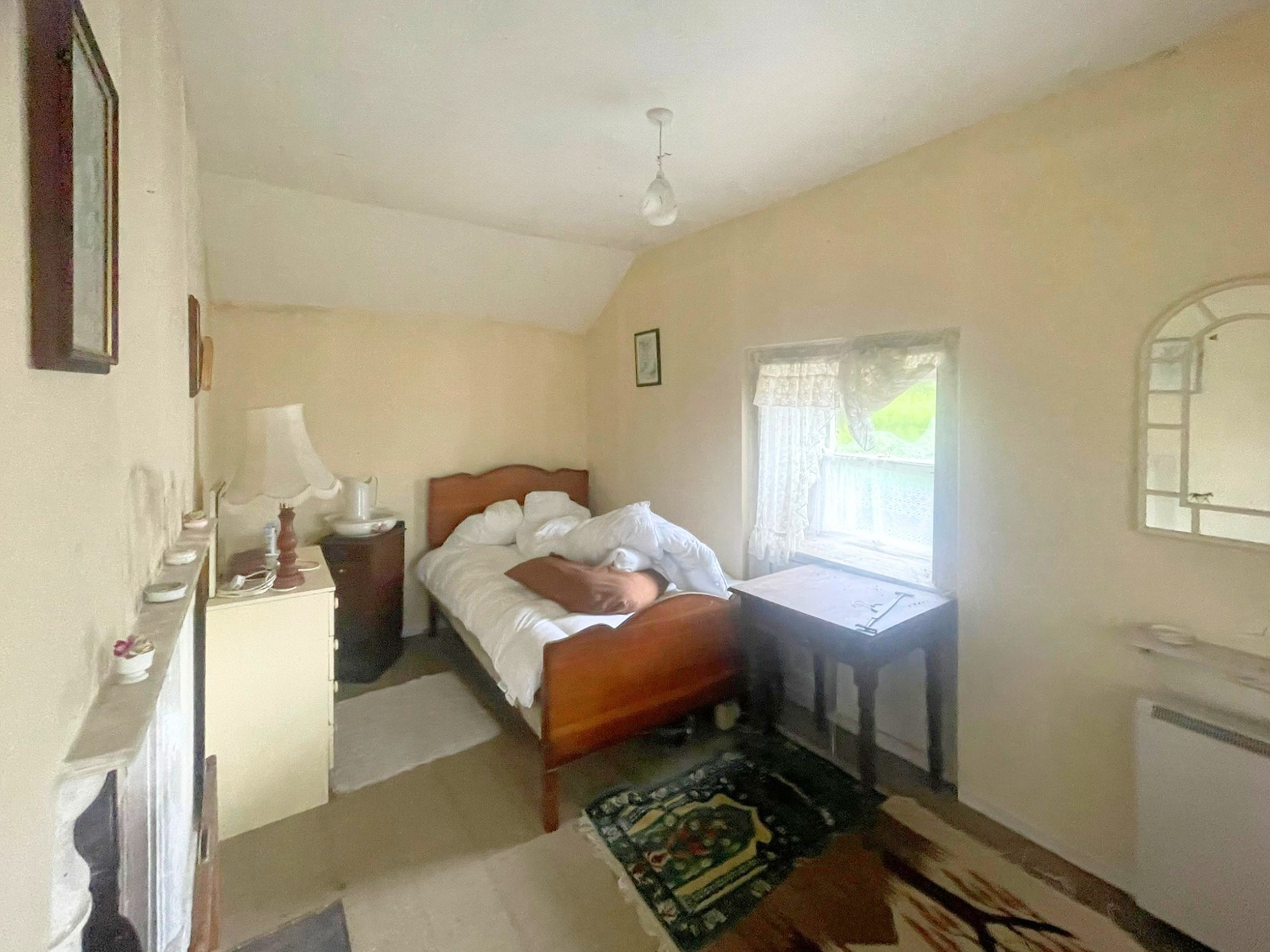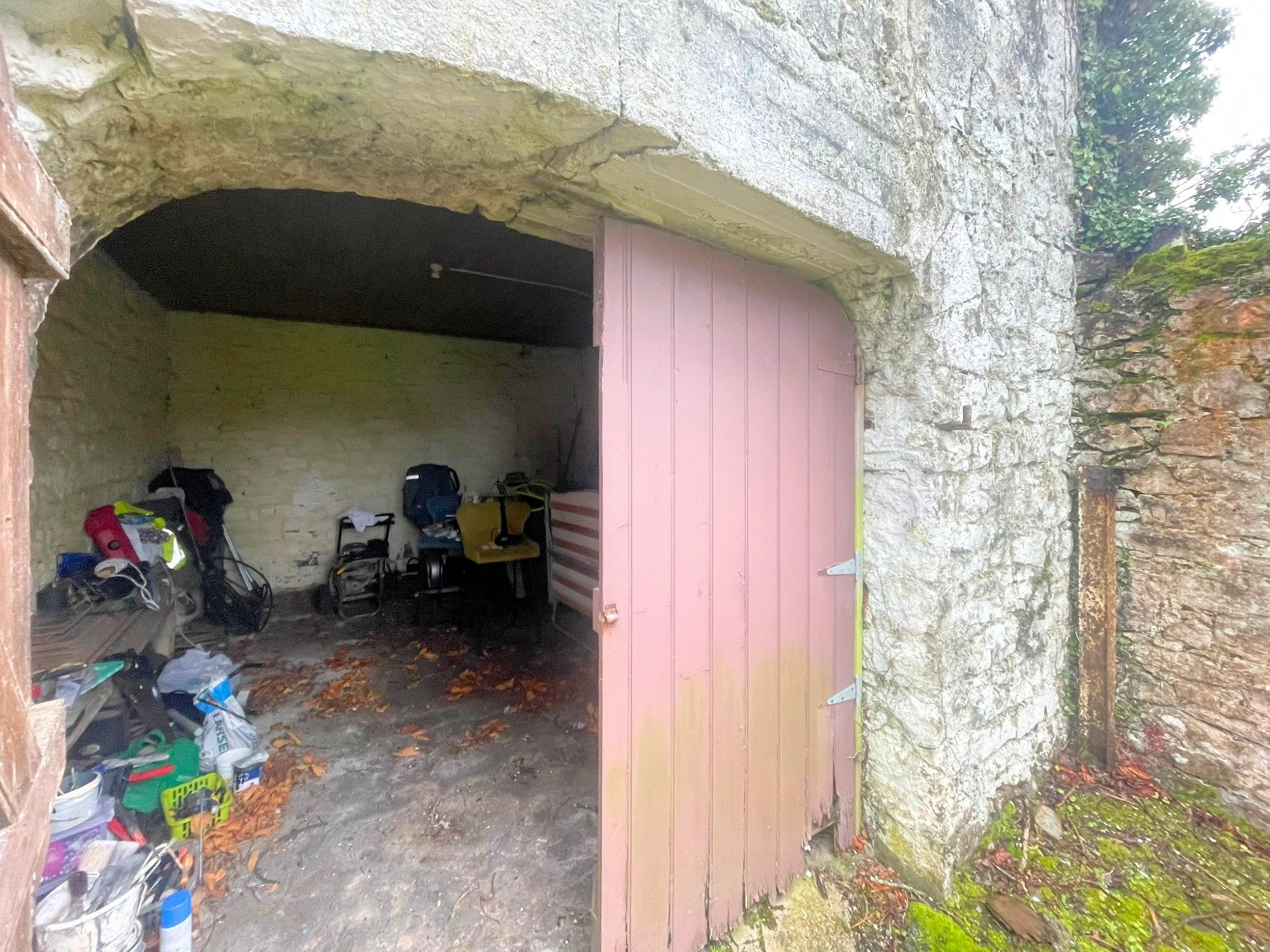Volwassen bomen, een ommuurde tuin en de binnenplaats met de gebouwen met leien dak bieden mogelijkheden voor herontwikkeling (met vergunning).