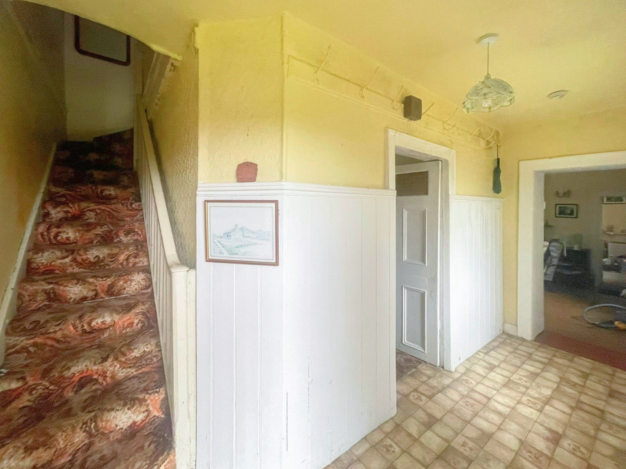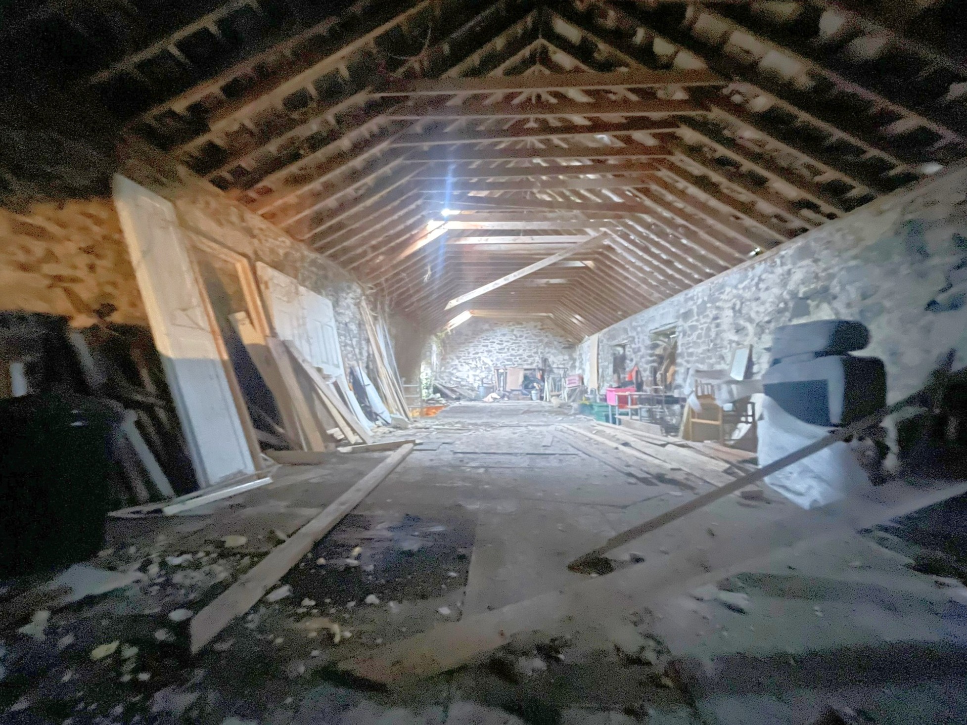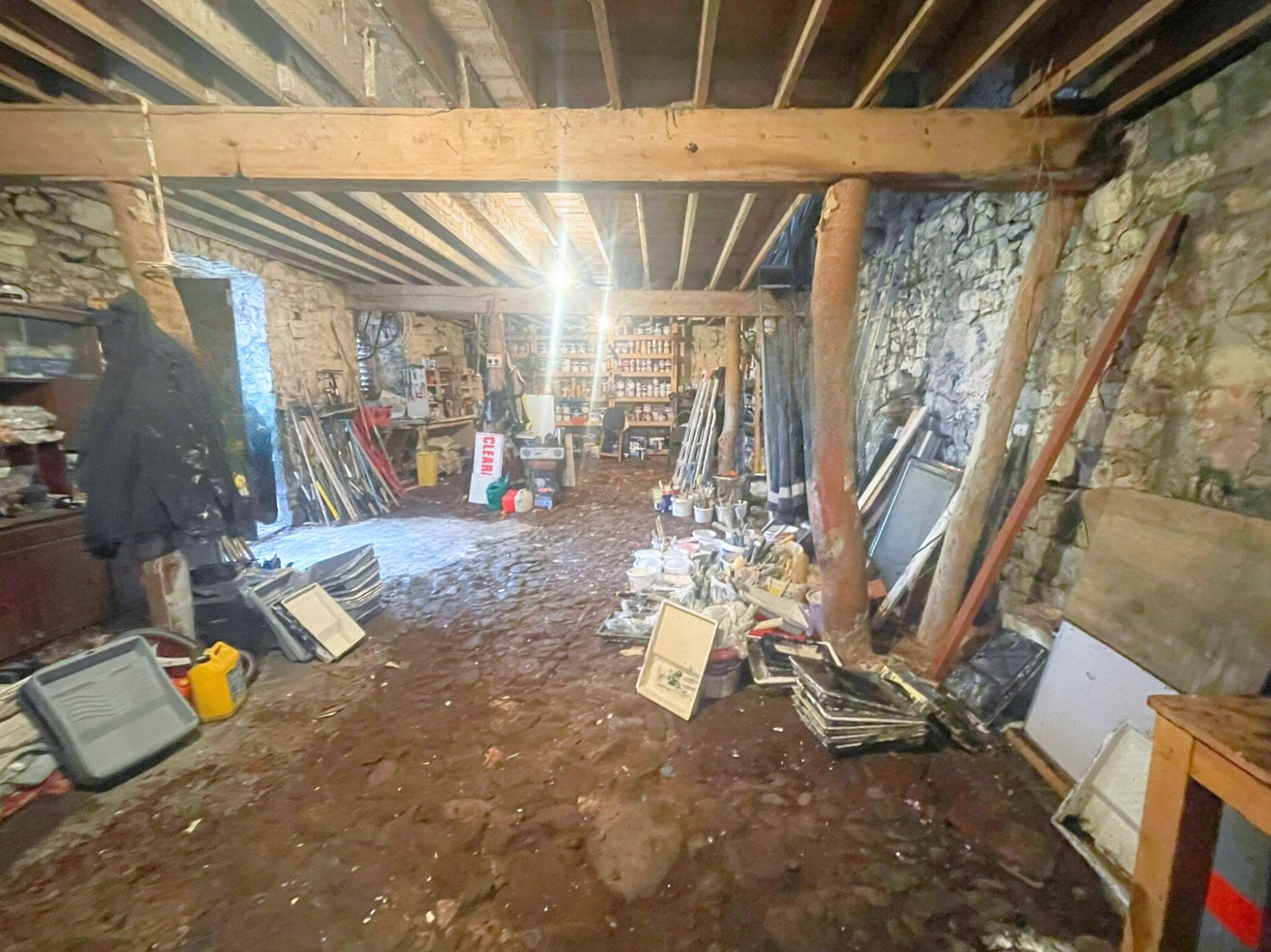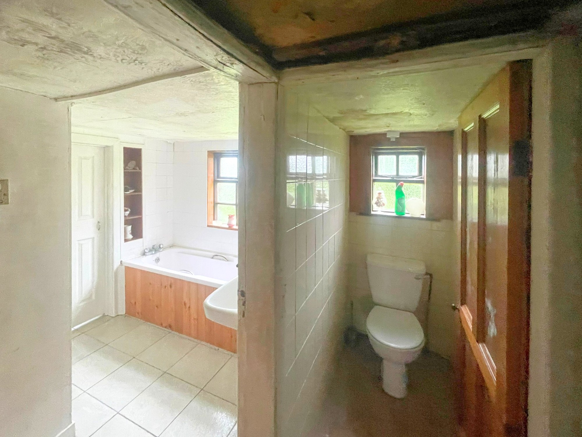 Volwassen bomen, een ommuurde tuin en de binnenplaats met de gebouwen met leien dak bieden mogelijkheden voor herontwikkeling (met vergunning).