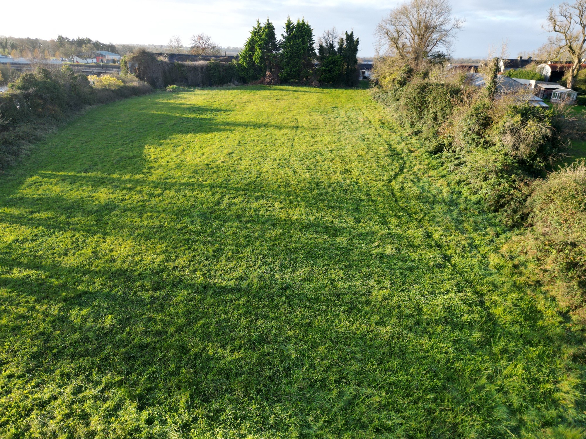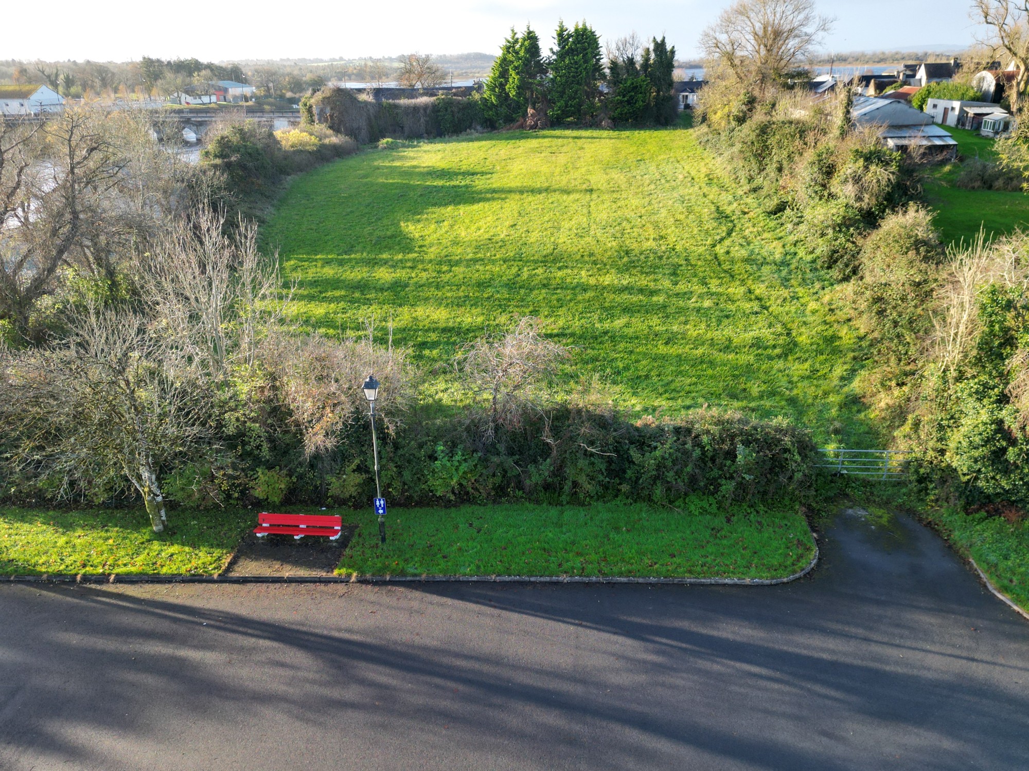 Het perceel heeft twee straatgevels en drie toegangen binnen het woongebied van Ballyleague, allemaal als woongebied bestemd.