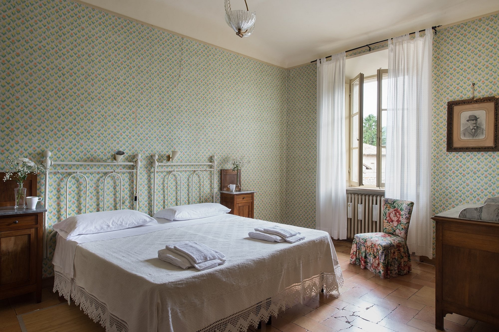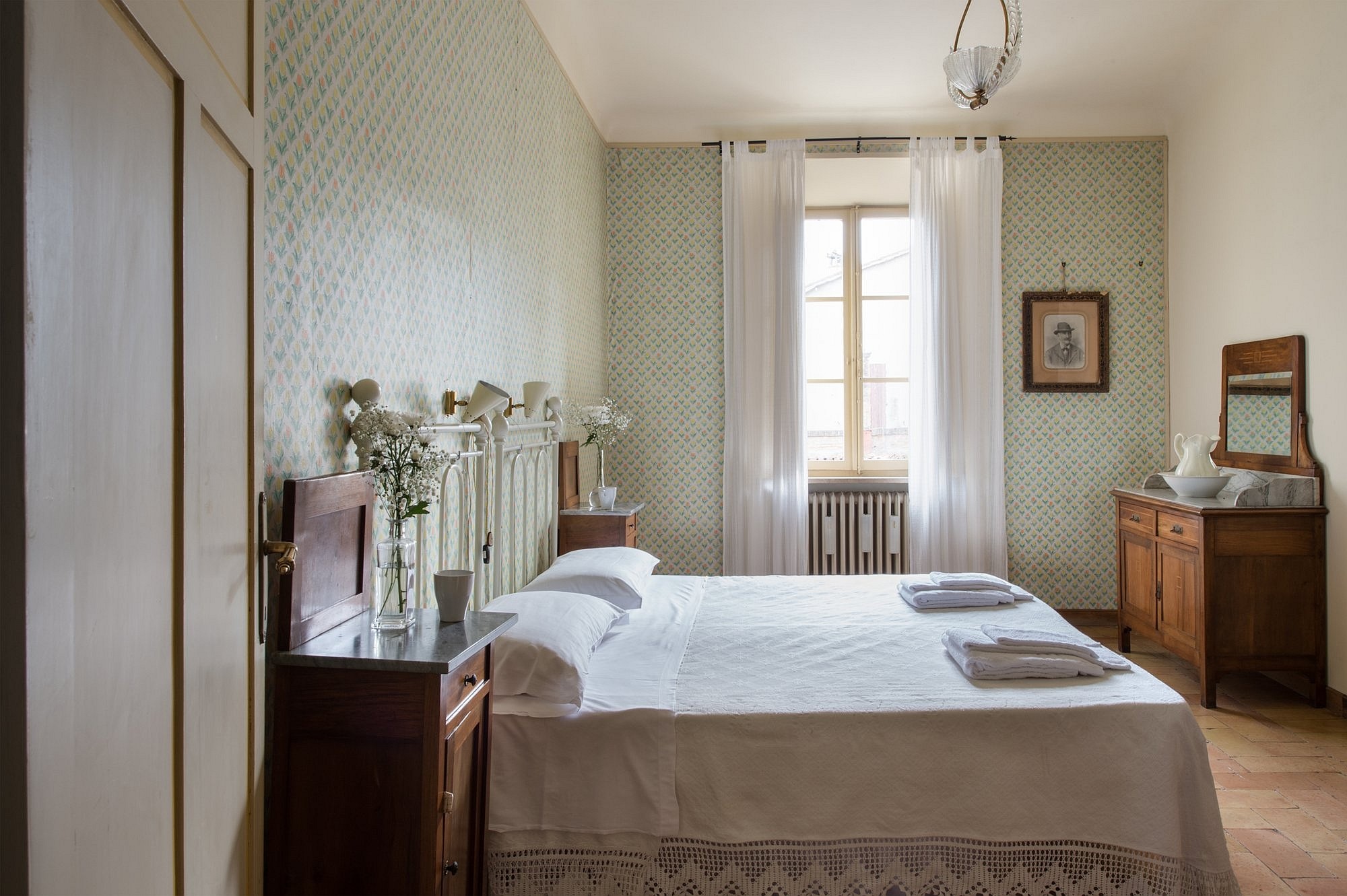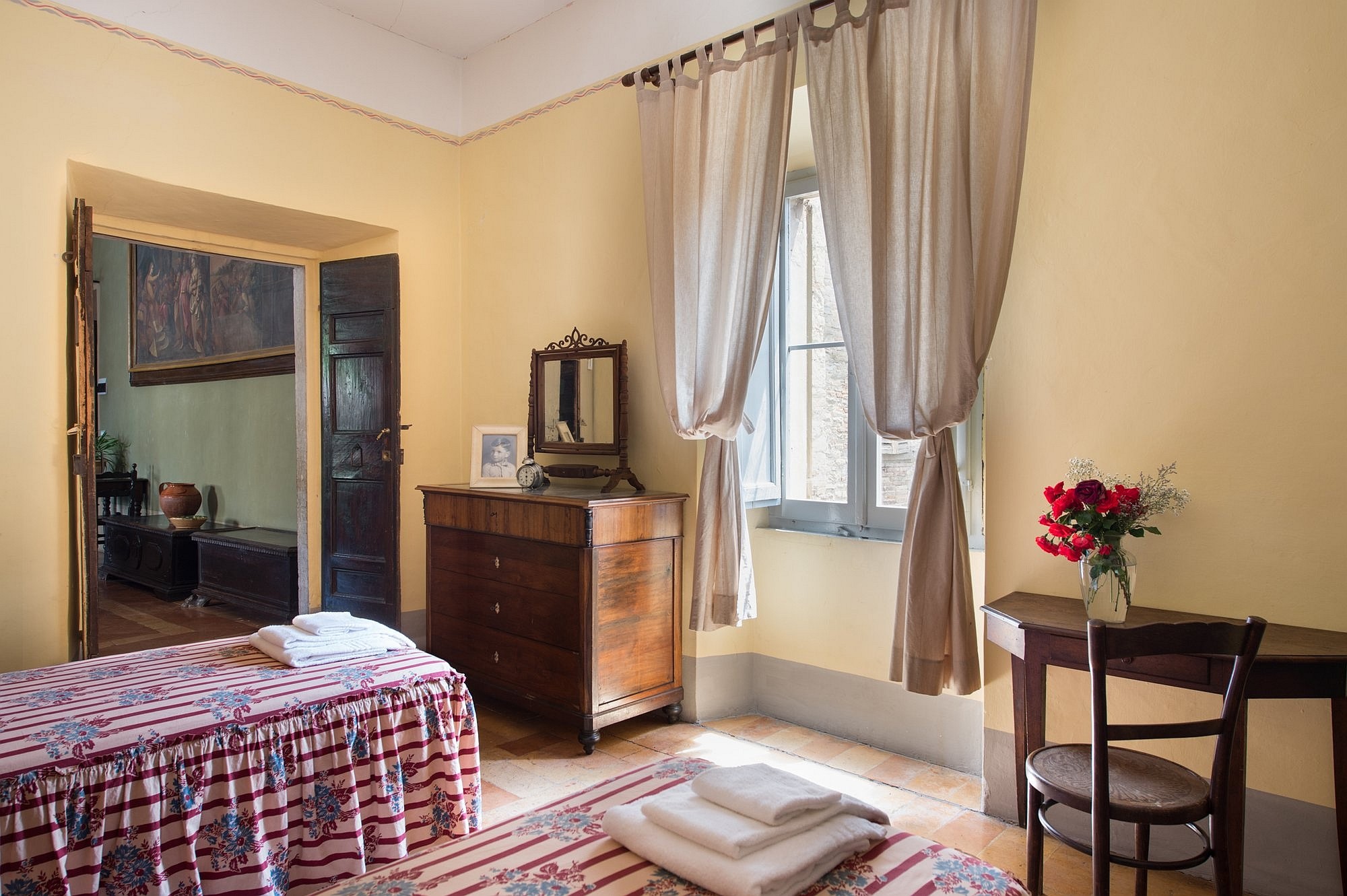 De residentie omvat zes luxe tweepersoons suites, elk met een eigen karakter en uitzicht op de tuin. Fresco’s, antieke terracottavloeren en zichtbare balken versterken de historische sfeer. Moderne en-suite badkamers zijn elegant gerenoveerd, terwijl hoge plafonds en grote ramen het gevoel geven in een adellijke residentie te wonen, met alle hedendaagse gemakken.