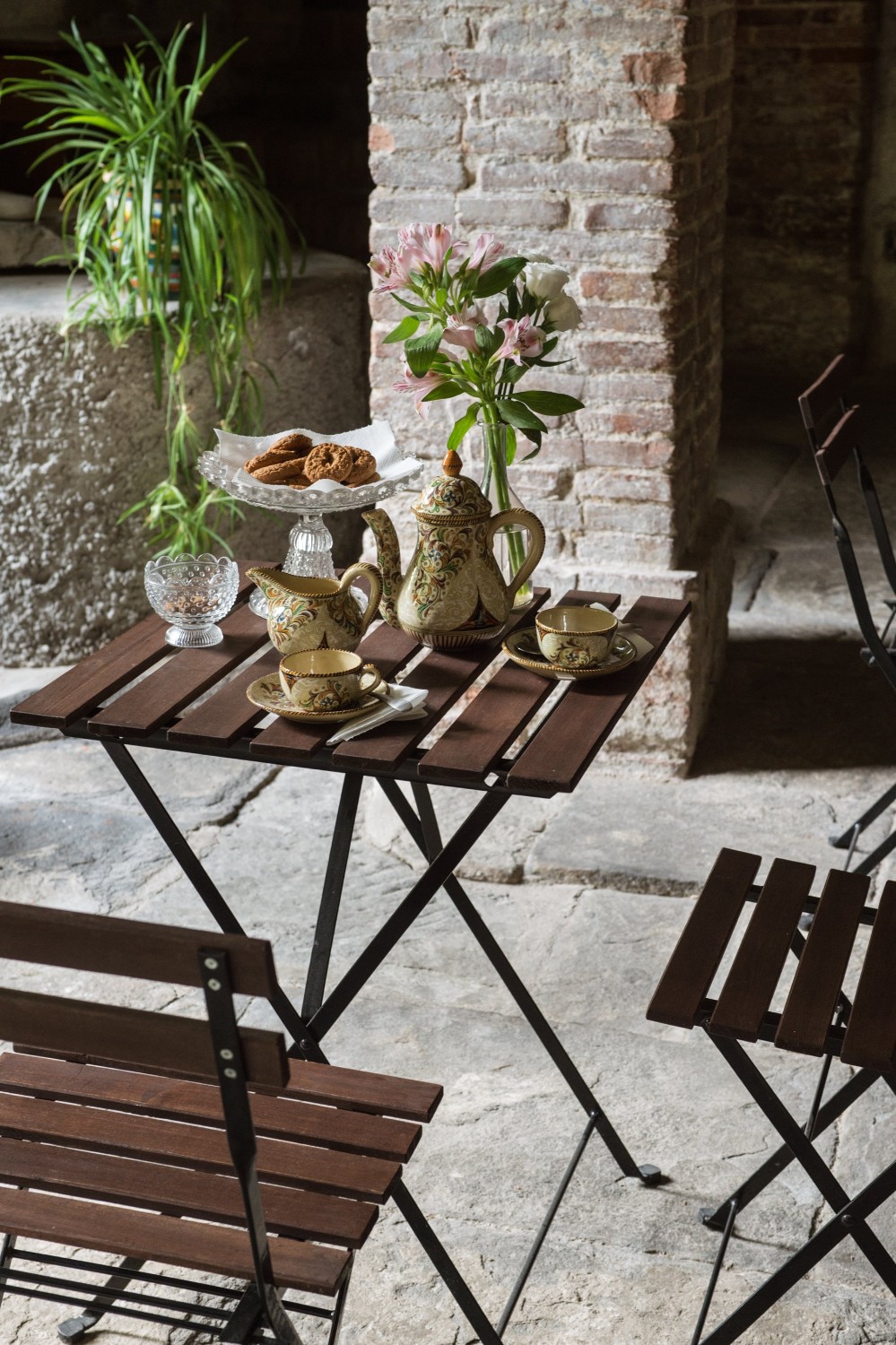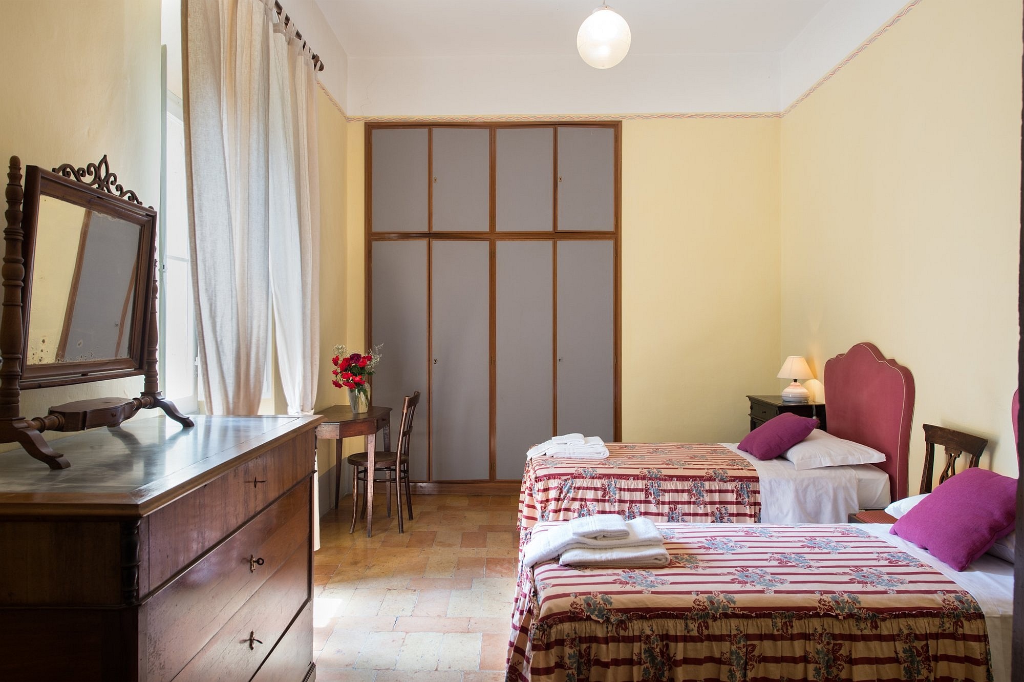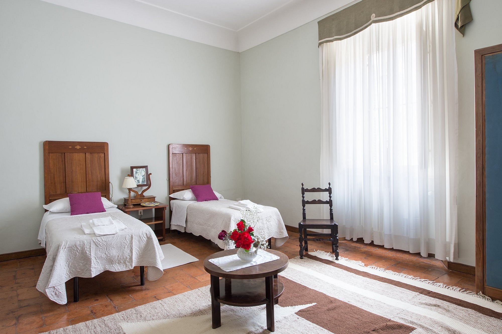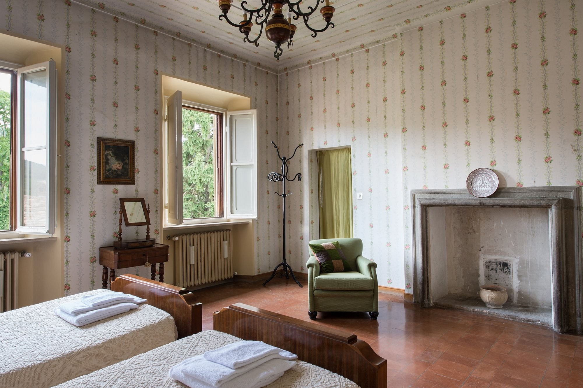 De residentie omvat zes luxe tweepersoons suites, elk met een eigen karakter en uitzicht op de tuin. Fresco’s, antieke terracottavloeren en zichtbare balken versterken de historische sfeer. Moderne en-suite badkamers zijn elegant gerenoveerd, terwijl hoge plafonds en grote ramen het gevoel geven in een adellijke residentie te wonen, met alle hedendaagse gemakken.