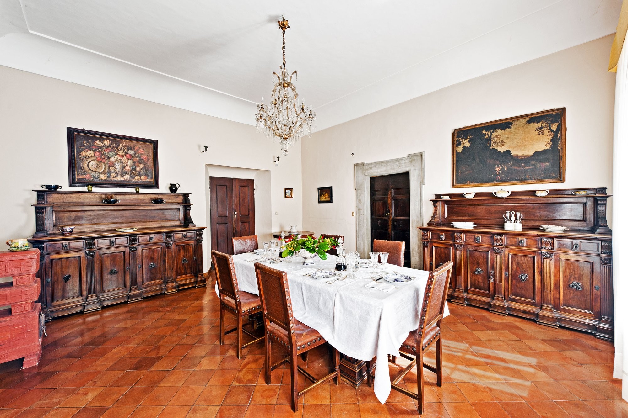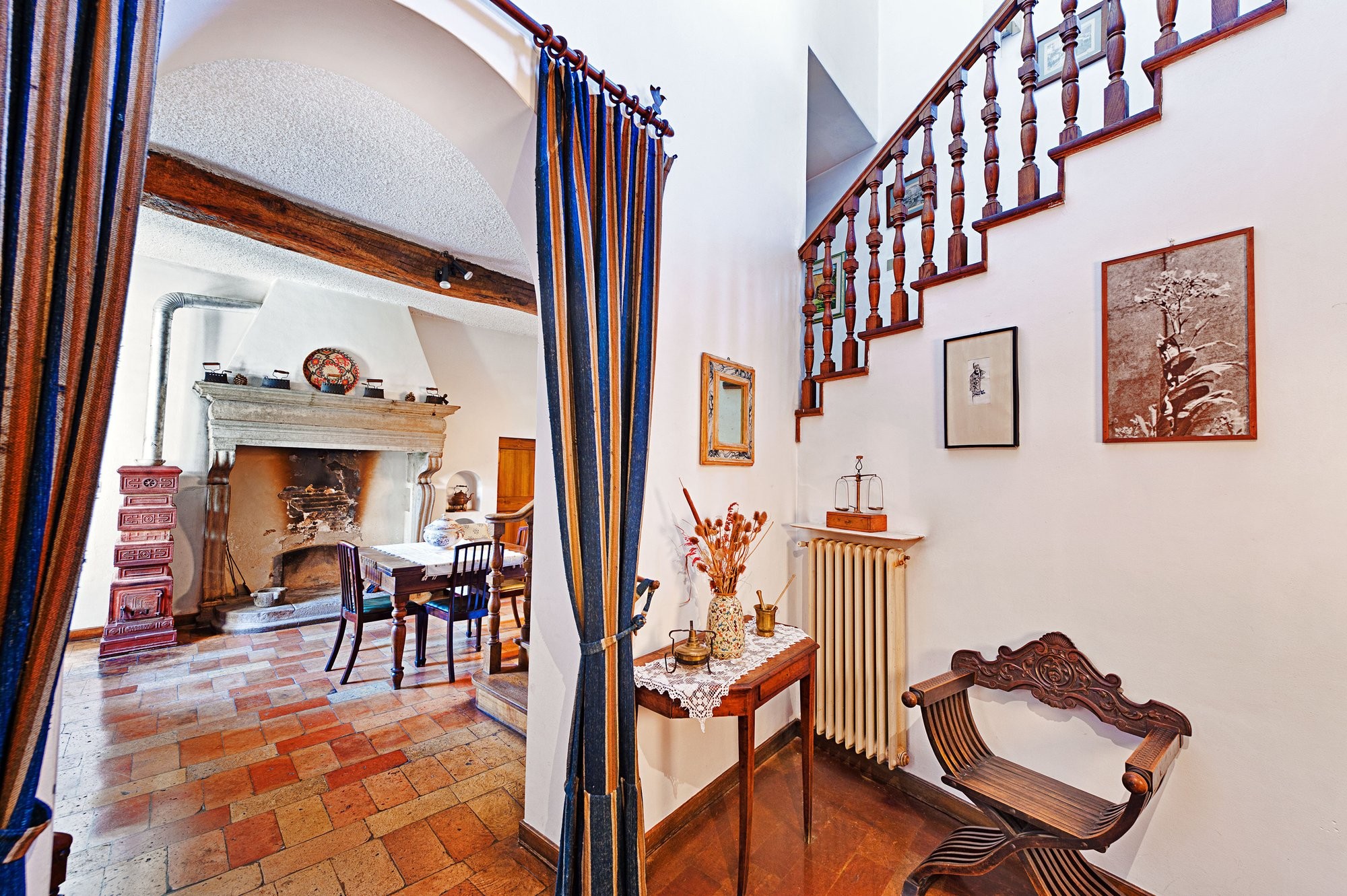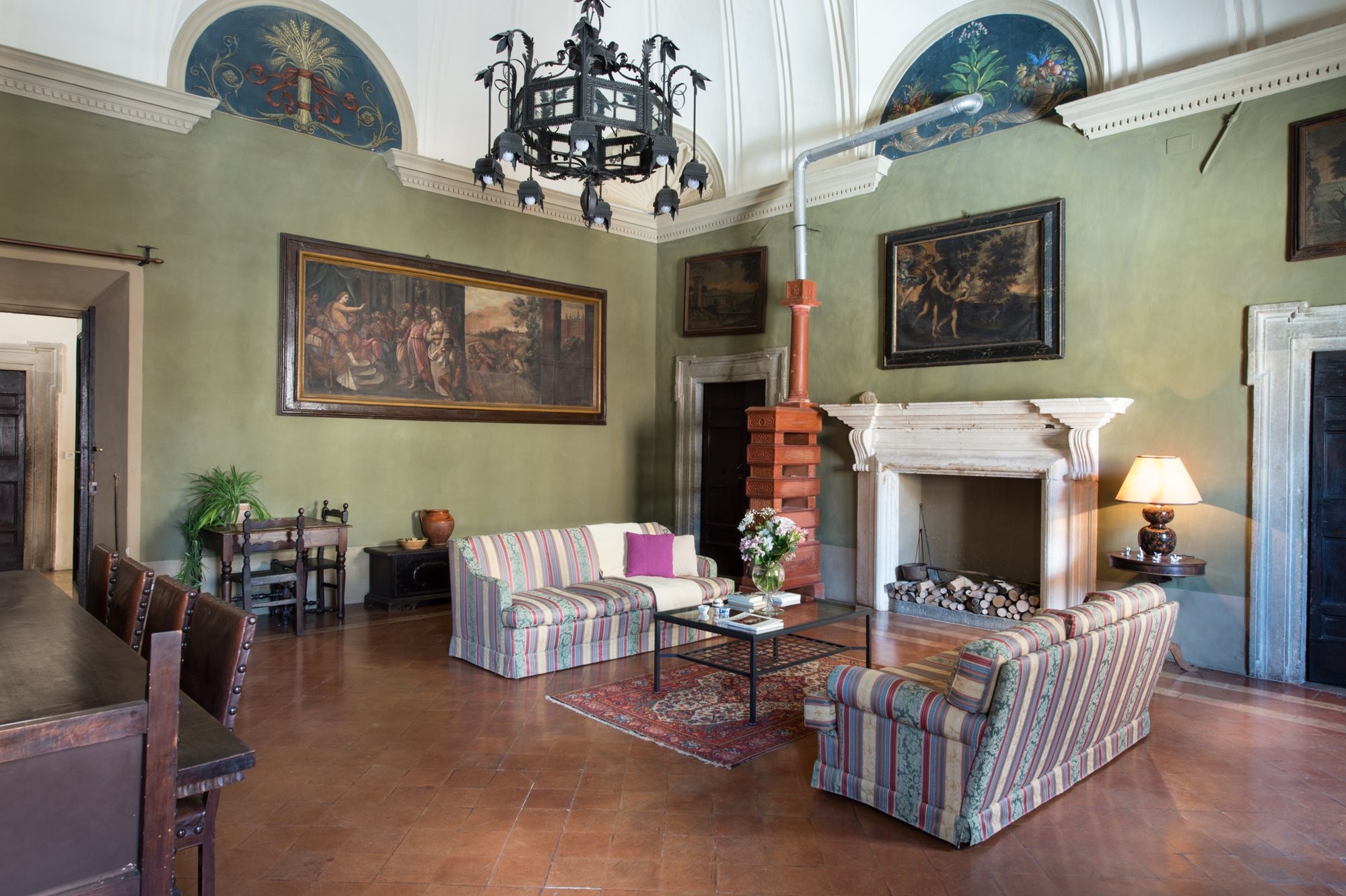 De linker vleugel herbergt het piano nobile, met originele renaissanceornamenten, hoge handgeschilderde fresco’s en muren die meer dan 500 jaar Italiaanse geschiedenis hebben meegemaakt. De rechter vleugel beslaat twee verdiepingen met ruime woonruimtes die historische charme combineren met modern comfort. Natuurlijk licht valt door hoge ramen en benadrukt gewelfde doorgangen, decoratieve lijstwerken en gebeeldhouwde deuren – elk detail weerspiegelt de adellijke erfenis van de residentie.