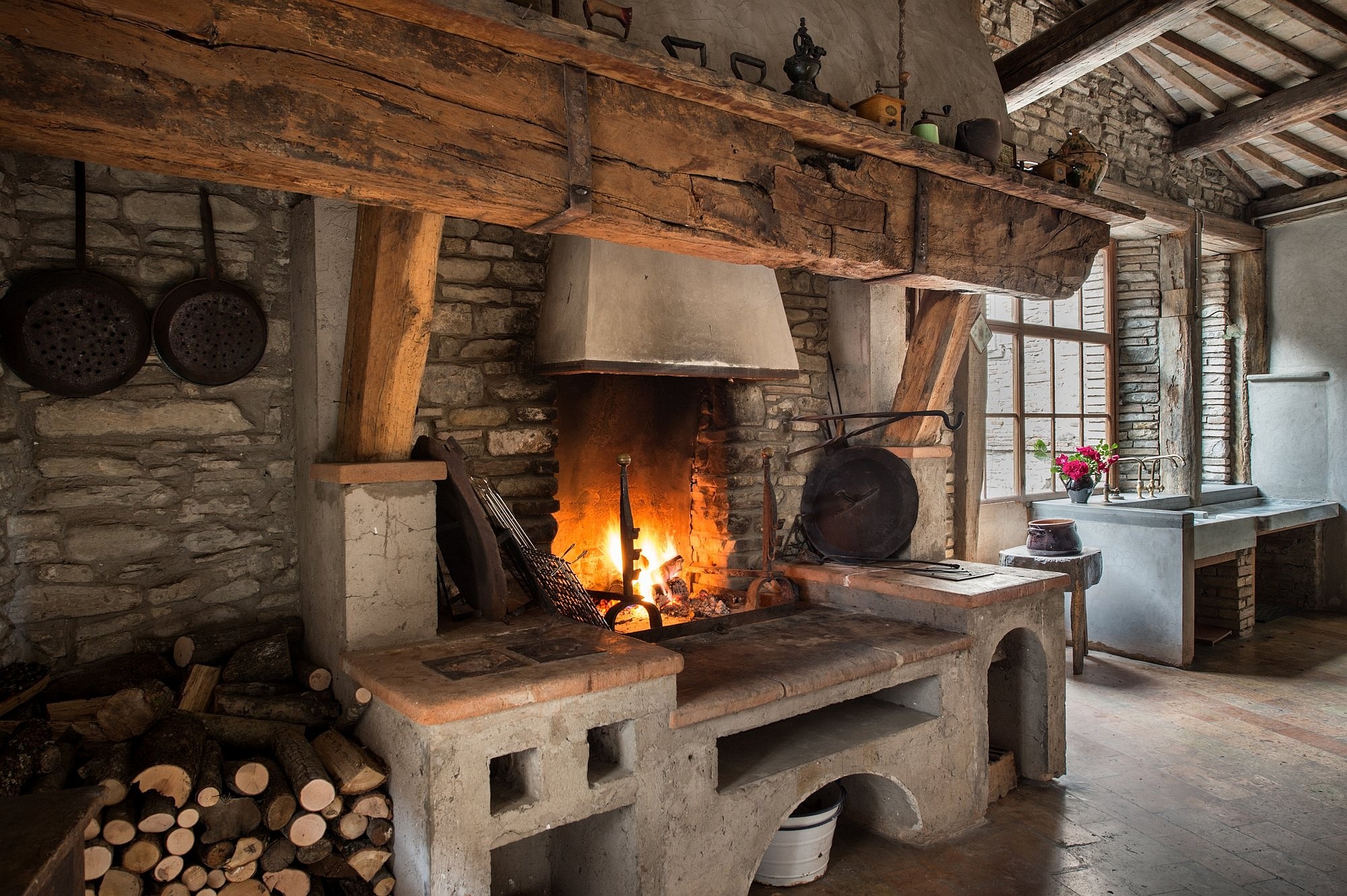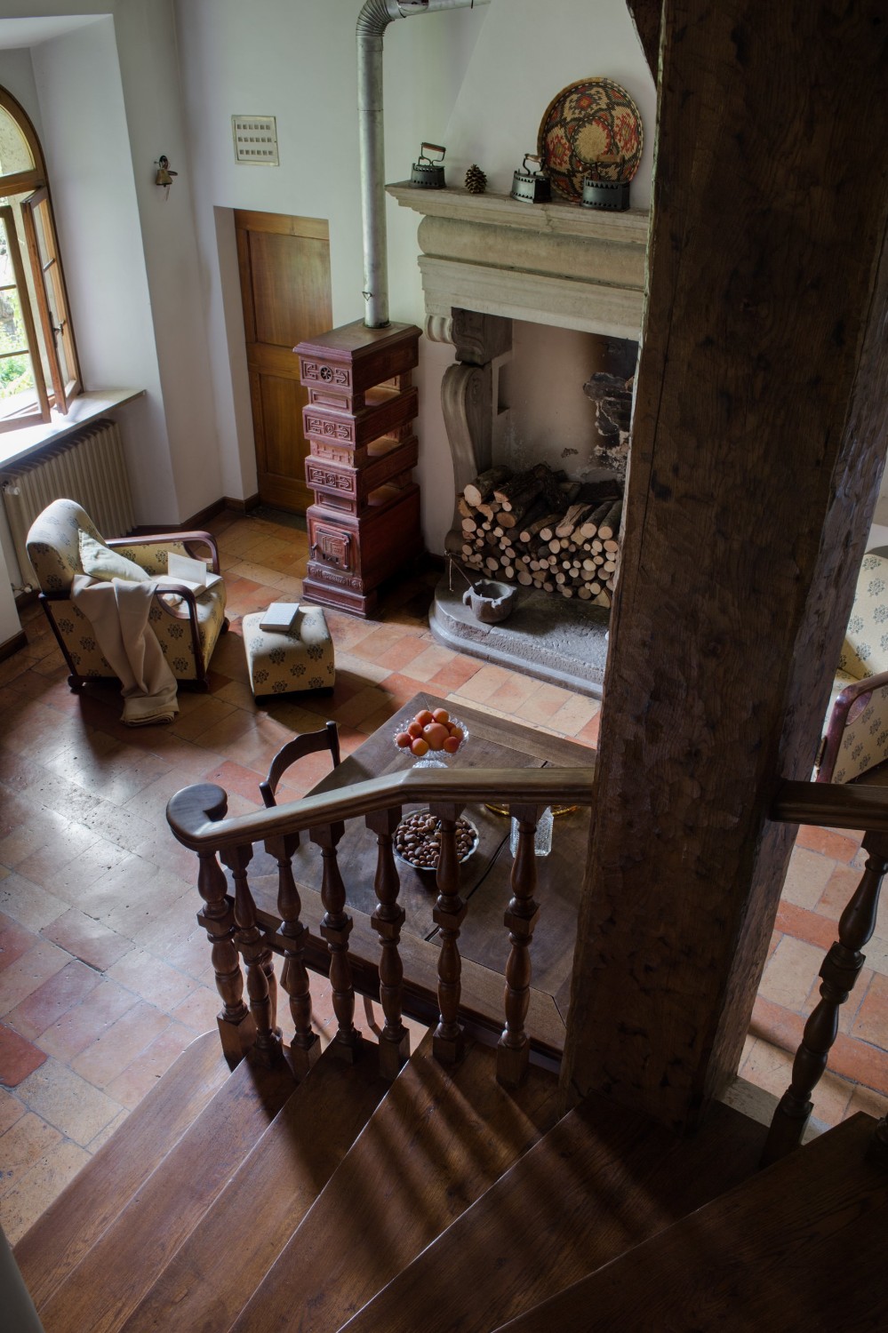 Het gebouw bestaat uit twee vleugels, verbonden door een majestueuze stenen trap. Een lange gang leidt naar een privé binnenplaats, een rustige toevluchtsoord met bloeiende rozen, fruitbomen en eeuwenoude beplanting.
