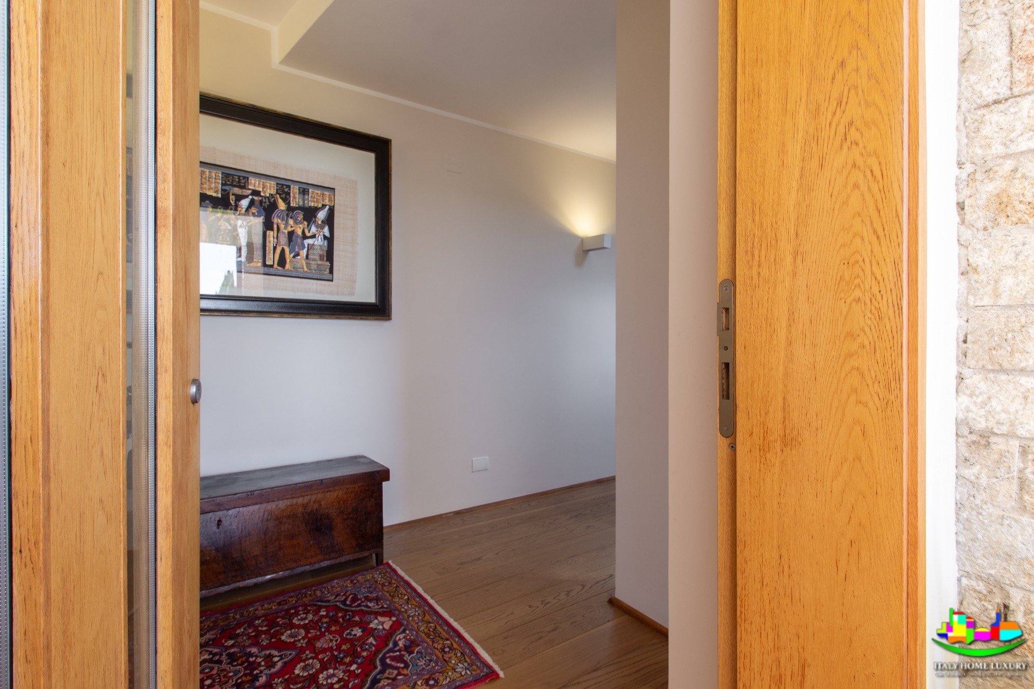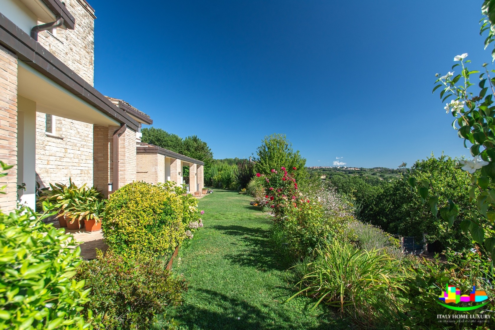 Het landgoed omvat ook een aangelegde heuvel met eiken en wilde pruimenbomen, die het huis en zwembad afschermen. Een muur van natuursteen leidt naar het tuin- en zwembadgedeelte, voorzien van een moderne zomerkeuken, houtoven en barbecue.