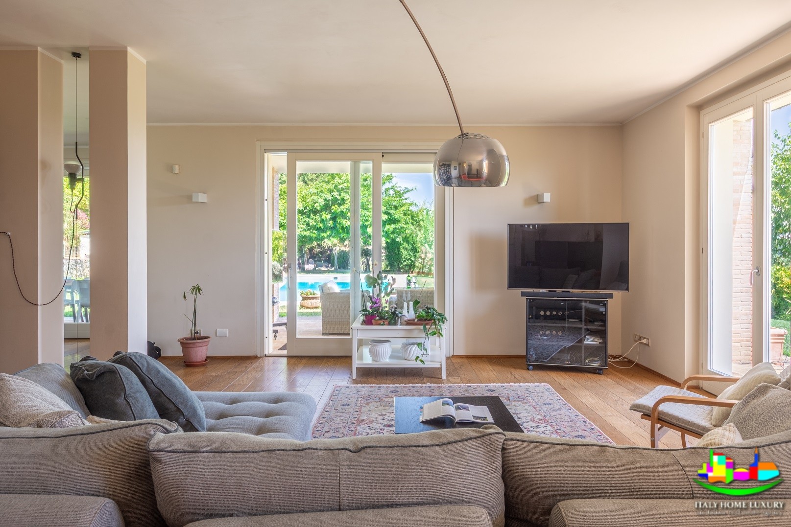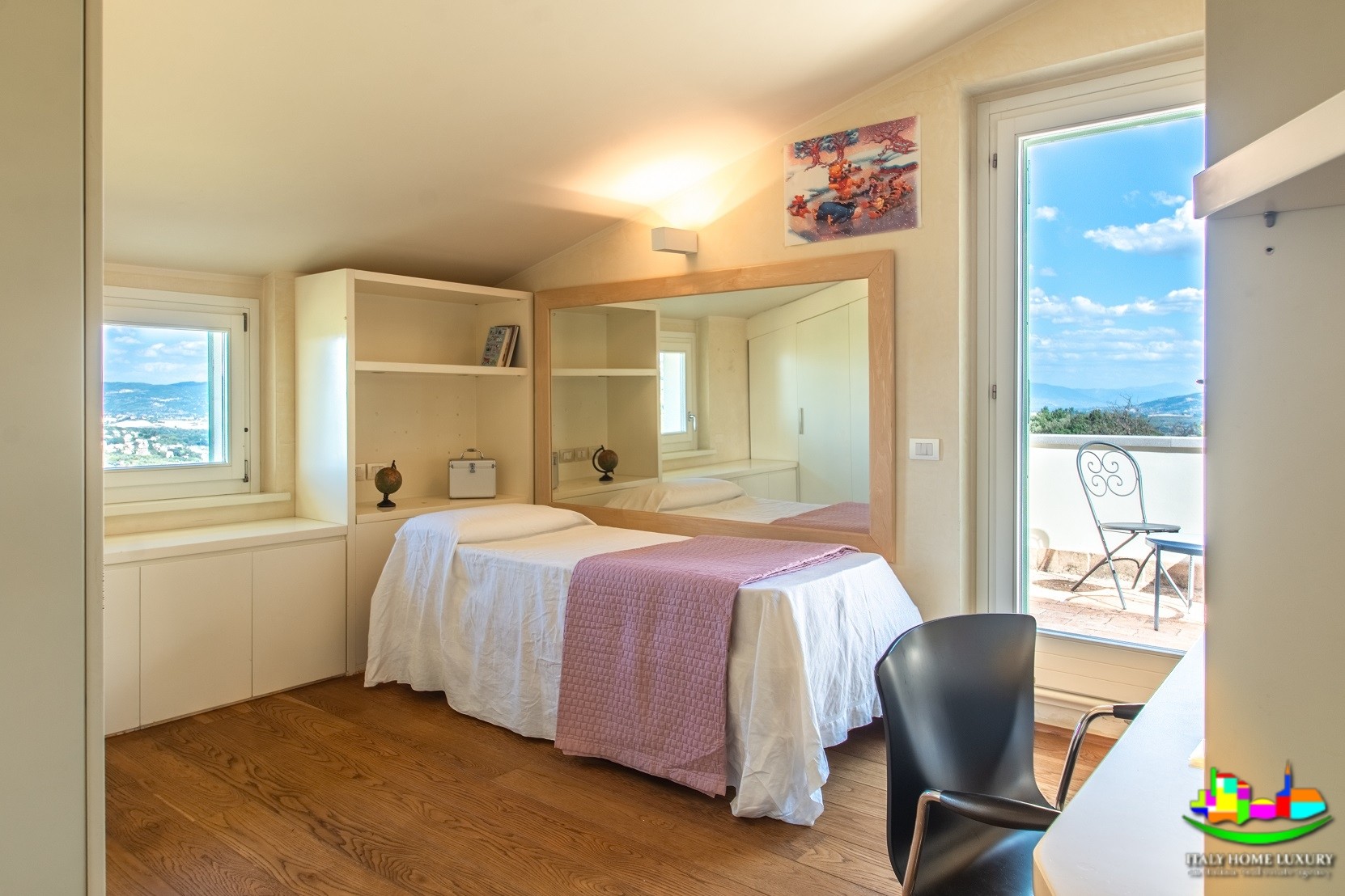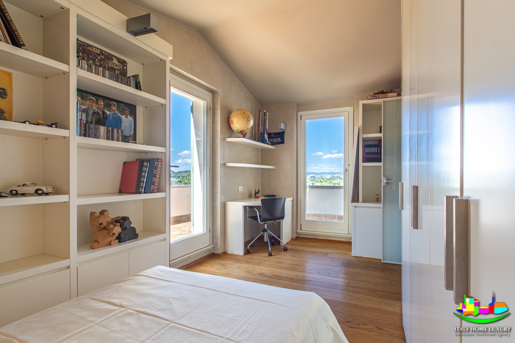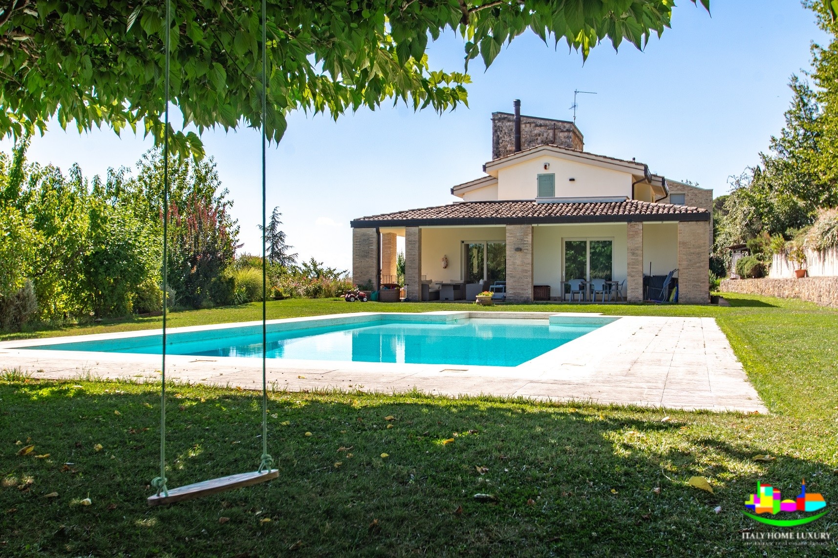 Gelegen in een rustige omgeving van Perugia, combineert dit landhuis historische charme met modern wooncomfort. Het middelpunt van het pand is een middeleeuwse duiventoren van travertin, aangevuld met twee vleugels met grote ramen en klassieke zadeldaken.