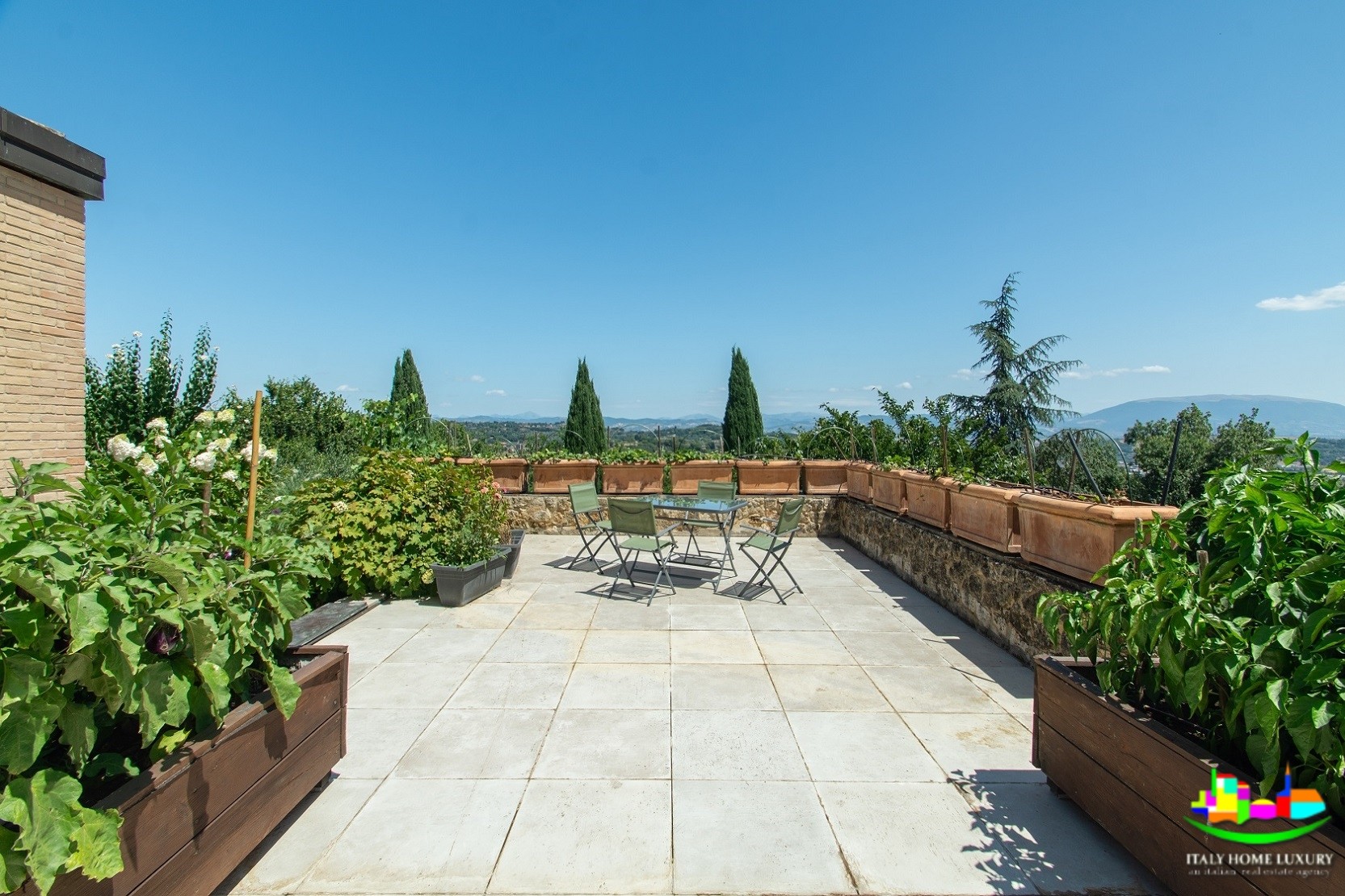 Het huis biedt panoramisch uitzicht op de Monte Subasio en de middeleeuwse stad Assisi.