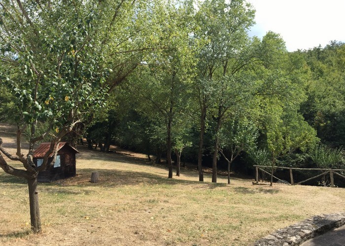 De tuin is ruim en wordt onderhouden door een lokale boer. Er staan olijfbomen, enkele wijnstokken, cipressen en volgroeide beplanting. Het terrein is volledig omheind en heeft een automatische toegangspoort. Met een redelijke investering zou dit een van de meest bijzondere eigendommen in de vallei kunnen worden.