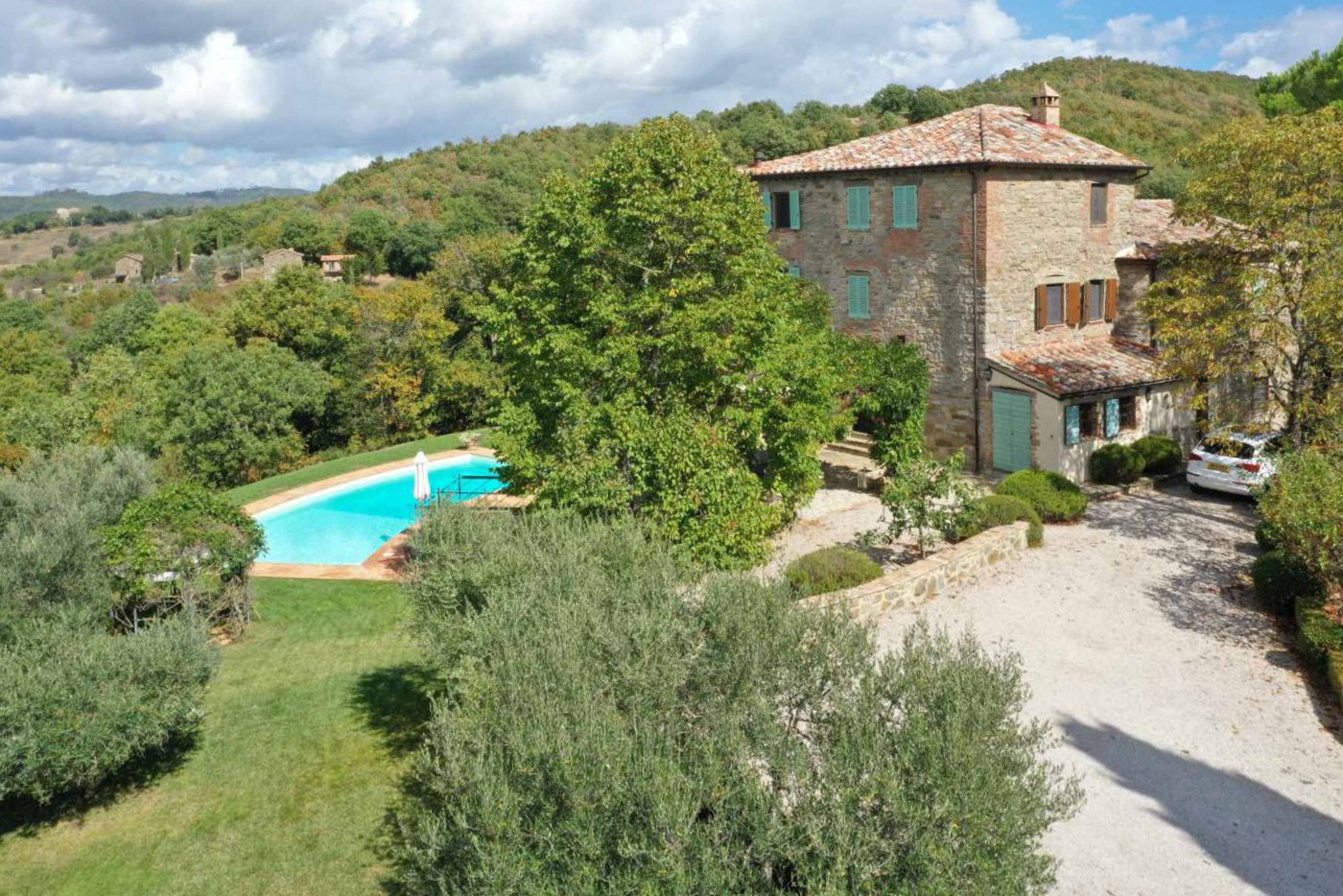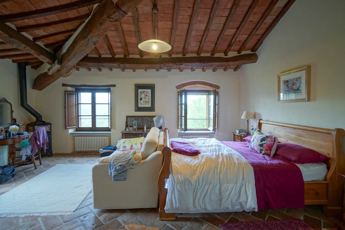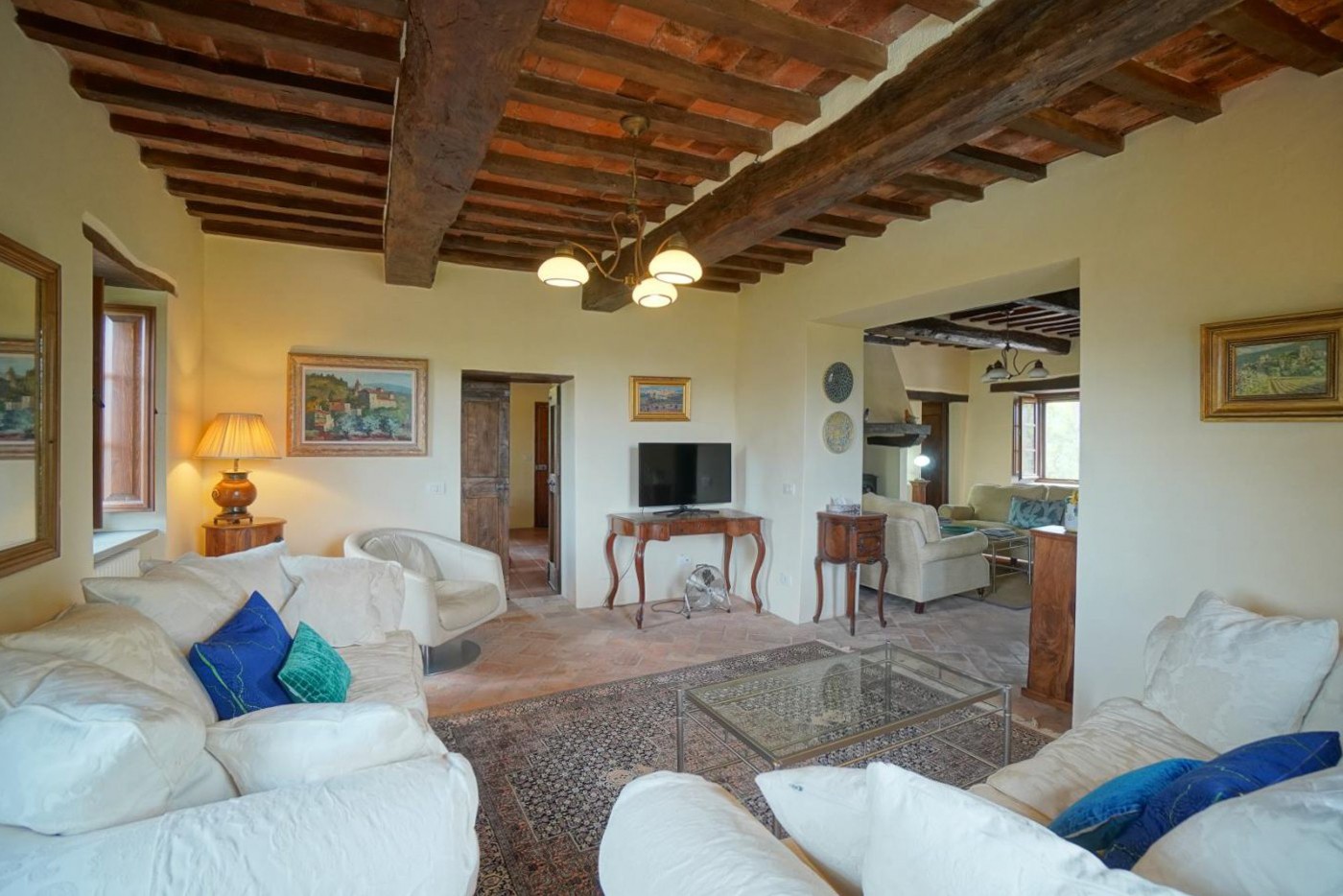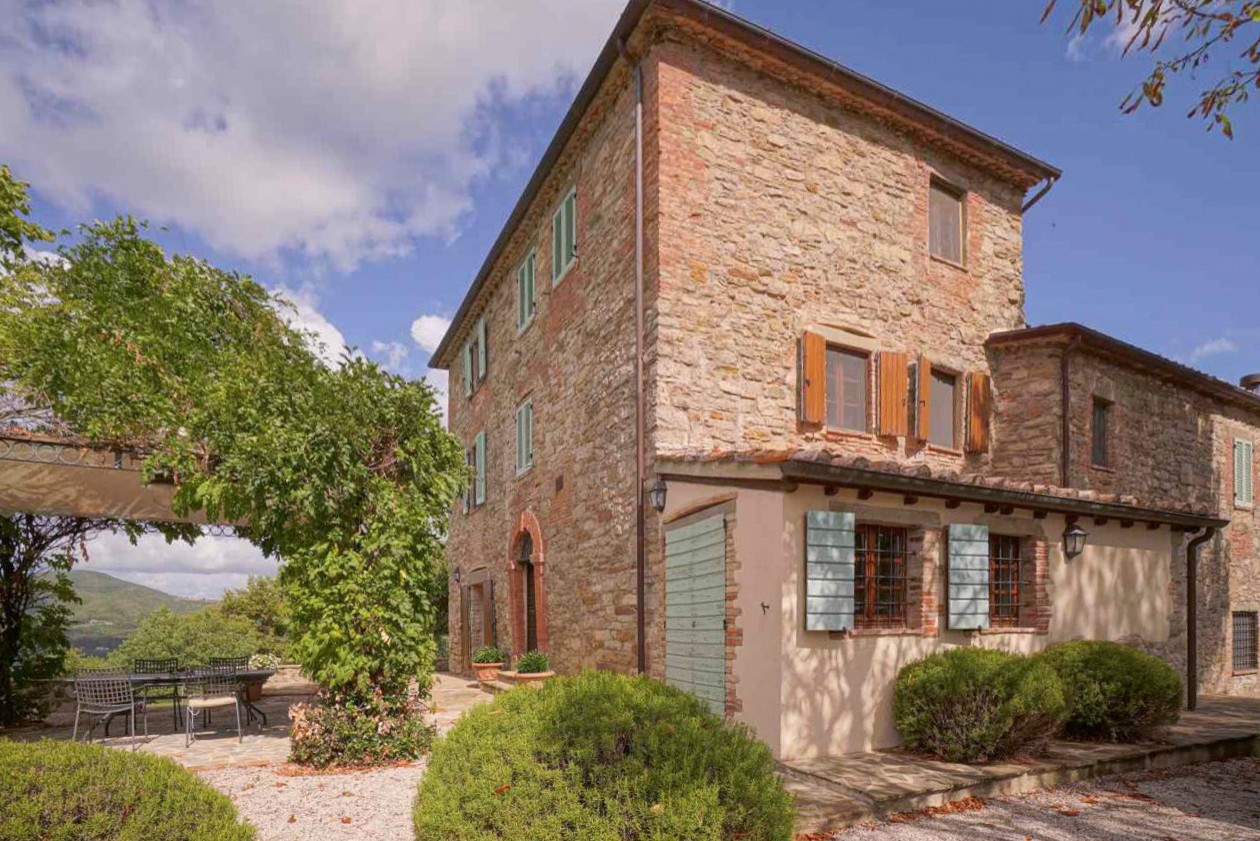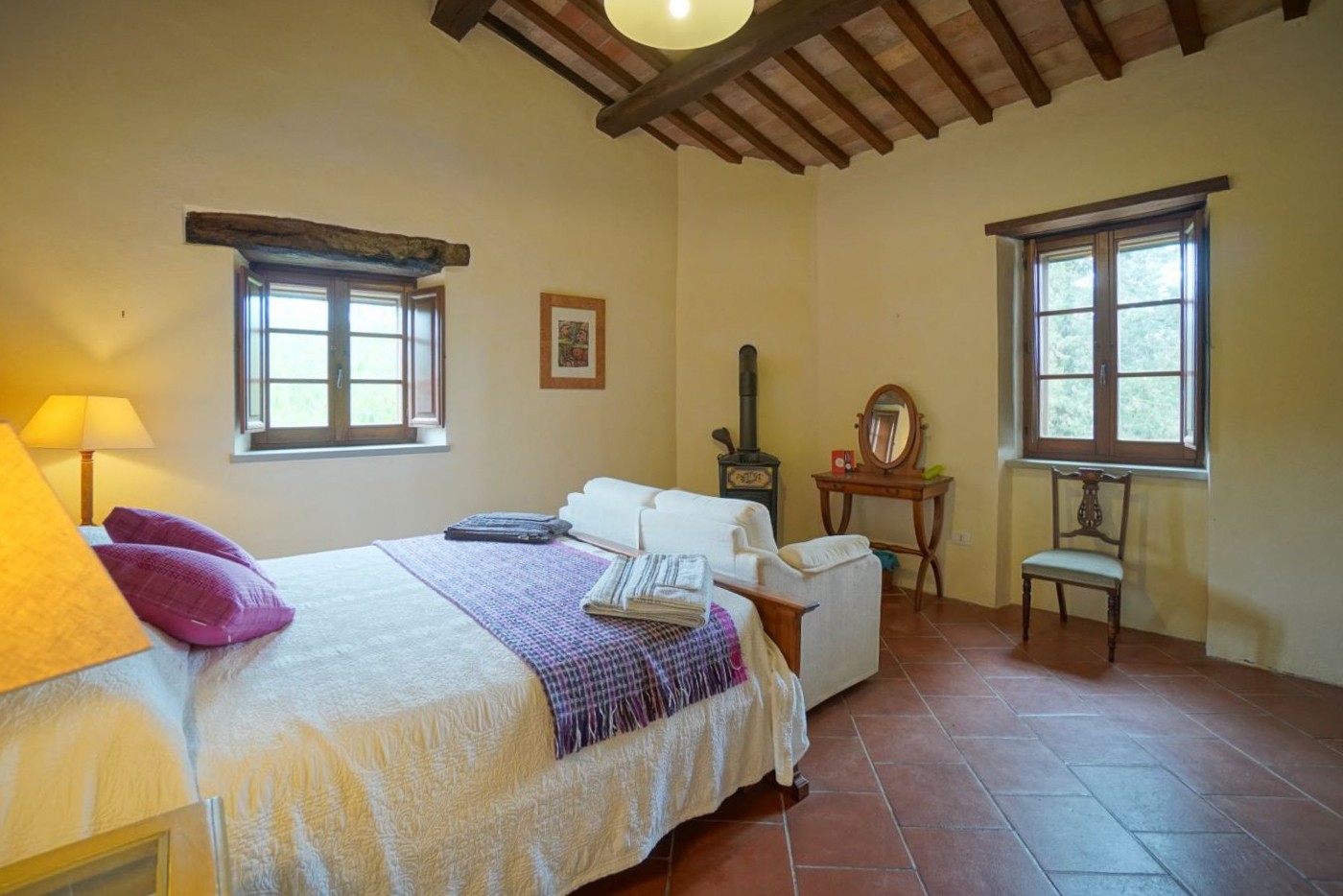 Vanuit de eetkamer is er toegang tot de achtertuin, waar een gebogen zwembad een prachtig panoramisch uitzicht biedt over de Niccone-vallei. De tegels rond het zwembad zijn vernieuwd en vergroot, waardoor er meer ruimte is om te ontspannen.