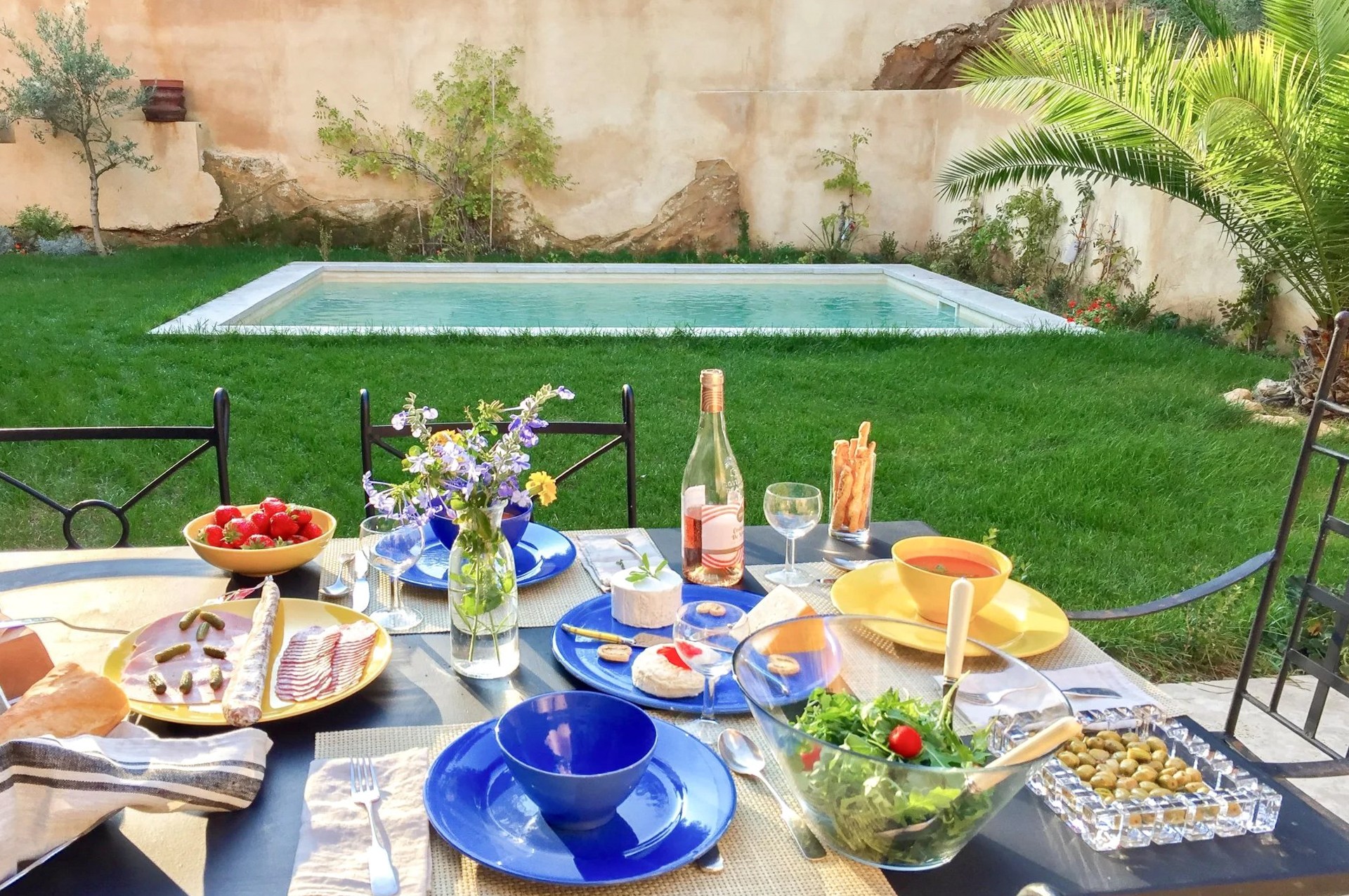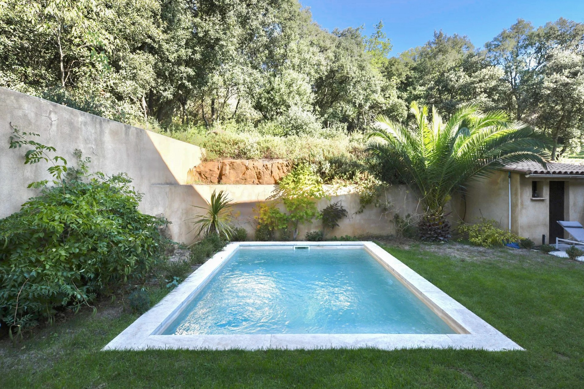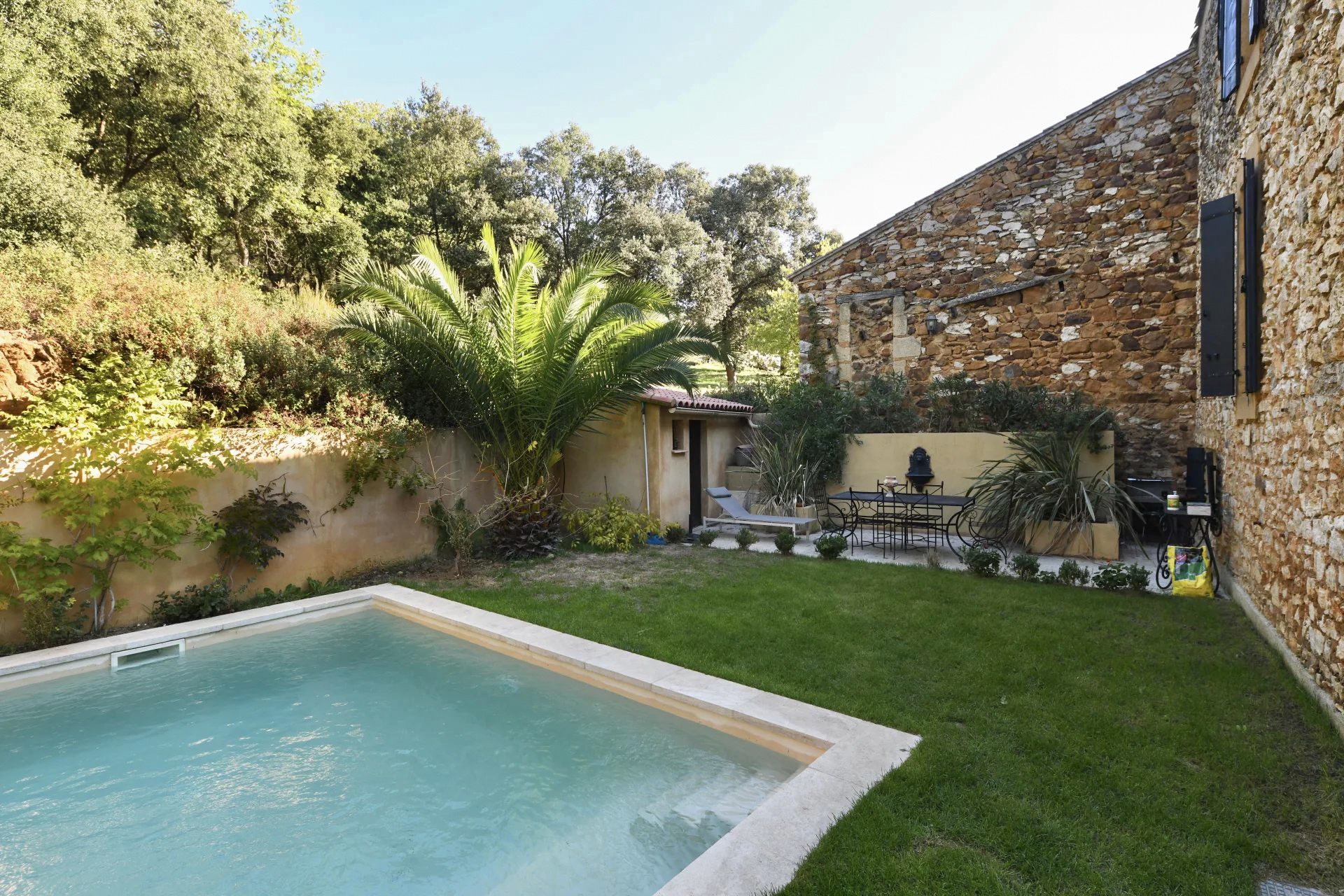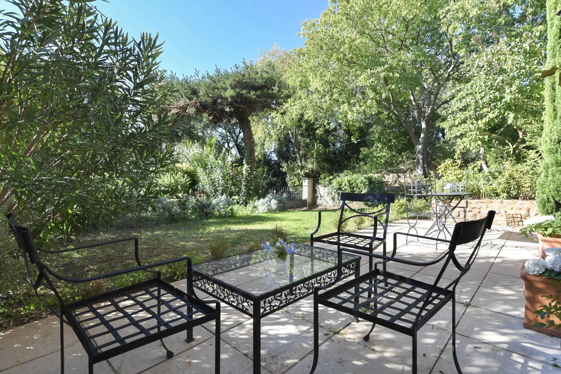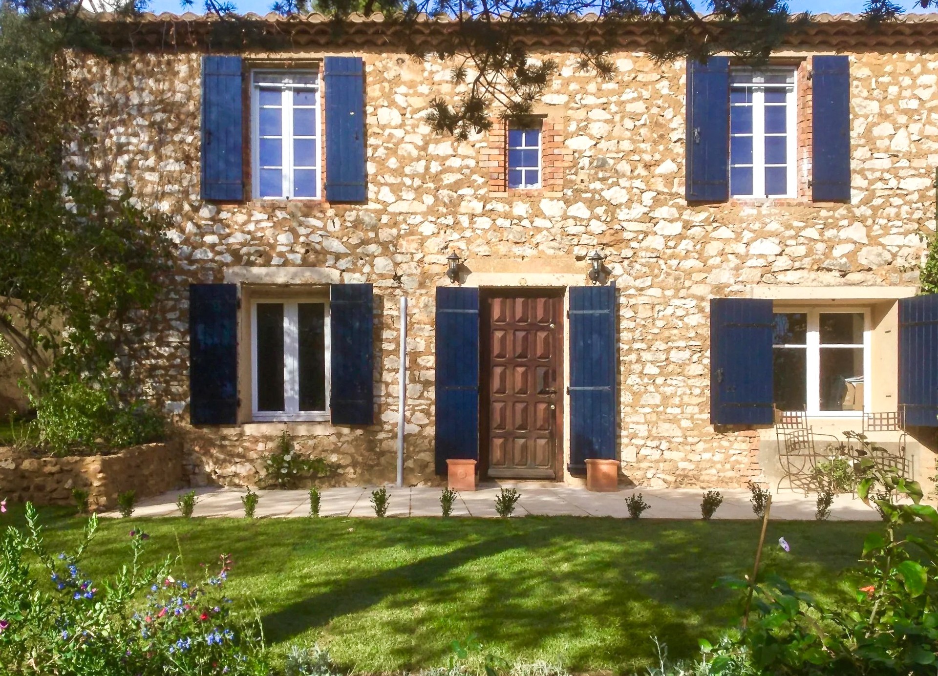 Bij aankomst via de tuin ervaart u direct de typische Provençaalse sfeer. De gevel van licht natuursteen, de harmonieuze verhoudingen van het huis en de mediterrane beplanting vormen een fraai geheel dat het karakter van de regio weerspiegelt.