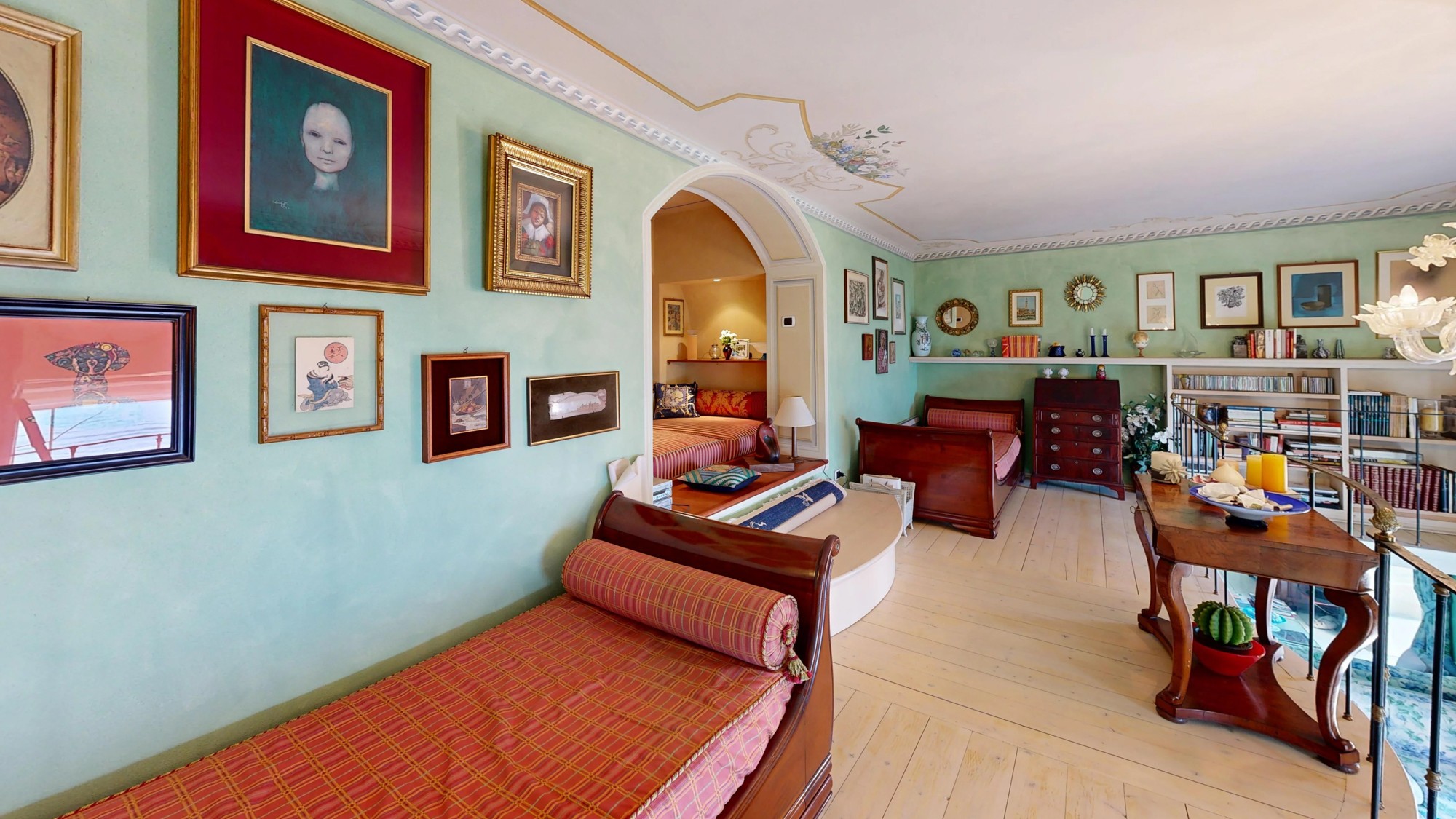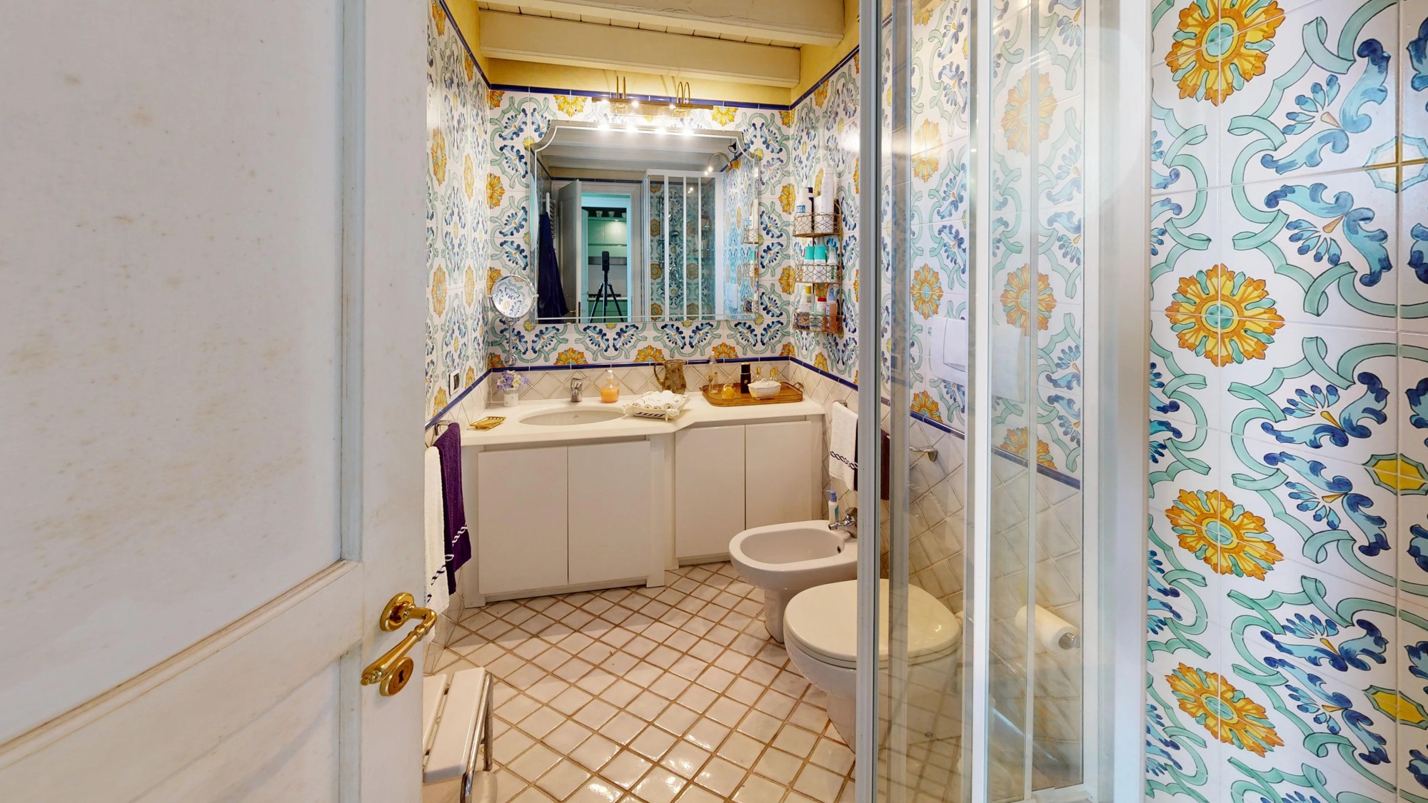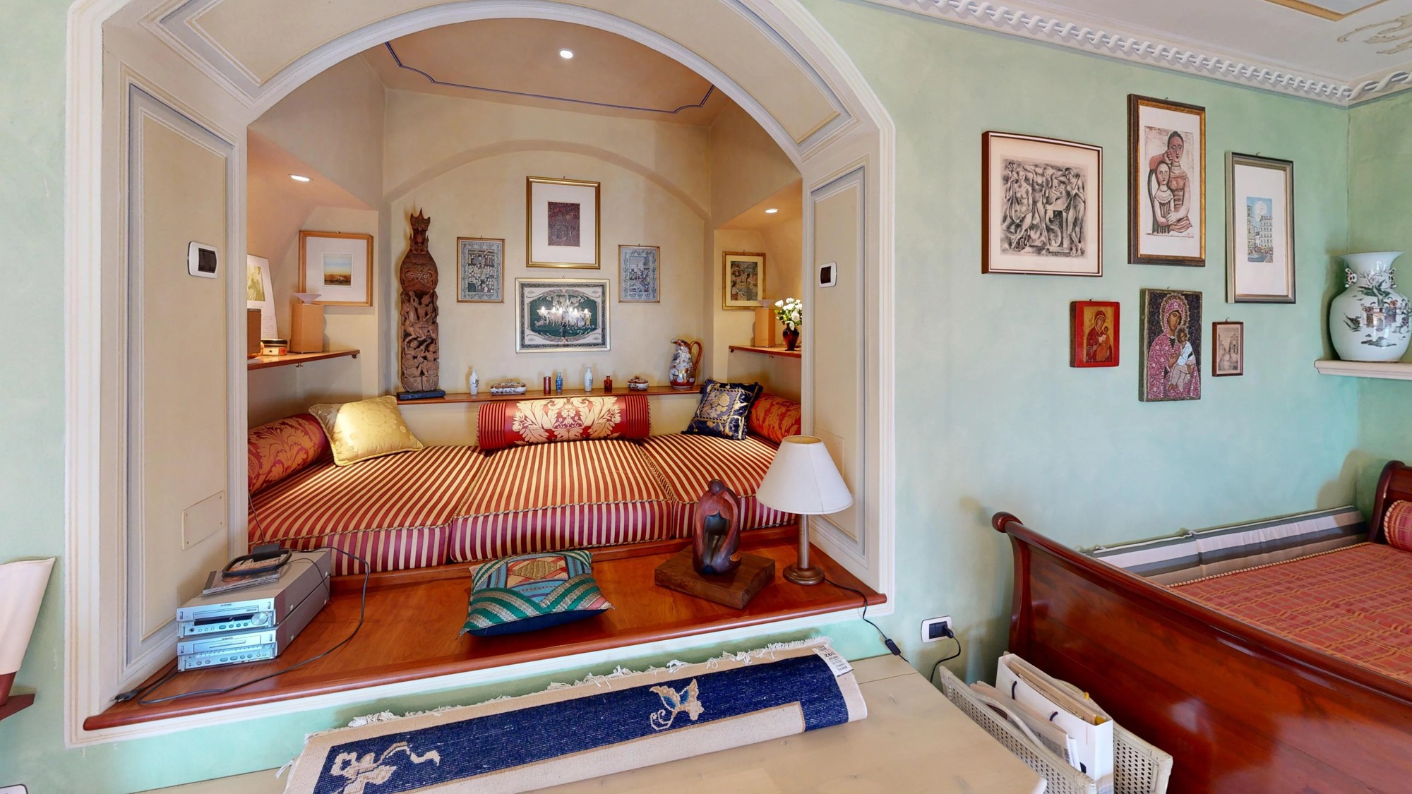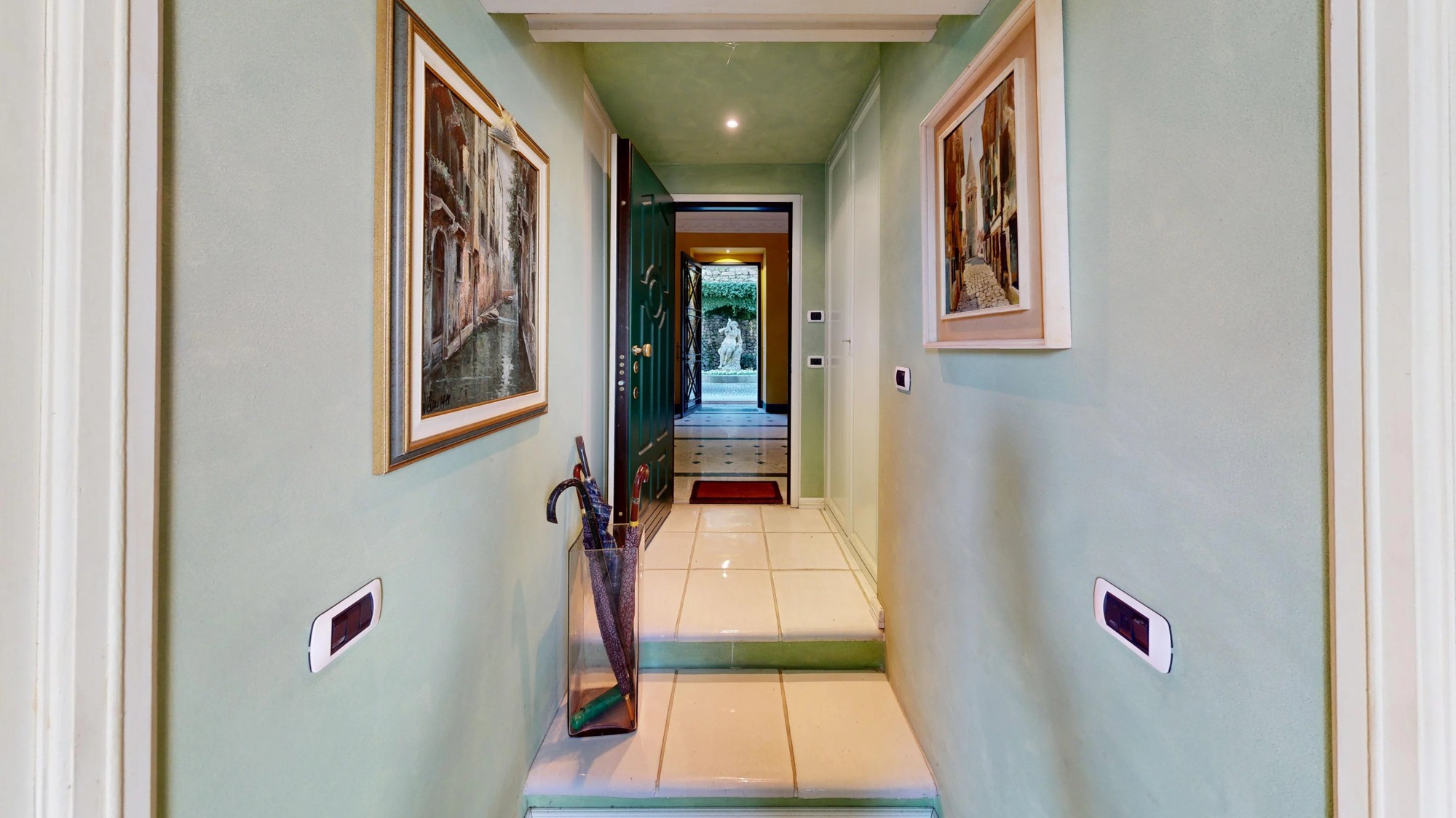 De woonruimte op de begane grond opent zich naar een groot terras met een prachtig uitzicht op het meer. Deze verdieping omvat ook een kitchenette en een badkamer met Vietri-tegels. Op de mezzanine bevindt zich de slaapruimte met een ingebouwd bed en een op maat gemaakte boekenkast. Pastelgekleurde fresco’s en Venetiaanse stucdecoraties kenmerken het interieur.