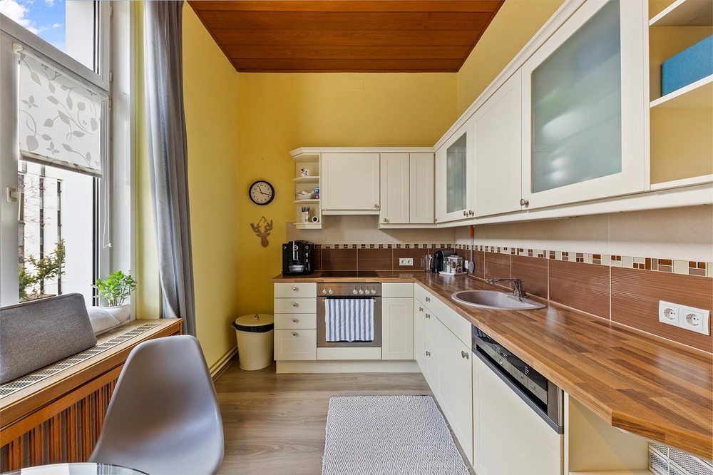 De zolder is deels ontwikkeld en biedt mogelijkheden voor individuele inrichting. De grote ramen en de verhoogde ligging bieden een spectaculair uitzicht op het Türkenschanzpark.