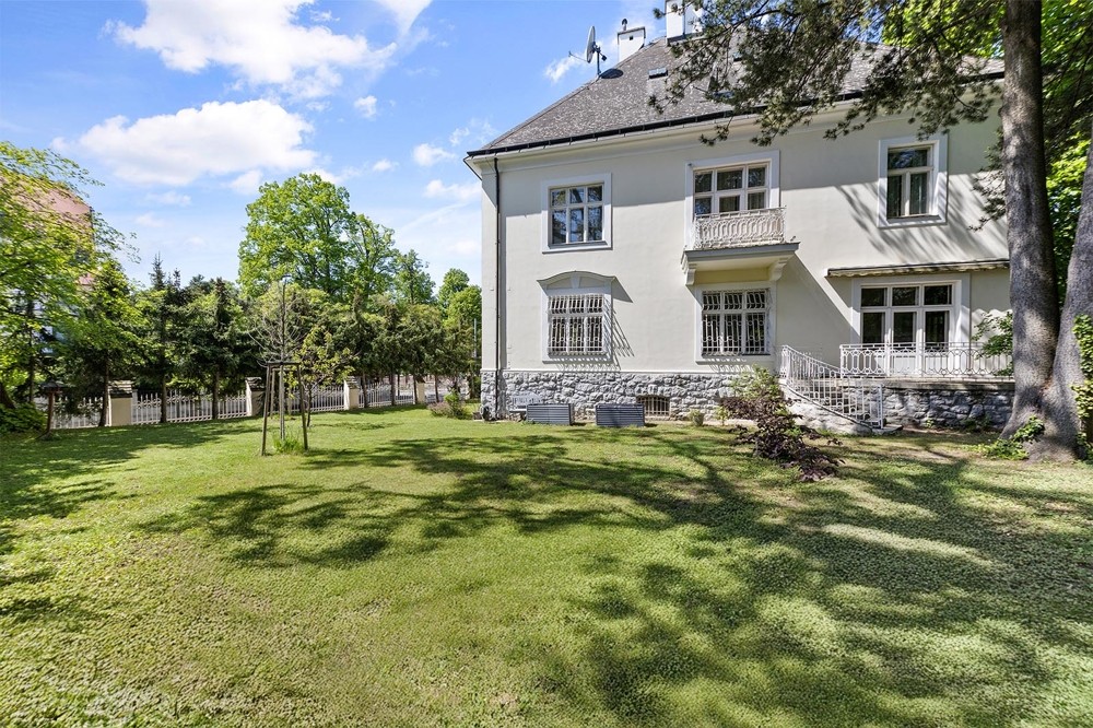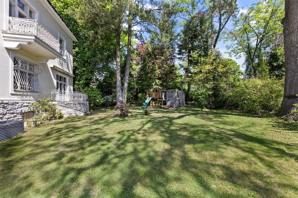 De tuin, parkachtig met volwassen bomen, biedt een rustige plek voor ontspanning. De royale buitenruimte is zeldzaam in Wenen. Verder beschikt de villa over een volledige kelder en een garage voor twee voertuigen.