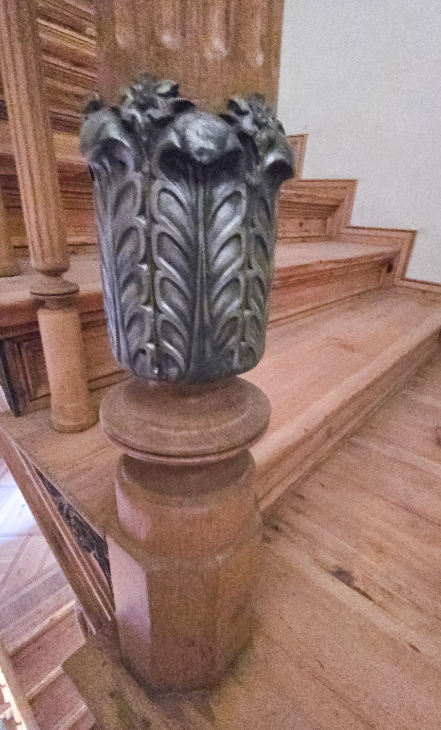 Binnenin vallen gereconstrueerde stucwerken, gesneden balustrades en originele houten vloeren op.