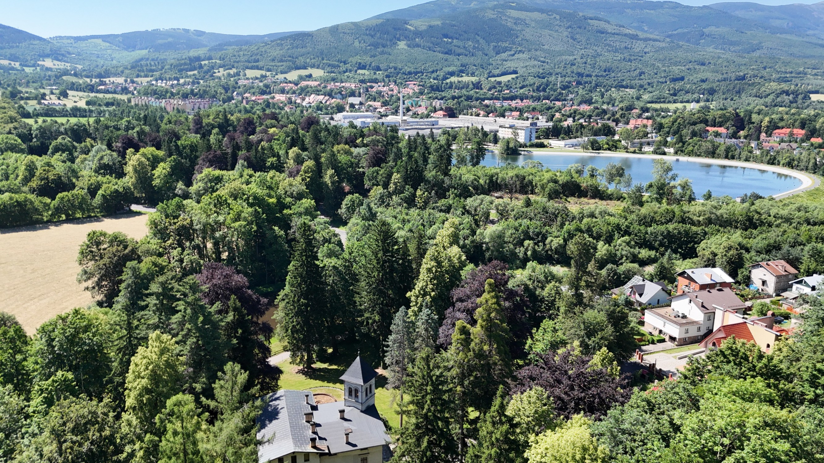 De uitkijktoren met uitzicht op het Reuzengebergte vormt een geschikte plek voor een werkkamer of klein atelier.