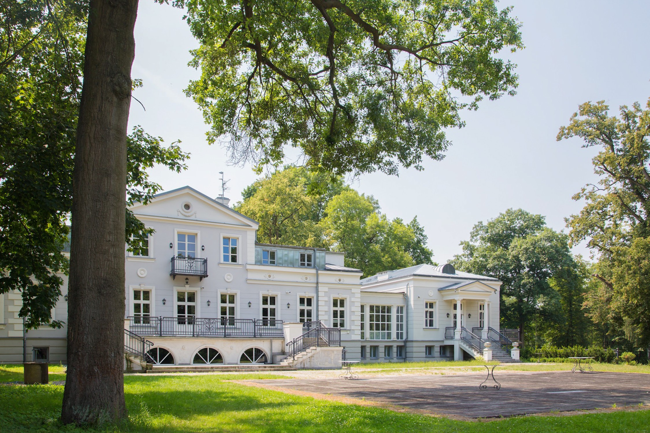 Landhuis uit de late 19e eeuw met een gebruiksoppervlakte van ca. 1.200 m² in een beschermde parkzone met oude bomen (ca. 7 ha) en een nieuw gebouw in industriële stijl (ca. 2.500 m²) dat momenteel wordt afgewerkt. Het landgoed is opgenomen in het monumentenregister van het woiwodschap Mazovië en ligt in een rustige omgeving ten zuidwesten van Warschau. Voorgestelde gebruiksmogelijkheden zijn onder meer een hotel, appartementencomplex, kliniek of revalidatiecentrum.