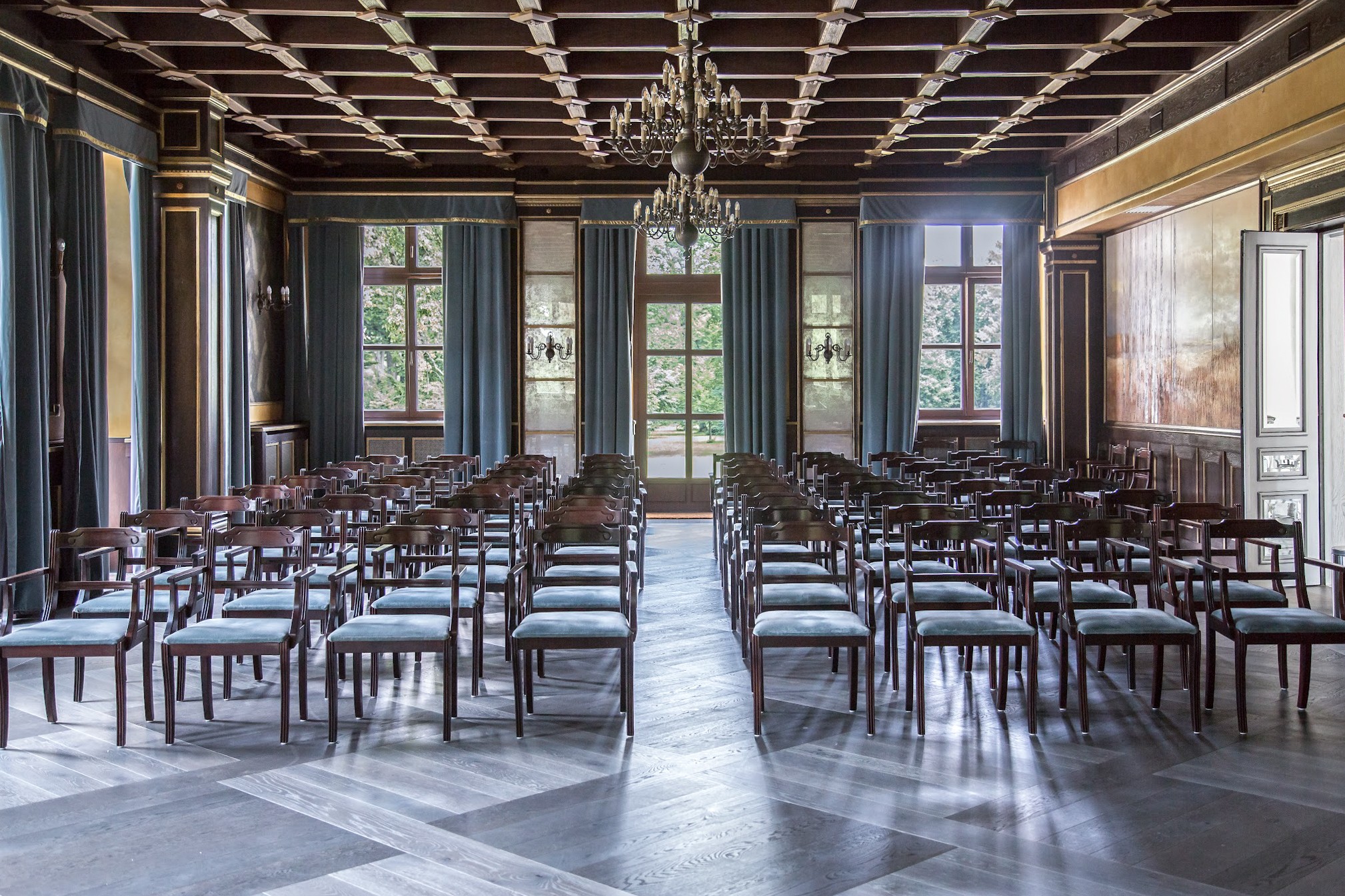 De concertzaal van ca. 136 m² is uitgerust met een vast audiosysteem.