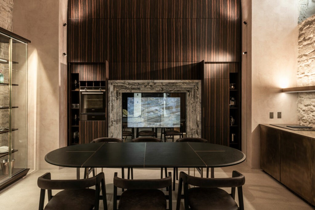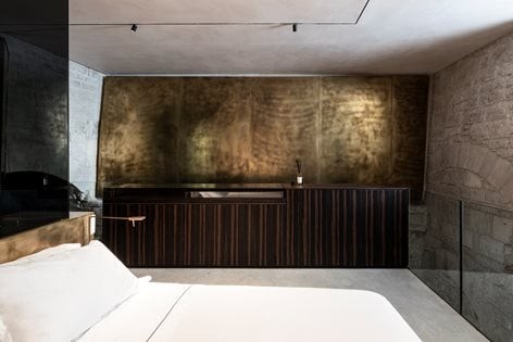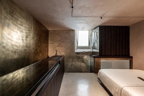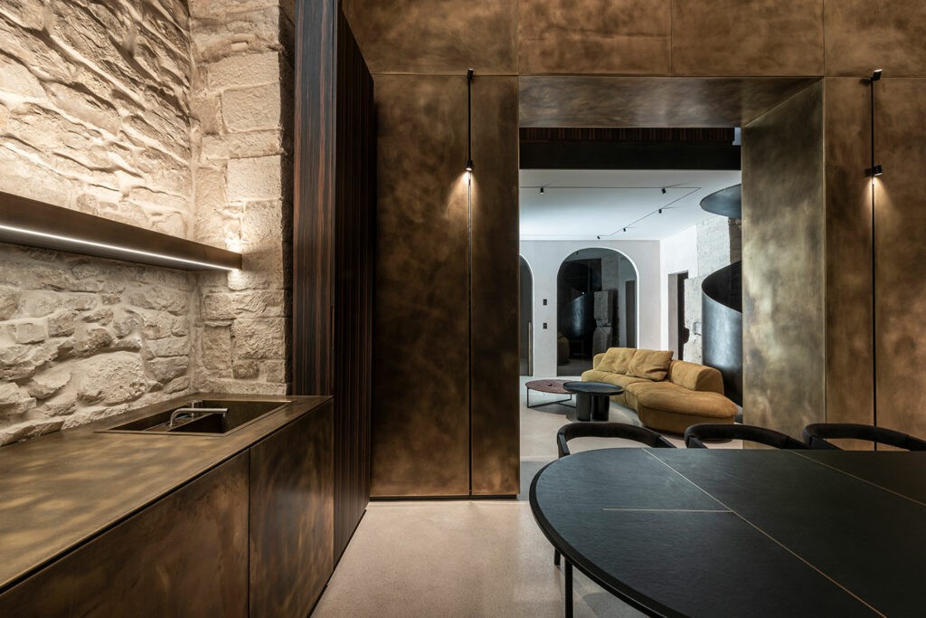 De benedenverdieping (ongeveer 70 m²) is één indrukwekkende ruimte met een maximale hoogte van 8 meter. De wanden zijn met de hand ontdaan van lagen, waardoor de oorspronkelijke steen en tuf zichtbaar zijn geworden: puur, authentiek en vol karakter. Boven de ruimte hangt een mezzanine van circa 30 m², flexibel in te richten als slaapgedeelte, werkplek of intieme lounge. De blikvanger die alles verbindt is de spiraaltrap in delabré staal — een sculpturaal element dat perfect past bij de sfeer van het geheel.