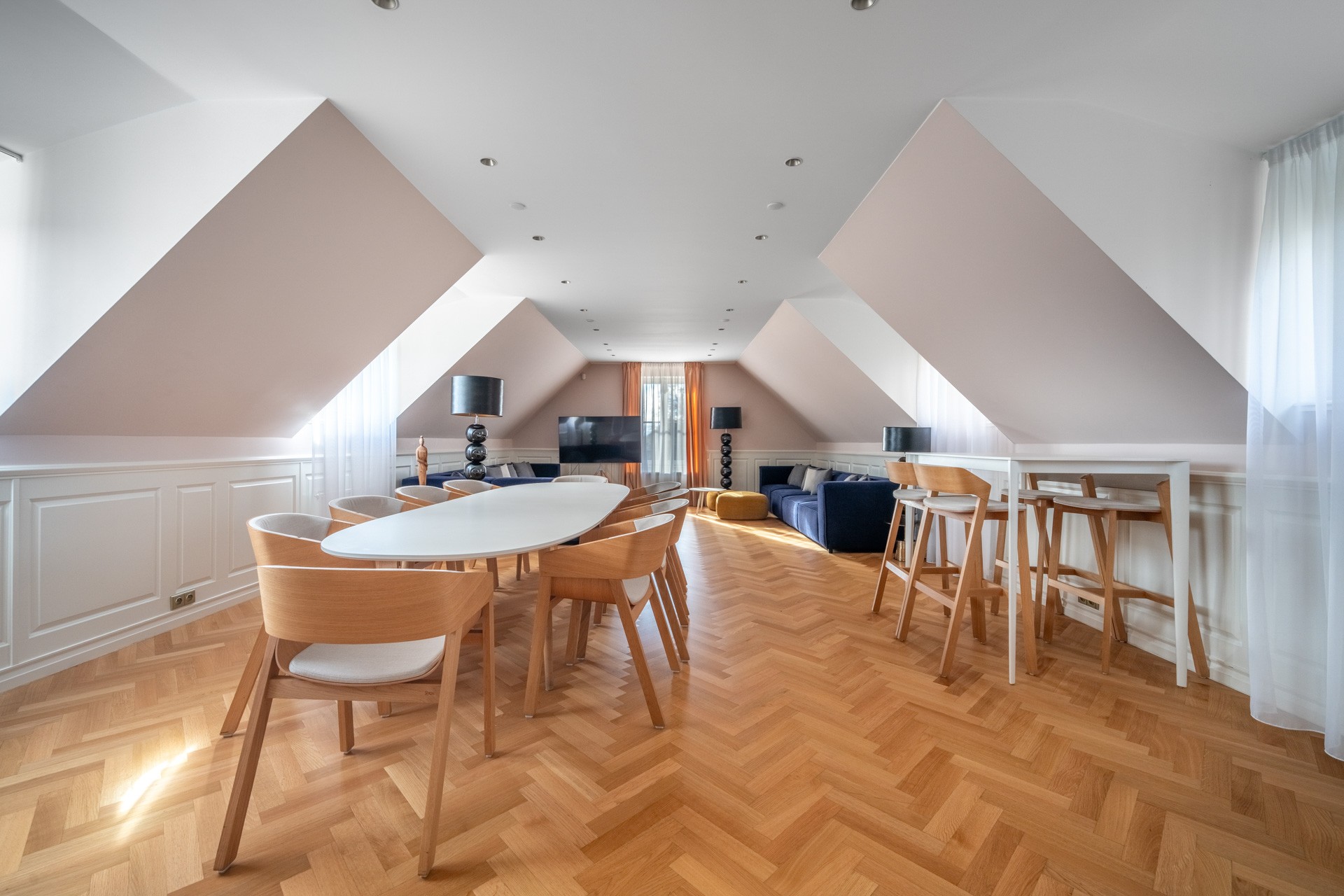 Het gebouw is volledig gerenoveerd in 2007 en in 2021 werd een aanvullende renovatie van alle ruimtes en de gevel uitgevoerd. Het verwarmingssysteem is gebaseerd op lucht-water warmtepompen; er zijn ook elektrische noodketels beschikbaar. Duurzame materialen zijn gebruikt, waaronder eiken parket, keramische tegels, bakstenen vloeren en massieve houten balken. Sanitair van Bath Deluxe, op maat gemaakte verlichting en meubels van TON en BoConcept zijn aanwezig. Drie koel- en vriesunits en hoogwaardige keukenapparatuur van Redfox en Electrolux zijn geïnstalleerd. Het jachtslot is aangesloten op een camerasysteem.