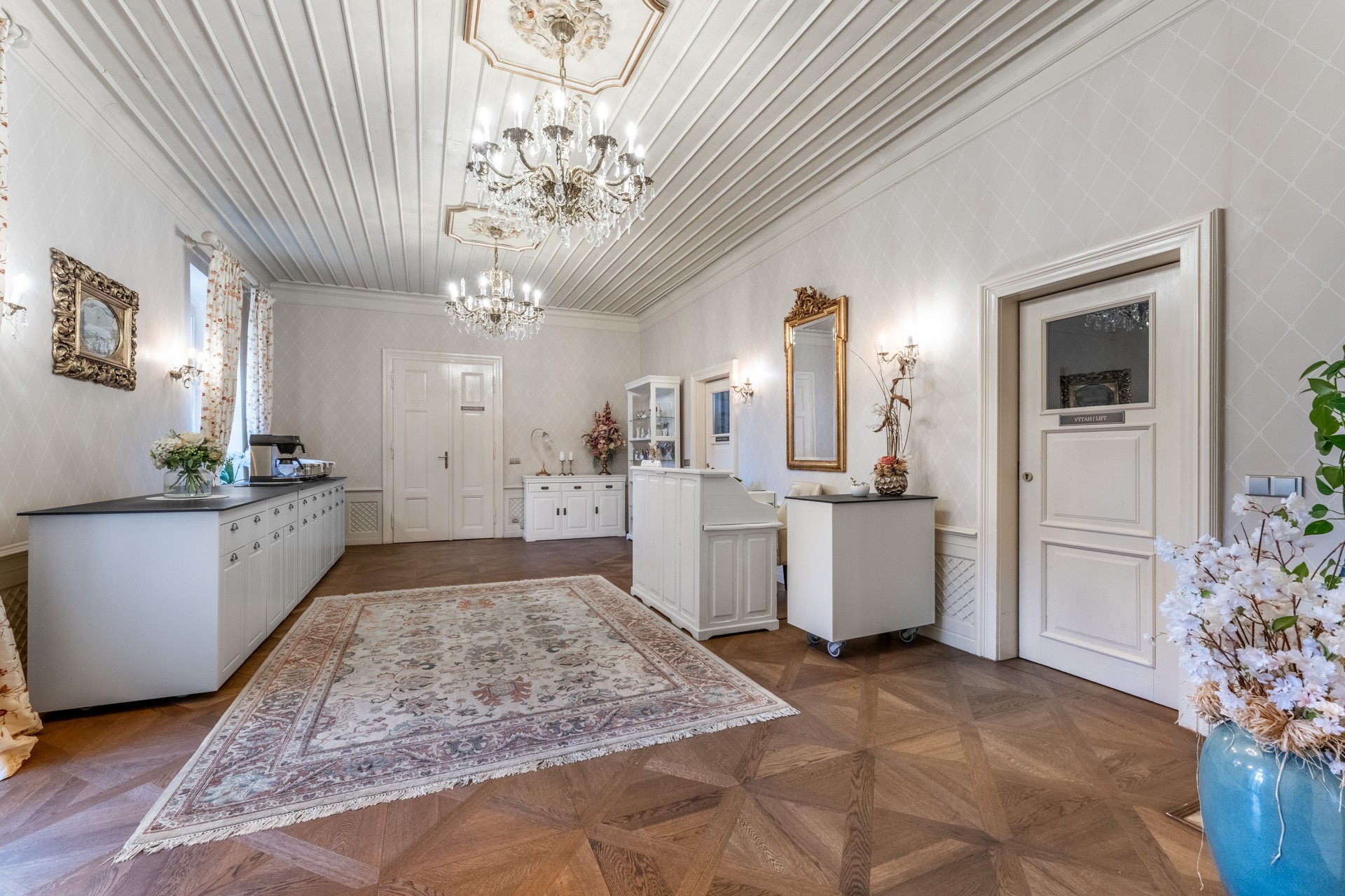 Het jachtslot ligt aan de rand van Trnová, op enkele minuten van Praag. De locatie combineert landelijke rust met een gemakkelijke toegang tot de stad.