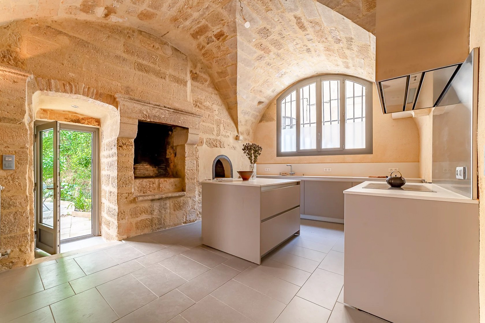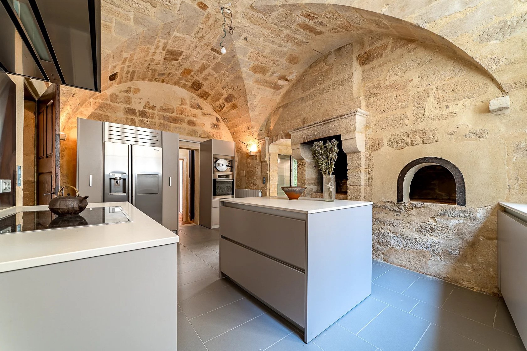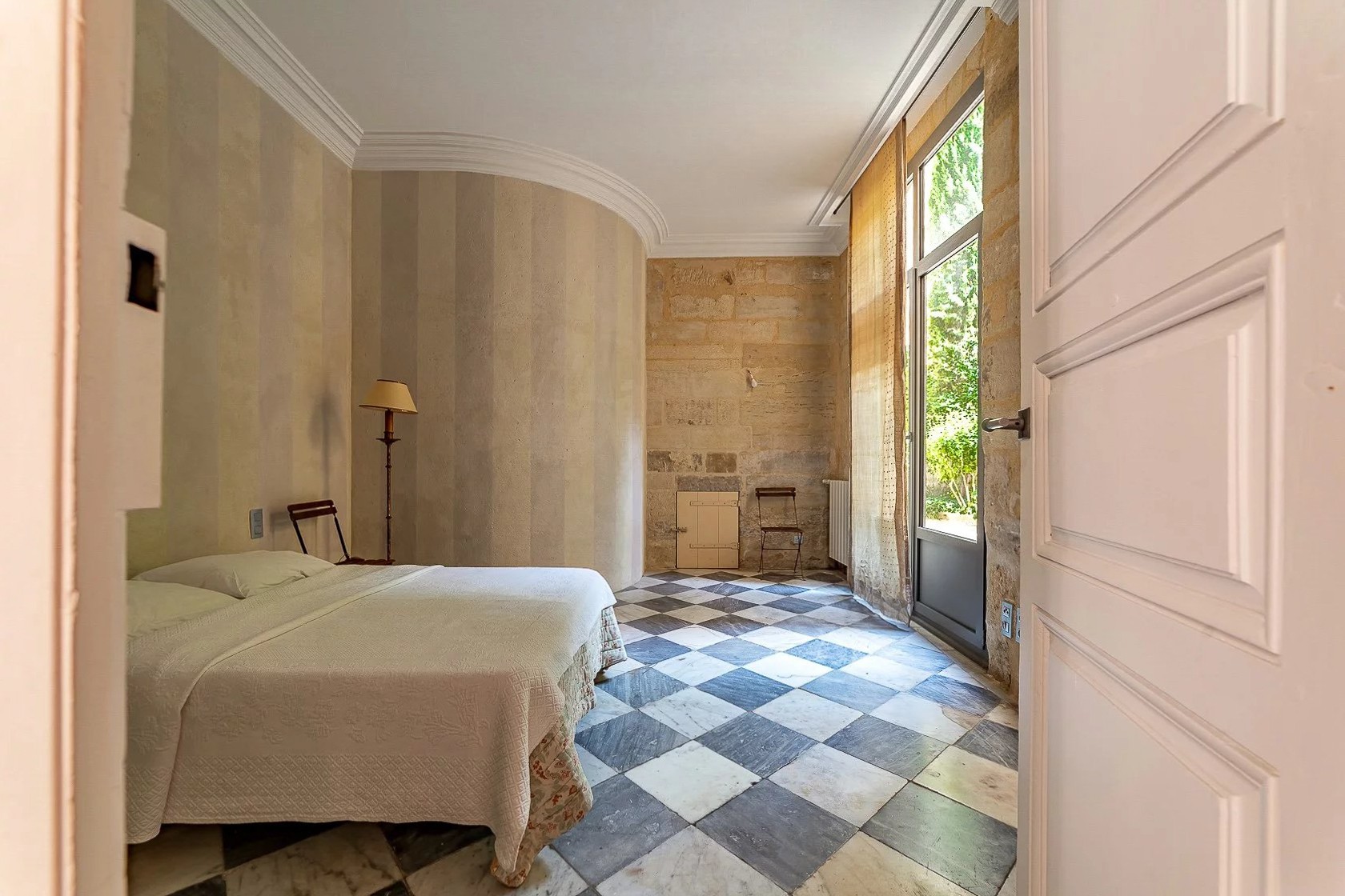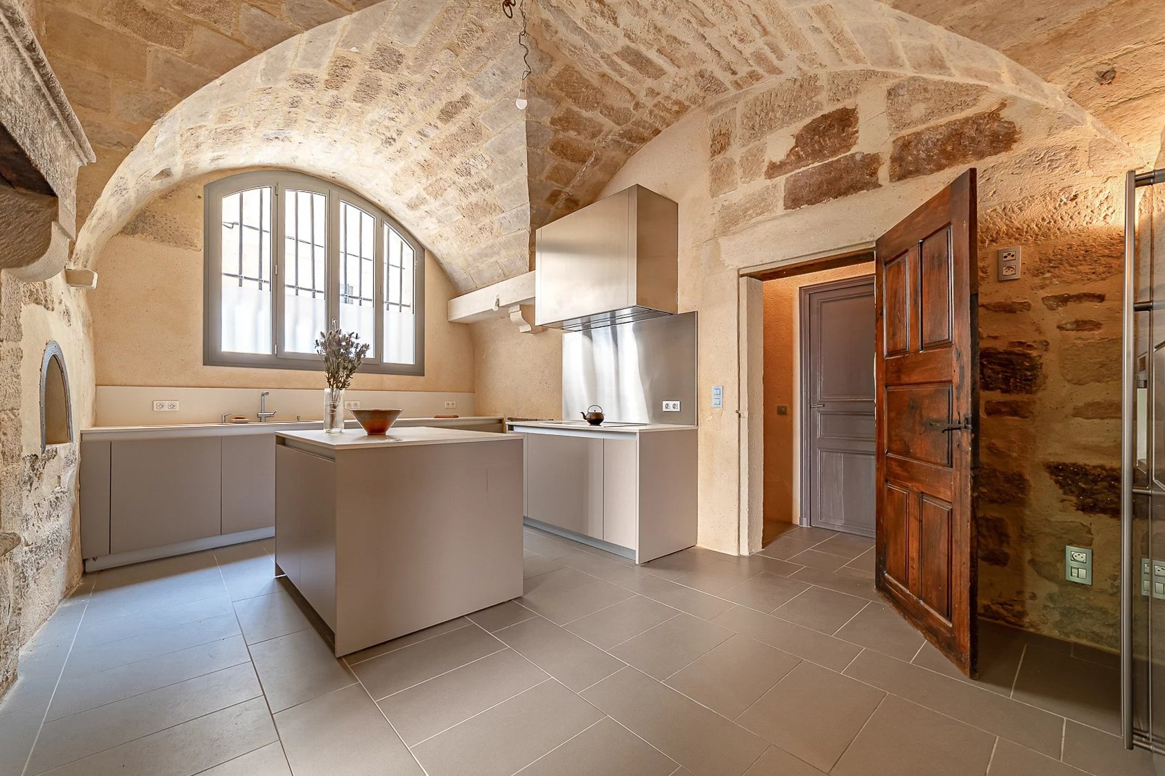 Het appartement heeft een eigen ingang. De woonkamer van 64 m² opent direct naar de tuin. De gewelfde keuken in Avignon-stijl beschikt over een eetgedeelte met stenen open haard en broodoven, eveneens met toegang tot de tuin.