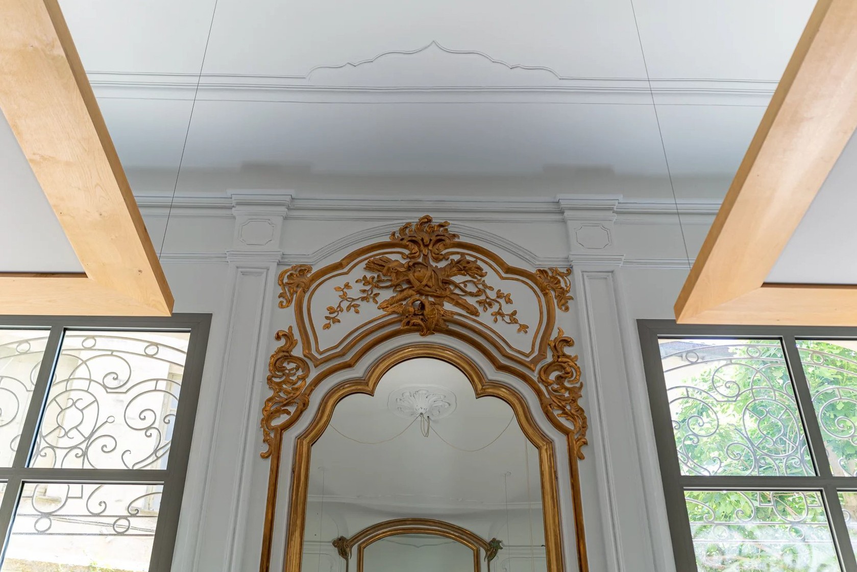 Groot trappenhuis Open haard Hoge plafonds Stucdecoratie Gewelfde plafonds
