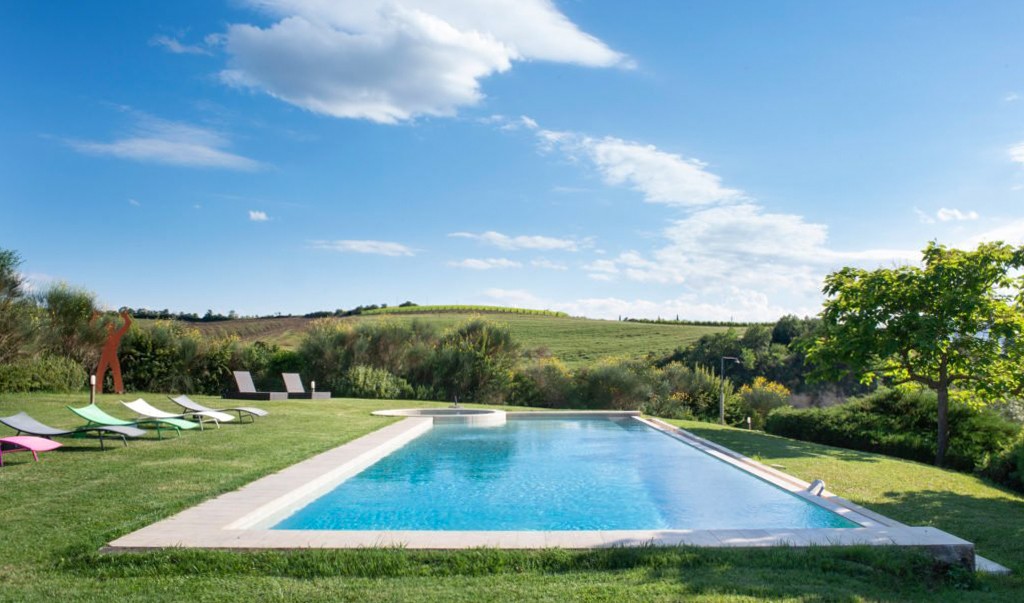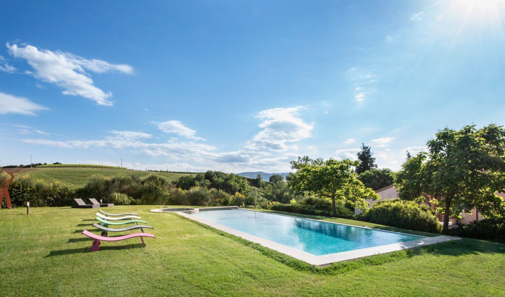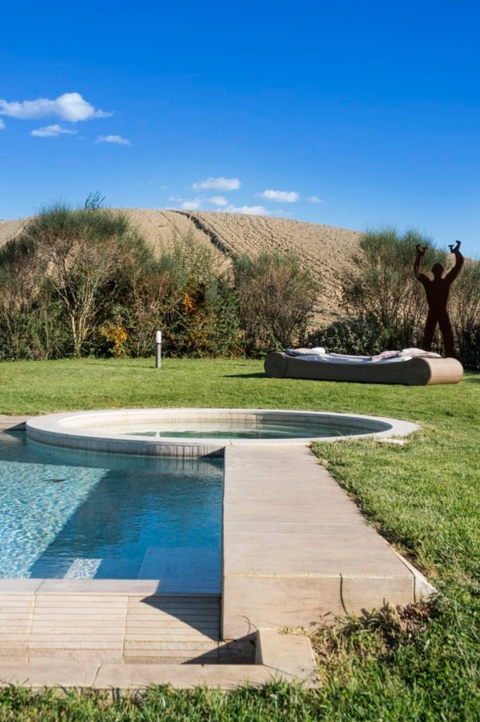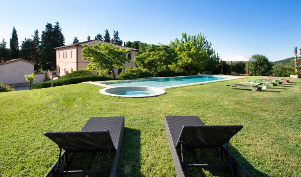 De villa is omgeven door een fraai aangelegde tuin van ongeveer 6.000 m² met een panoramisch zwembad met hydromassage. Veranda en loggia bieden sfeervolle plekken voor diners in de buitenlucht en ontspannen momenten in alle rust.