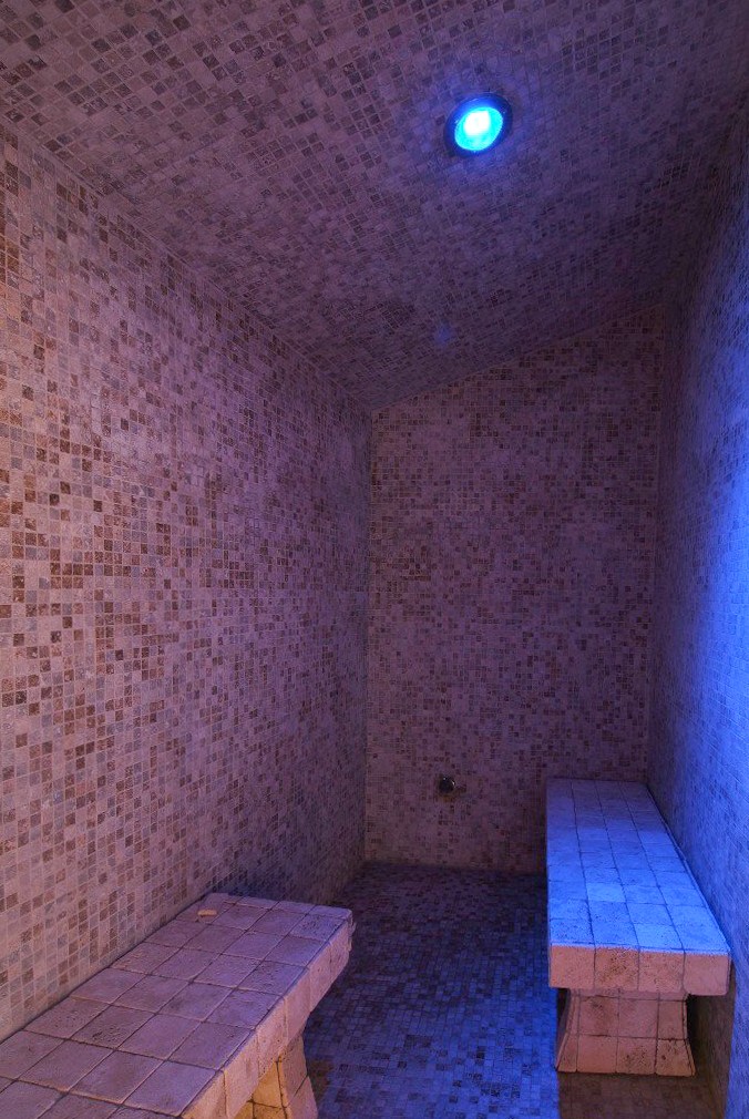 Het circa 100 m² grote bijgebouw aan de binnenplaats wordt momenteel gebruikt als fitness- en wellnessruimte, met grote raampartijen, een eigen badkamer en een Turks stoombad – een plek voor rust en ontspanning in een natuurlijke omgeving.