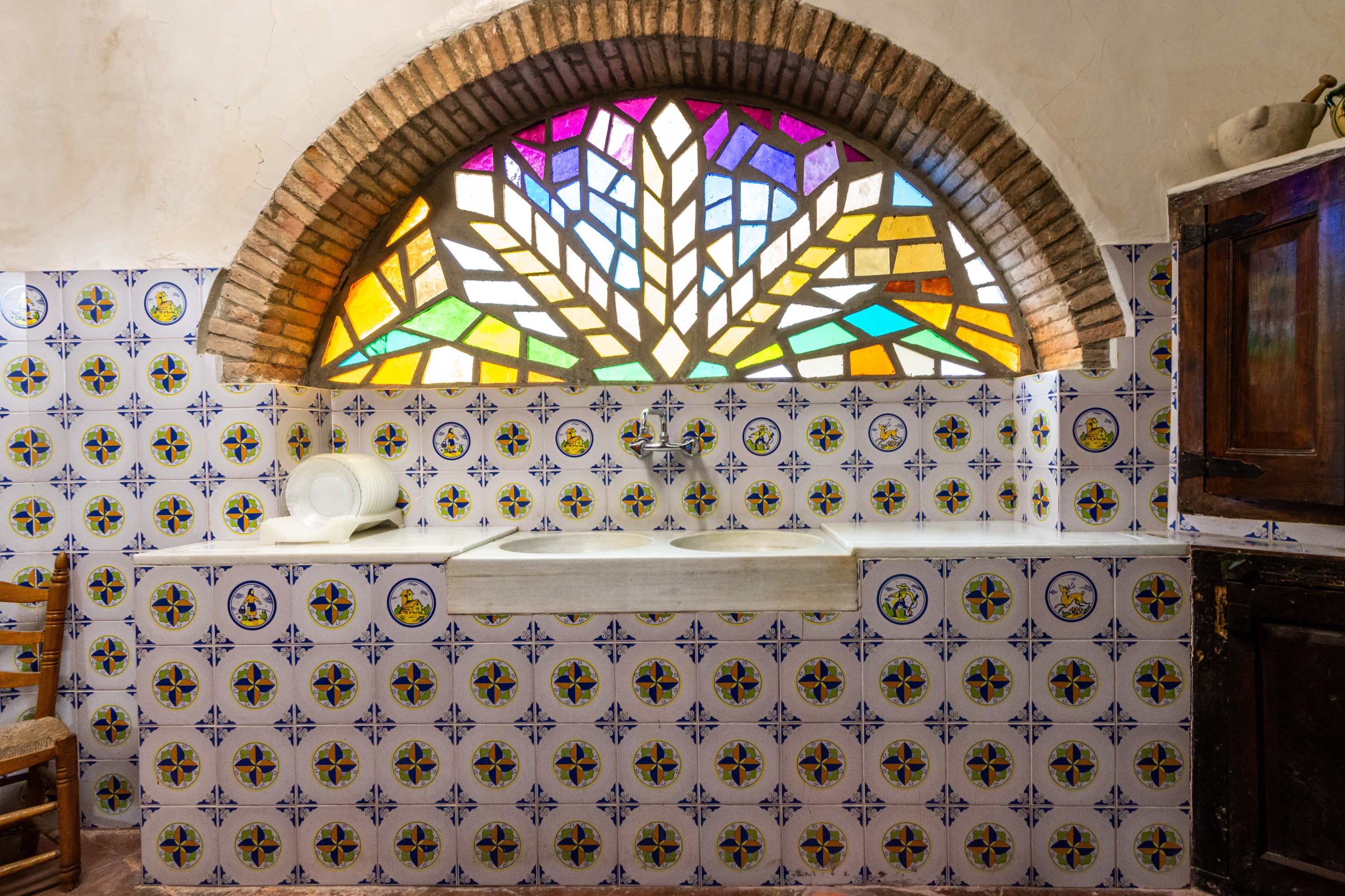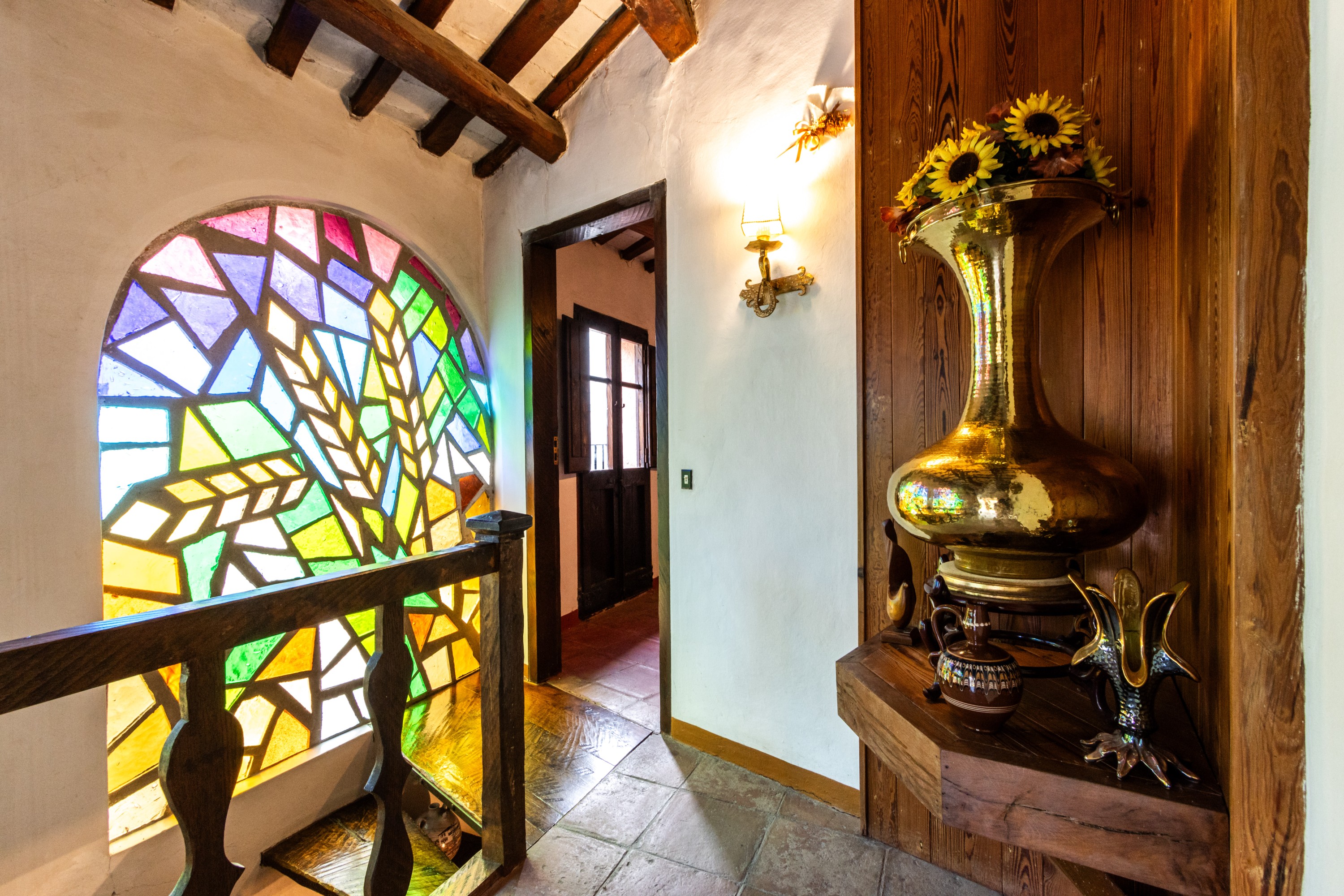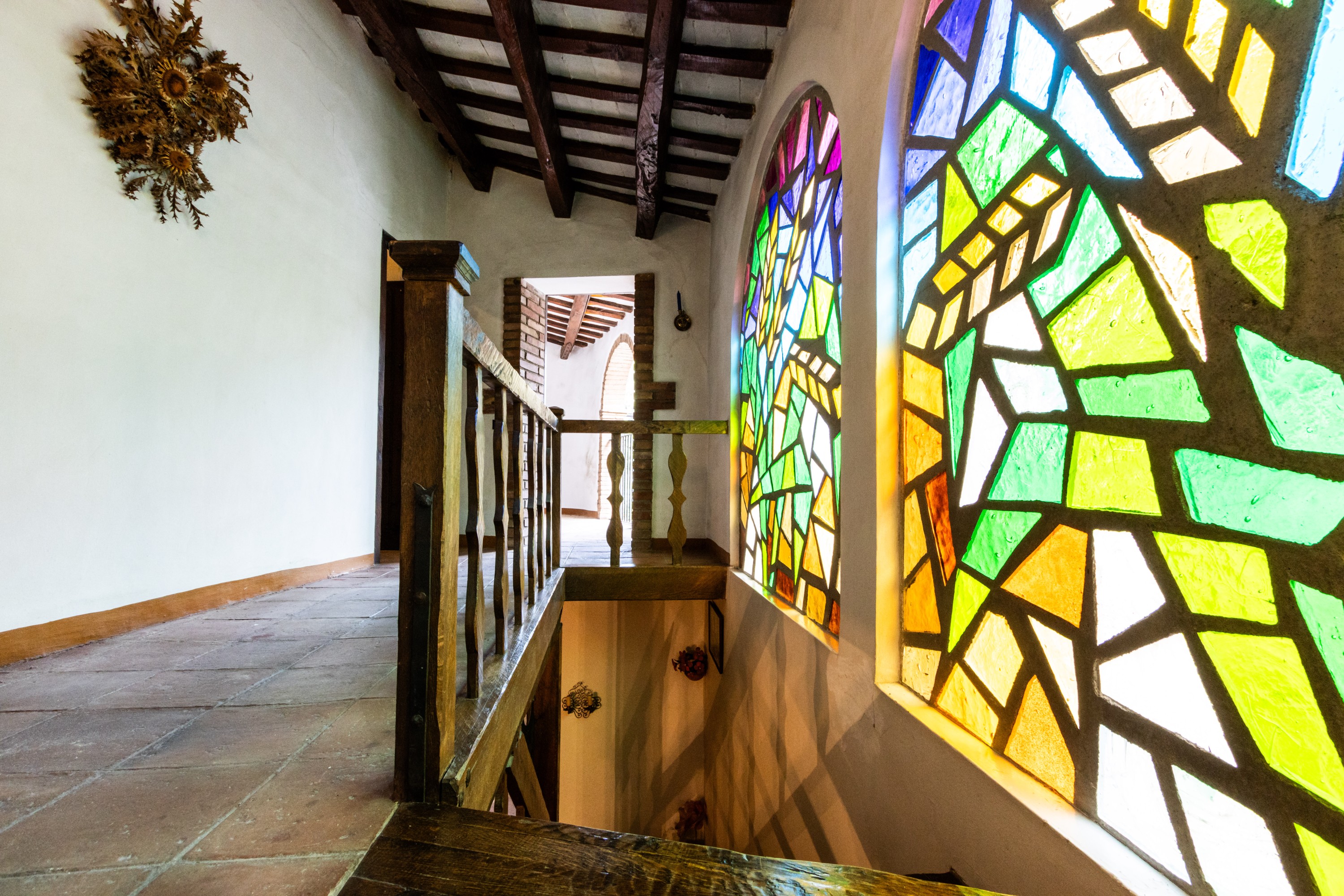 De ramen van de woning zijn voorzien van gekleurd glas-in-lood, dat overdag kleurrijke lichteffecten in het interieur werpt en ’s avonds voor een bijzonder sfeervolle ambiance zorgt. De markante architectuur heeft reeds meerdere kunstenaars geïnspireerd om het huis, bekend als “La Facina”, vast te leggen in olieverfschilderijen.