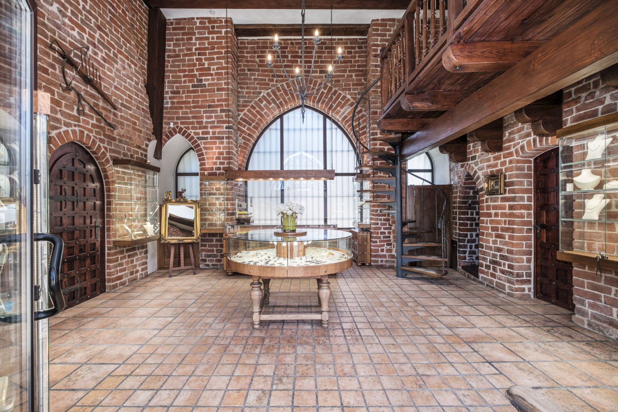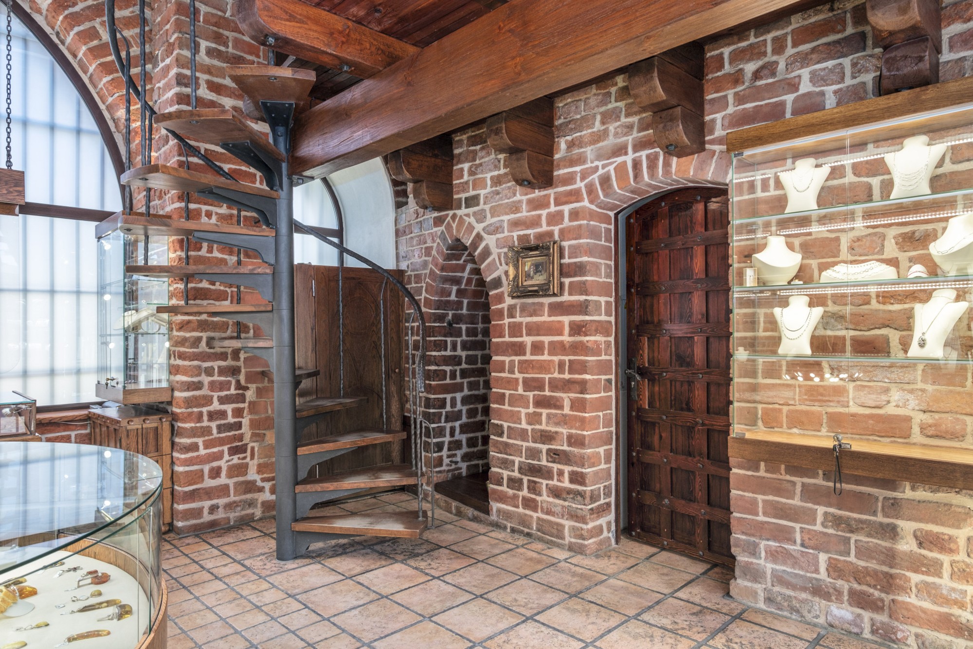 Op de begane grond bevinden zich momenteel commerciële ruimtes, waaronder een moderne kunstgalerie. De perceeloppervlakte is 96 m². De wanddikte varieert van 60 cm op de bovenste verdieping tot 1,65 m op de begane grond.