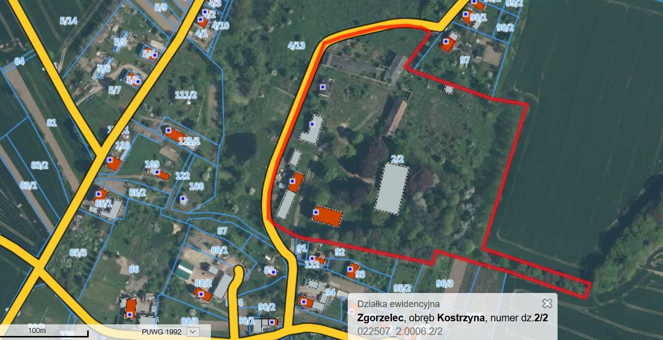 Het landgoed in Kostrzyna, gelegen in het westen van Polen nabij de Duitse grens, vormt een historisch geheel bestaande uit een landhuis ("pałac"), bedrijfsgebouwen en een park van 4,6 hectare. Een circa 150 jaar oude lindelaan verbindt het landgoed met het aangrenzende boscomplex; oude treurbeuken en een rode eik domineren de bomenstand.