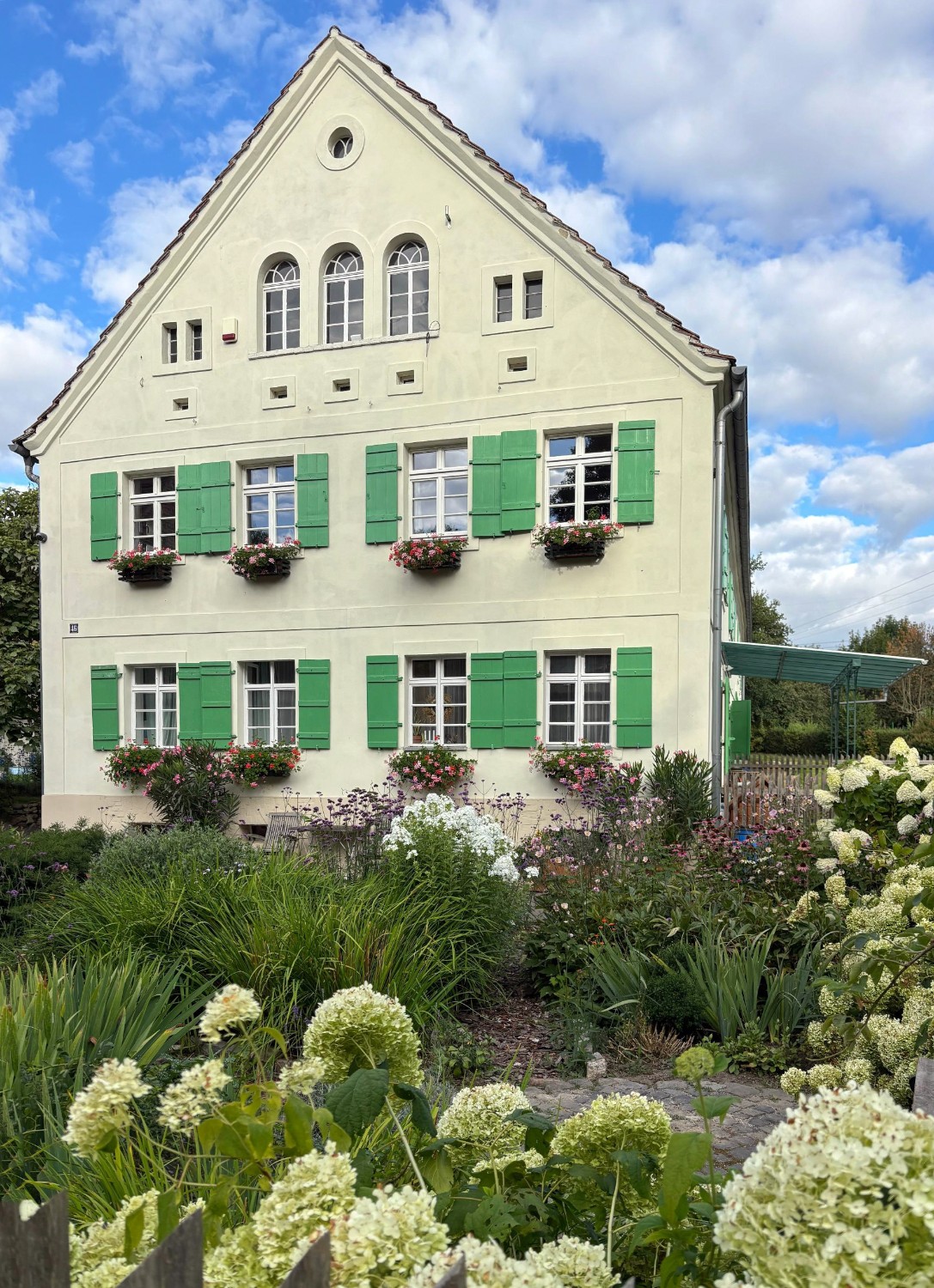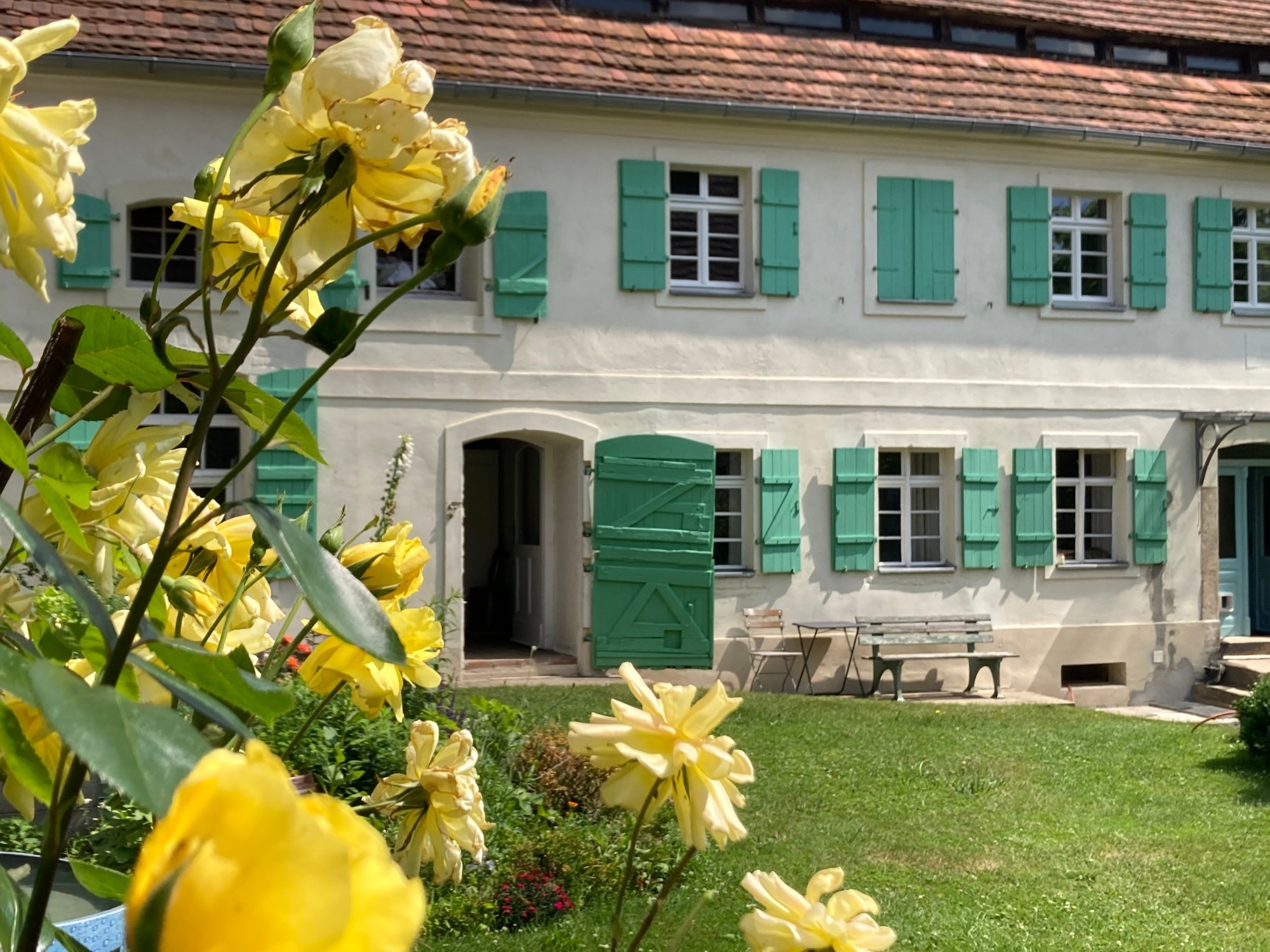 Dette landhuset ligger bare noen få kilometer fra Görlitz. Bygningene er organisert rundt en lukket gårdsplass som danner et sammenhengende anlegg med boligarealer, arbeidsrom og mulighet for videre utvidelse. Beliggenheten er rolig og landlig, samtidig som den har god internasjonal tilgjengelighet, noe som gjør det enkelt å kombinere hverdagsliv med profesjonell eller kunstnerisk virksomhet.