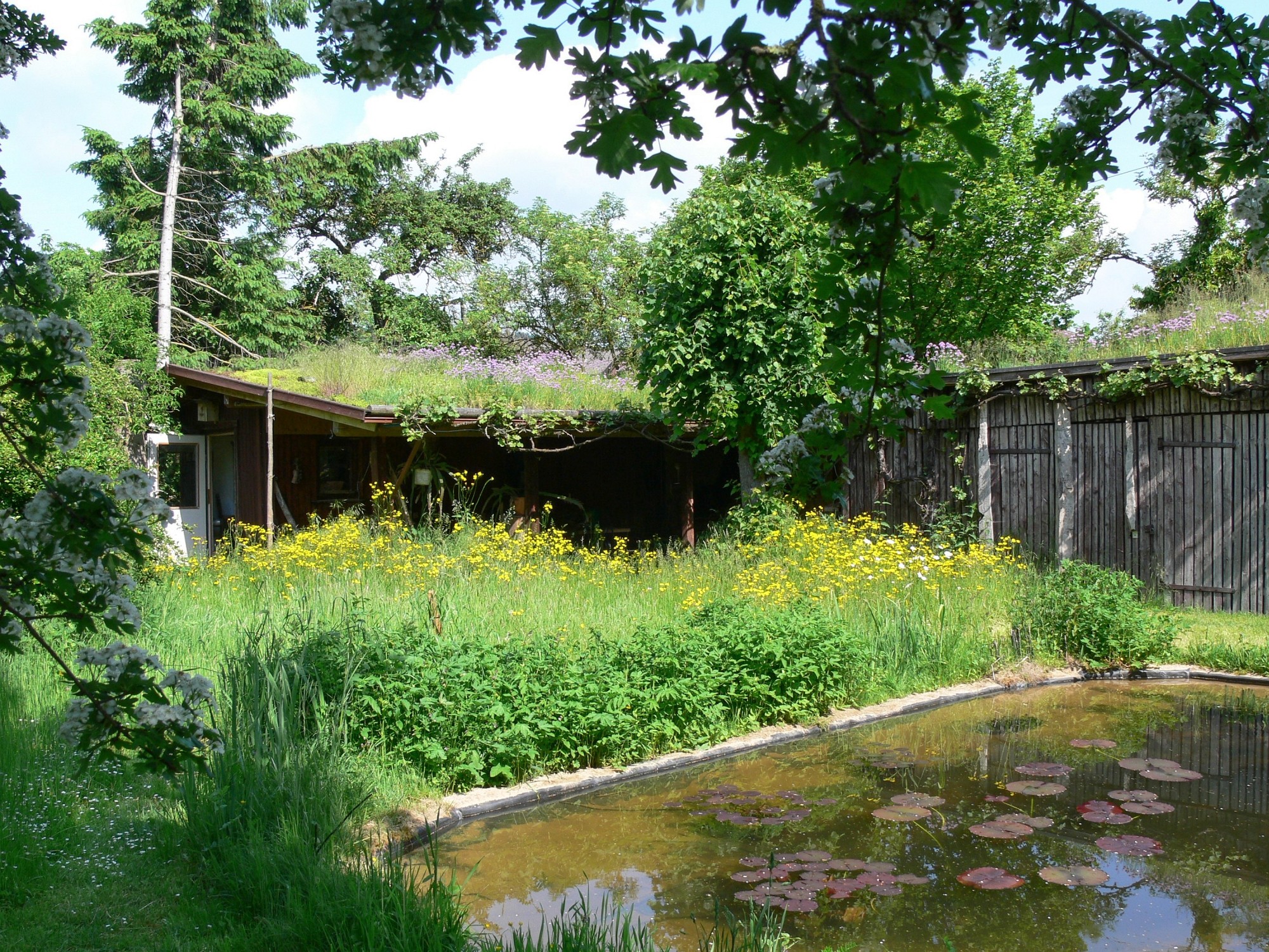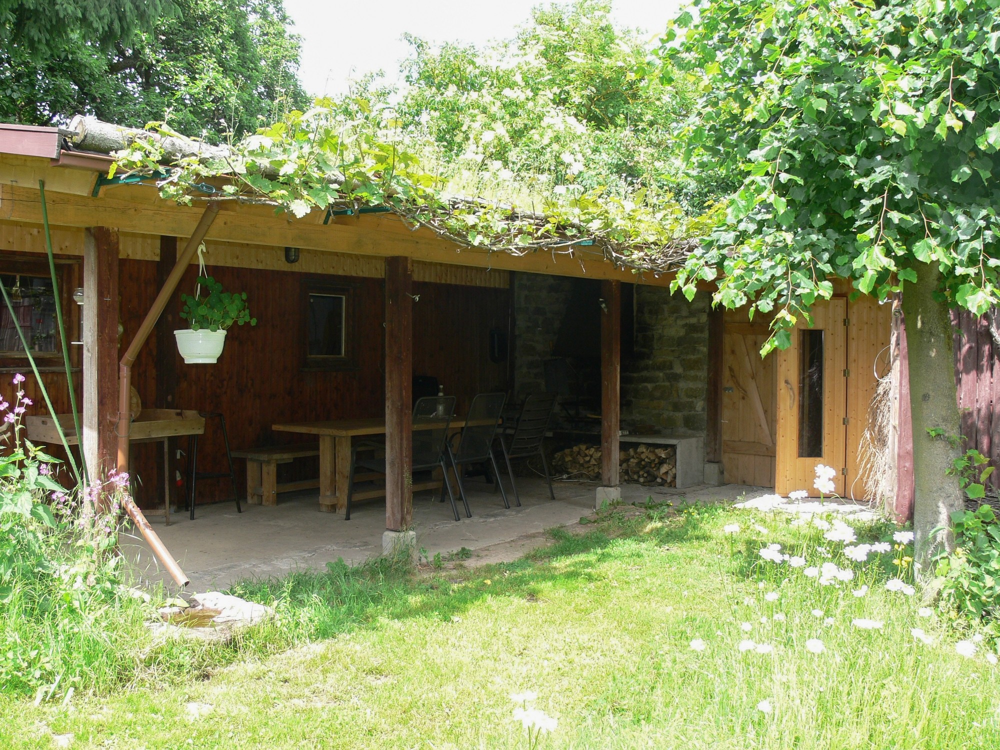 Buiten nodigt een met glas overdekt terras op het zuiden, bekleed met travertin, uit om te ontspannen. Het terras wordt van het gazon gescheiden door een waterbassin met waterlelies. Het geheel wordt aangevuld met een tweede zitgedeelte onder een groendak met een vuurbank voor een natuurstenen muur. Een moestuin van circa 350 m², een glazen kas van circa 25 m², een waterlelijvijver van circa 35 m² en een hoogzit met weids uitzicht over de omliggende velden maken het landgoed compleet. Een schuur voor gereedschap en brandhout vervolledigt het geheel.