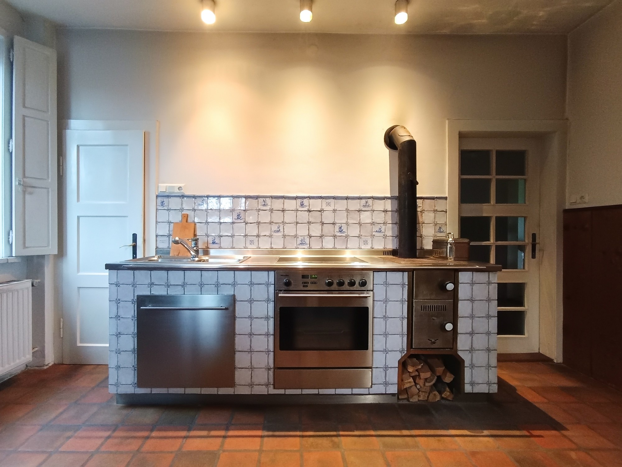 De vloeren zijn afhankelijk van de ruimte uitgevoerd in terracotta, keramische tegels, massief houten parket en larikshouten vloerdelen. Wanden en plafonds zijn gepleisterd en geschilderd met hoogwaardige ecologische muurverf. Een bijzonder element van de keuken is een kookblok van handgevormde en handbeschilderde tegels met geïntegreerd fornuis en oven.