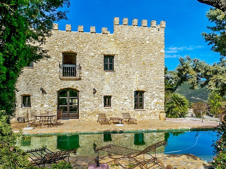Het perceel beslaat 40 hectare en omvat een tennisbaan, een buitenkeuken en een wijnkelder. Commercieel gebruik – bijvoorbeeld als evenementenlocatie – is nog niet goedgekeurd; de benodigde administratieve procedures liggen bij de koper.