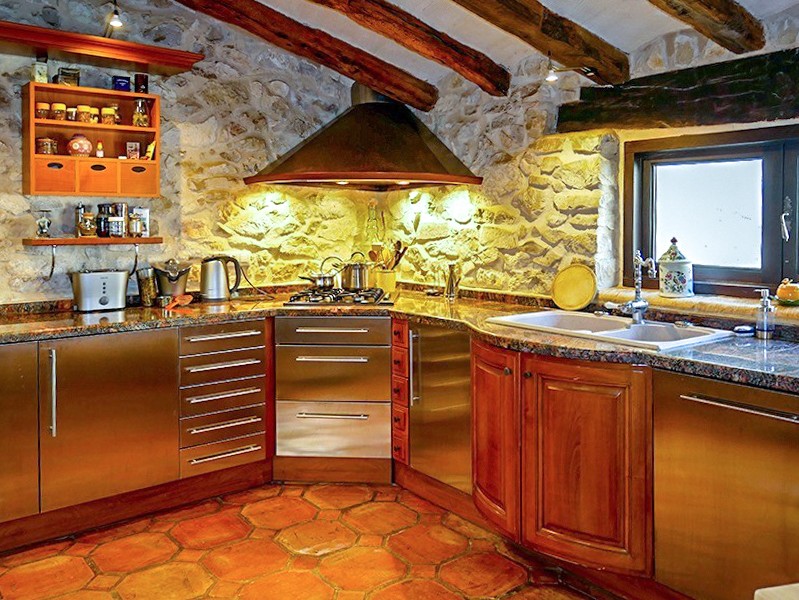 De renovatie omvatte het restaureren van originele eiken balken, handgemaakte vloeren en antieke houten deuren. De centrale verwarming is van Roca. Natuurstenen muren, hoge plafonds en open woonruimtes kenmerken het interieur.