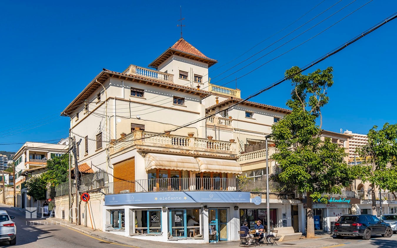 Deze ruime residentie in Mallorcaanse stijl is verdeeld over drie verdiepingen en biedt de mogelijkheid tot opsplitsing in drie zelfstandige wooneenheden. Het pand vereist een volledige renovatie. Twee commerciële units op straatniveau van circa 53 m² en 62 m² bieden inkomstenpotentieel. Beide units zijn momenteel verhuurd.
