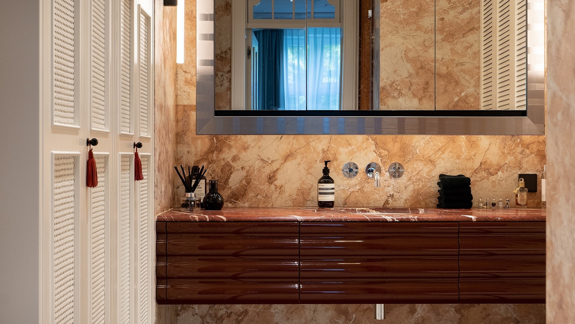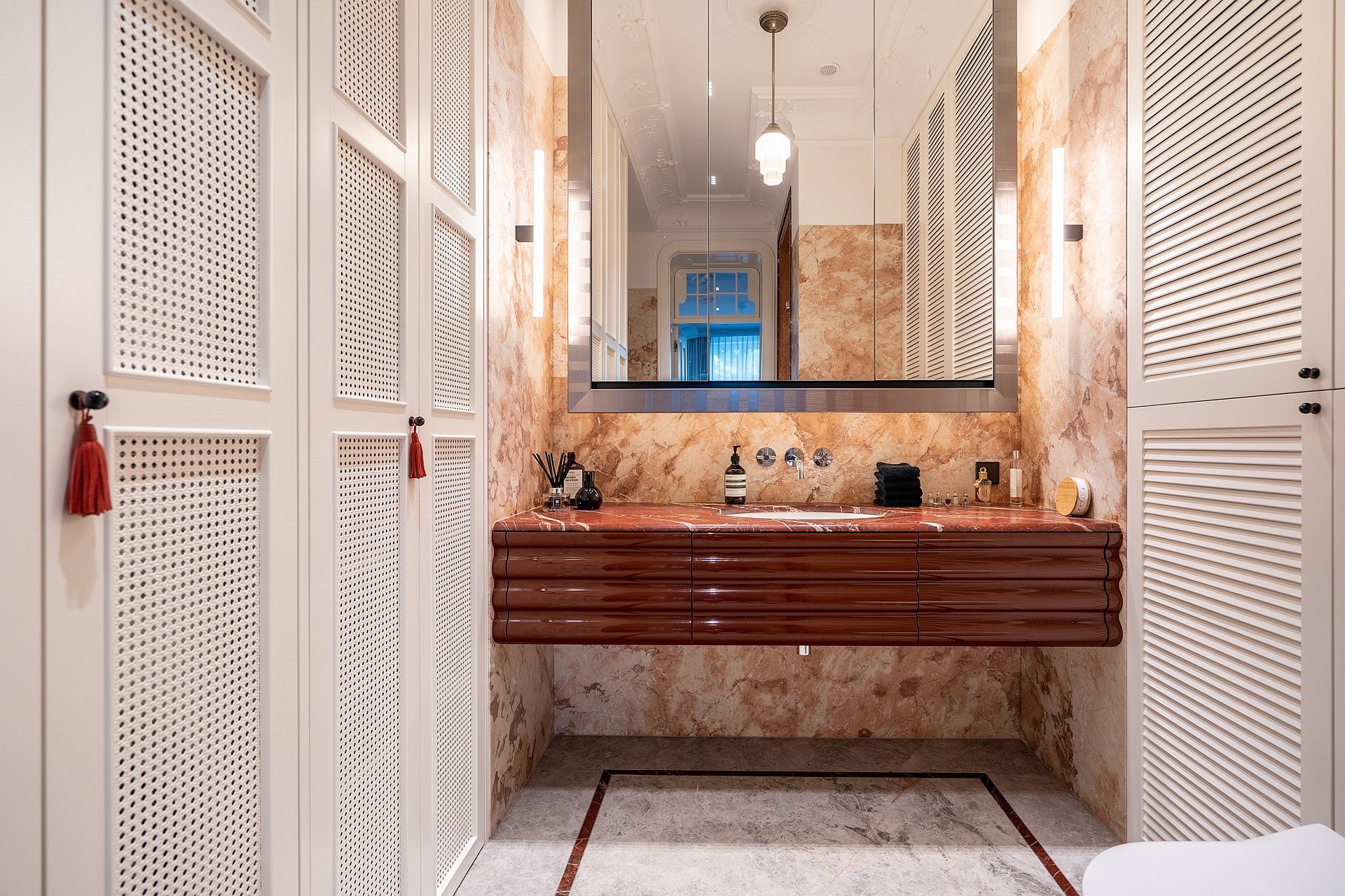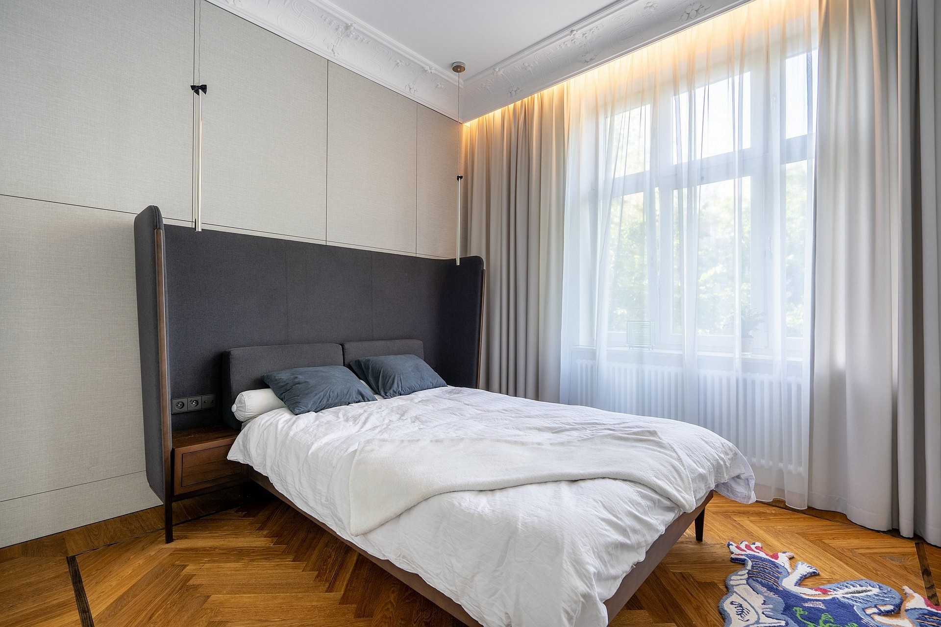 Karakteristiek appartement van 93 m² op de eerste verdieping van een gerenoveerd gebouw aan de ul. Księcia Józefa Poniatowskiego, een rustige straat die de ul. Parkowa verbindt met de boulevard en die aan het begin van de 20e eeuw aan beide zijden werd omringd door villa’s en pensions. De ligging combineert de rust van Sopot-Dolny met de nabijheid van de zee en het centrum van de badplaats.