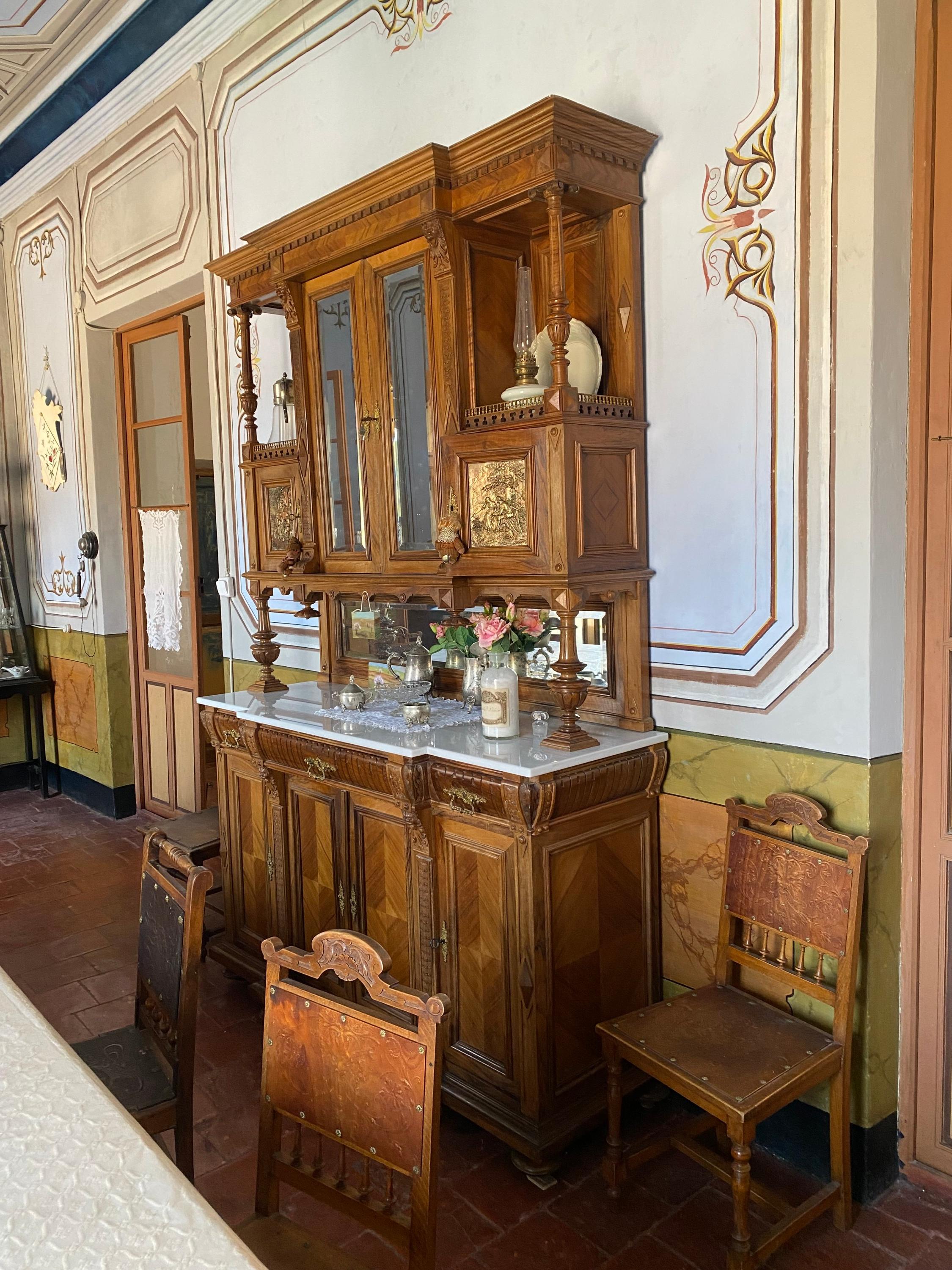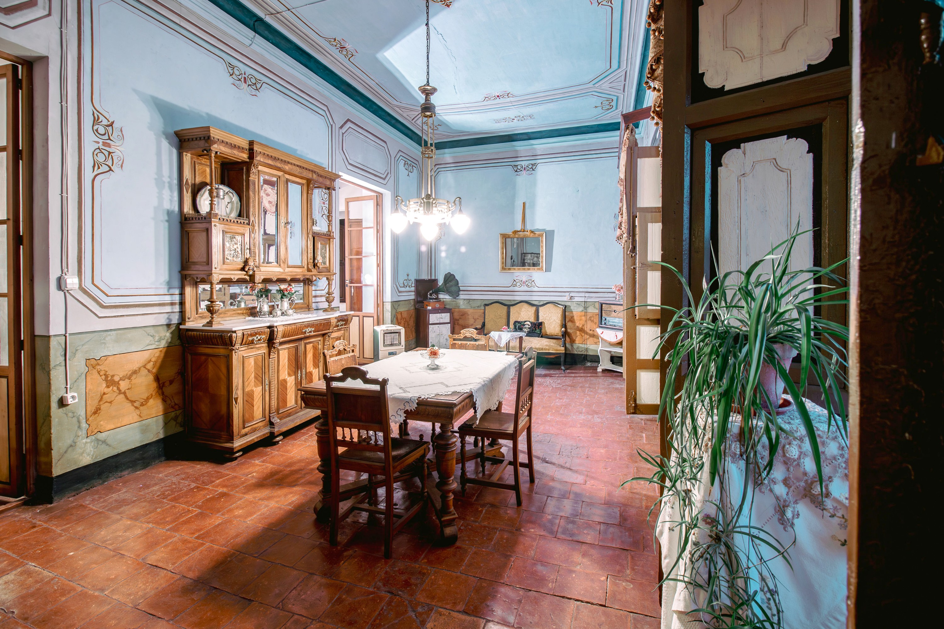 Op de hoofdverdieping bevinden zich historische vertrekken: zes slaapkamers, een keuken, twee badkamers en een ruime woonkamer. Verschillende kamers zijn voorzien van stucwerk en muurschilderingen uit de late 19e eeuw, recentelijk gerestaureerd door specialisten. Vanuit hier is er toegang tot een terras en een grote binnenplaats met een waterput, garage en bijgebouwen. De originele houten timmerwerken zijn in het hele huis bewaard gebleven.
